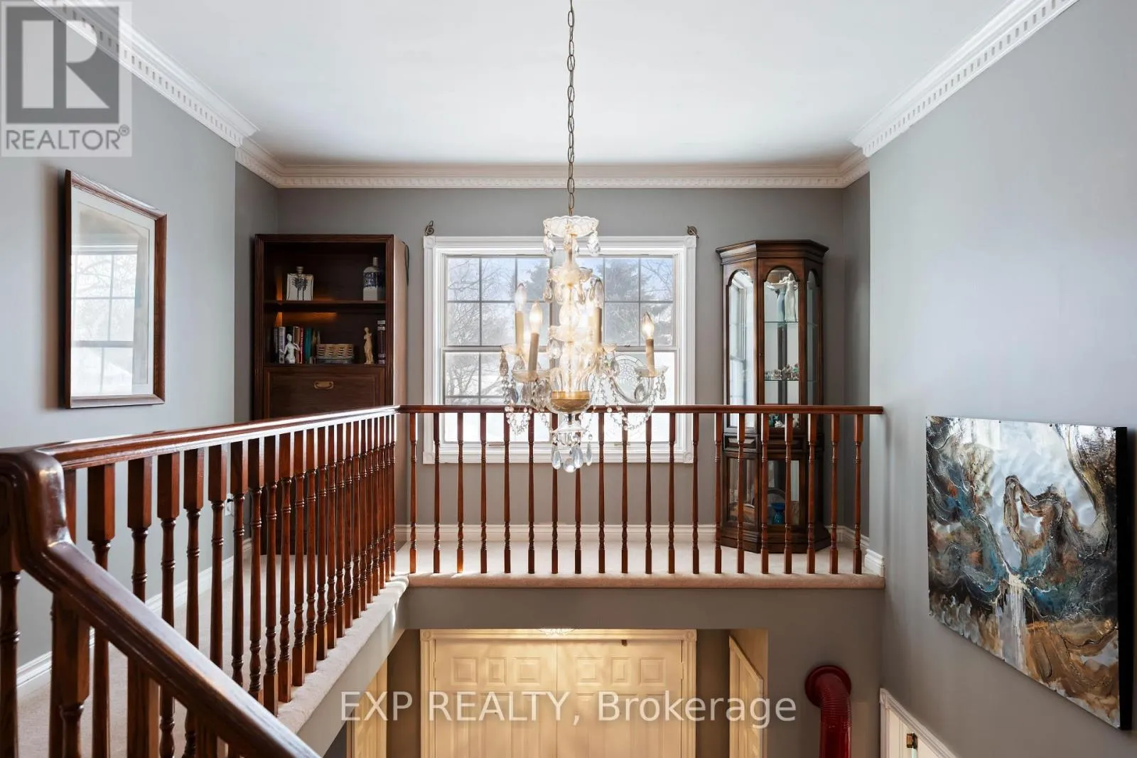 Cross Streets: College / Amelia. ** Directions: Amelia St to Jackson Ct. Welcome to 9 Jackson Crt - a beautifully maintained family home tucked away on a quiet, sought-after court in the heart of Orangeville. Offering over 2050 sq ft of living space plus a finished walk-out basement, this 3-bedroom, 4-bathroom home combines timeless elegance with everyday comfort. Step inside to a grand entryway with vaulted ceilings and abundant natural light, setting the tone for the warm and inviting layout. The main floor features a refined living room with crown moulding, pot lights, and a cozy fireplace, perfect for relaxing or entertaining. The bright eat-in kitchen is the heart of the home, boasting granite countertops, ample cabinetry with pull-out pantry, a peninsula with seating for three, and walkout to the raised deck - ideal for BBQs and morning coffee. An elegant dining room with French doors and crown moulding offers the perfect setting for formal dinners and family gatherings. Upstairs, the spacious primary bedroom includes a walk-in closet and private 3-piece ensuite. 2 additional well-sized bedrooms share a beautifully finished 3-piece bath with a jet tub. The finished walk-out lower level adds incredible versatility with a large rec room featuring a full brick feature wall, gas fireplace, wainscoting, and direct access to the backyard oasis. A 5-pc bathroom with outdoor access is perfect for pool days, along with a dedicated laundry rm and a finished cold room that can double as a home office or workout space. Outside, enjoy exceptional curb appeal with stately pillars and classic brickwork, plus a private, landscaped backyard complete with a stunning inground pool surrounded by mature trees. The location is unbeatable-steps to Princess Elizabeth Public School and Orangeville District Secondary School, walking distance to downtown, parks, the arena, and Murray's Mountain. With parking for 6, a generous lot, and a family-friendly neighbourhood where kids can walk to school and friends, this is the perfect place to call home. (id:27476)