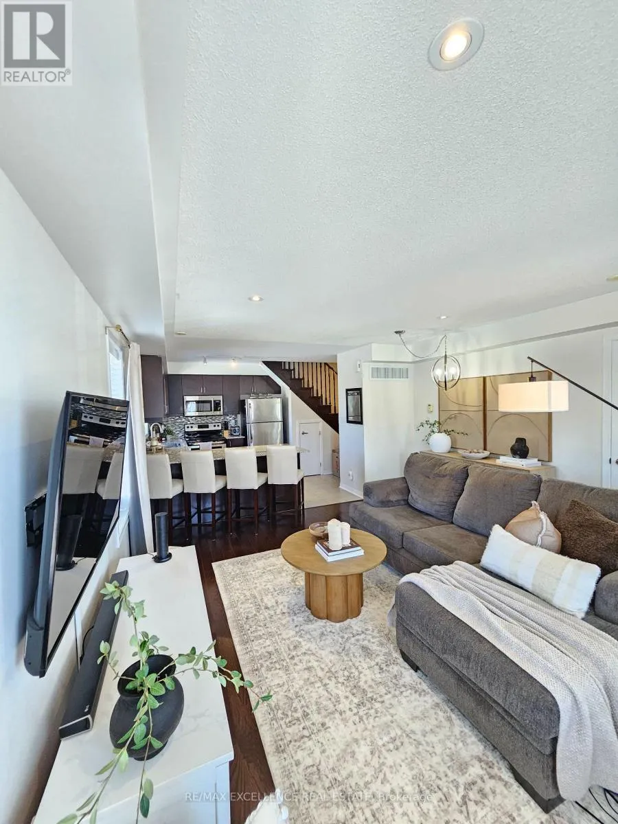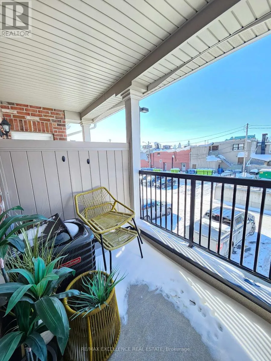 Mill St To Armstrong Street Welcome to stylish and convenient downtown living in one of Orangeville's most sought-after locations. This beautifully maintained 2-storey stacked townhouse offers the perfect blend of comfort and convenience. Dining, shopping, entertainment, and scenic walking trails are all just steps from your front door. Enjoy access to a private common area featuring charming Muskoka chairs - the perfect place to unwind and relax.The sun-drenched main floor showcases a bright, open-concept layout designed for modern living and entertaining. Large windows fill the space with natural light, while the covered balcony provides an ideal spot for morning coffee or evening relaxation.Upstairs, you'll find a spacious primary bedroom, a well-appointed second bedroom, a 4-piece bathroom, and the added convenience of second-floor laundry. An exceptional opportunity to live in vibrant downtown Orangeville. (id:27476)