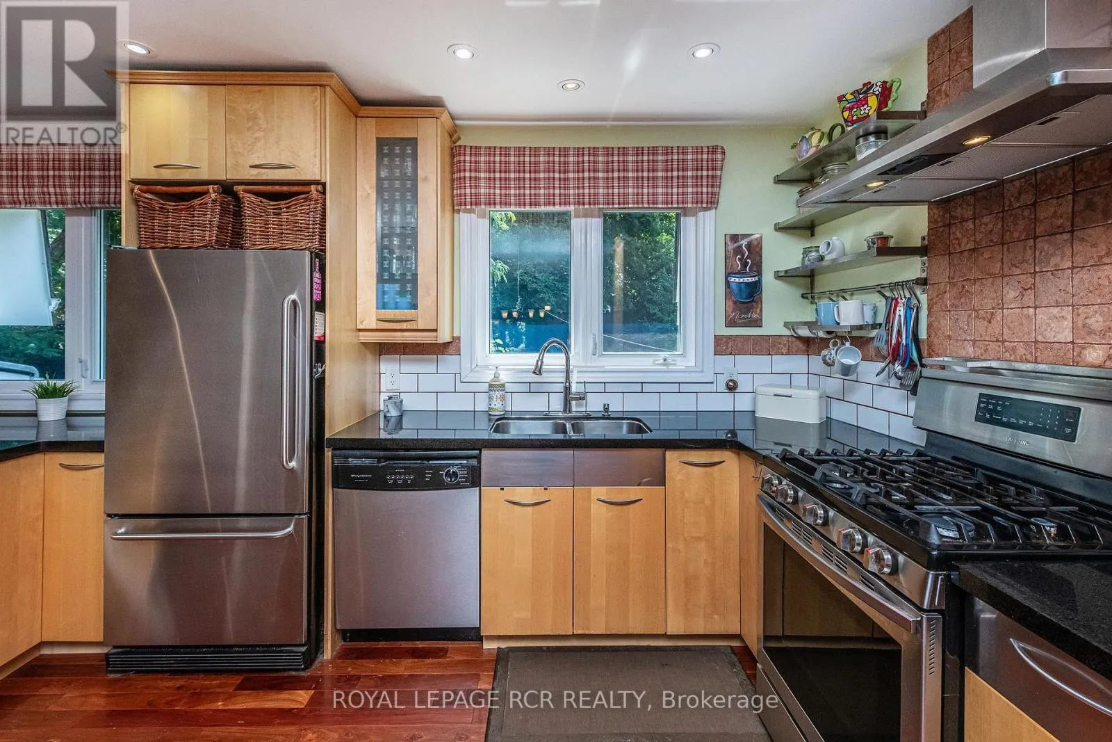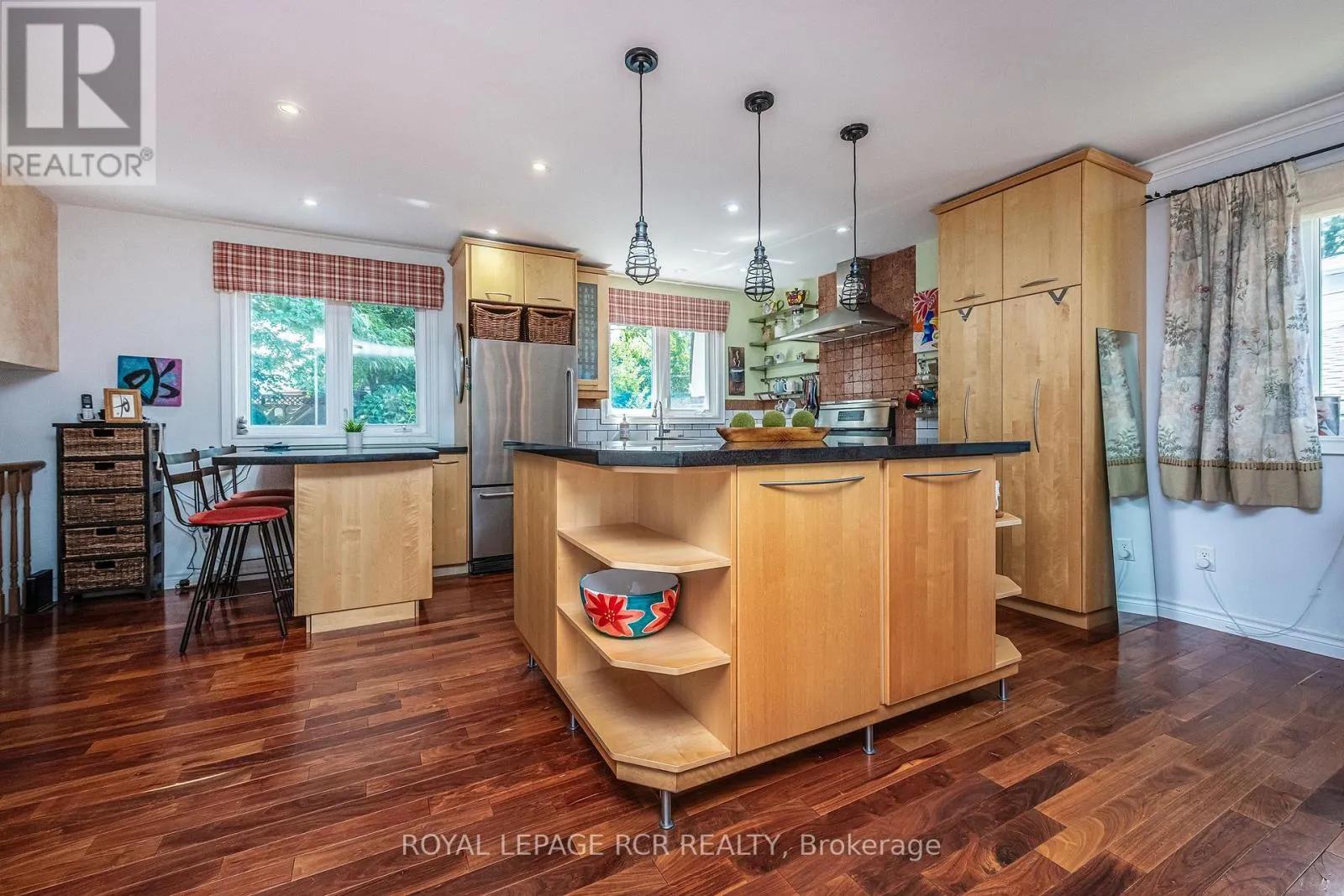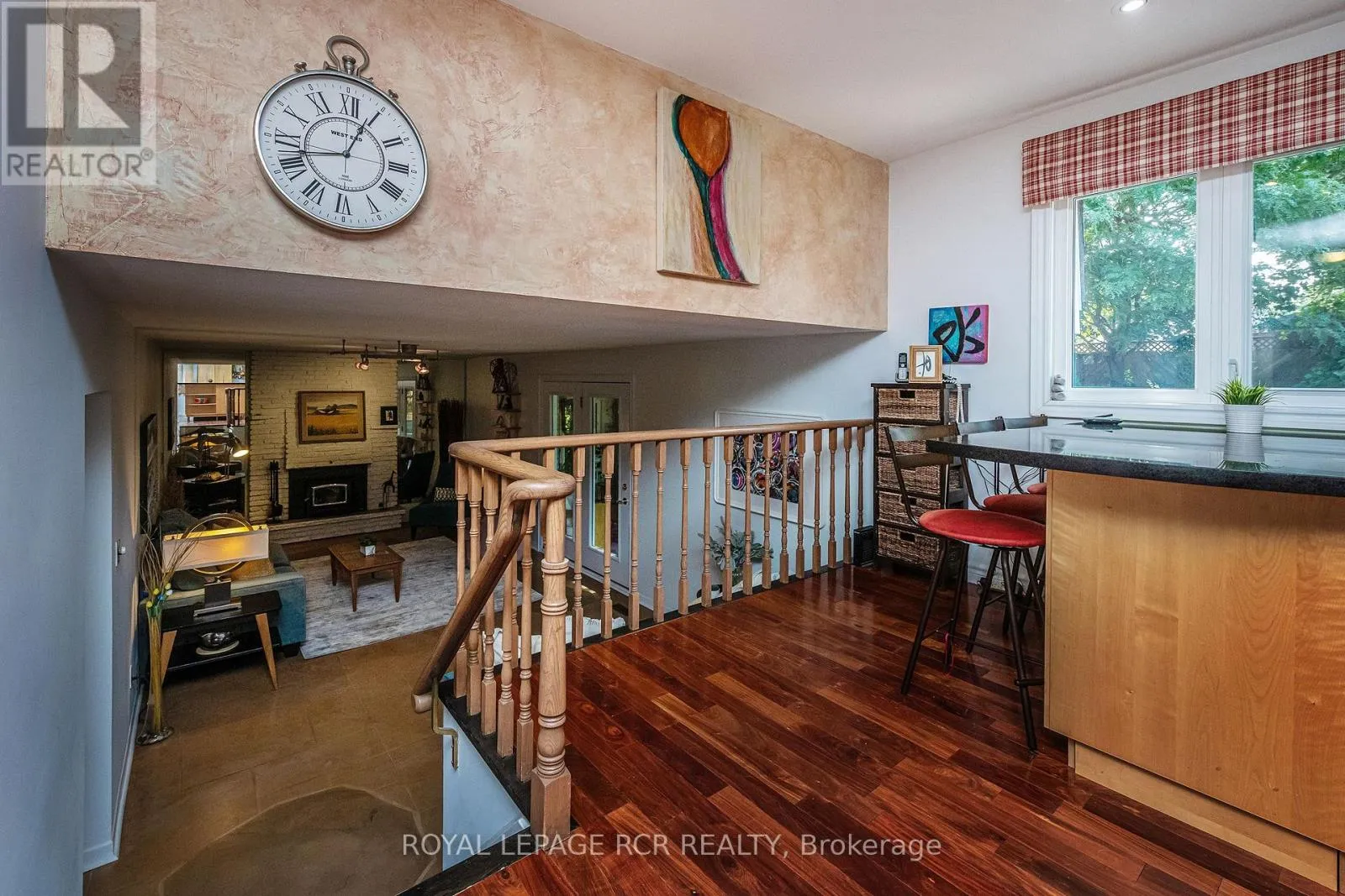Cross Streets: Westmorland Ave/Birch St. ** Directions: North on Blind line, East on Greenlaw, South on Westmorland Ave. This Spacious 3+1 bedroom, 3 bathroom sidesplit offers a functional layout for comfortable and convenient family living, located on a beautiful tree-lined street just minutes from downtown. A roomy front foyer provides a warm, welcoming entry. The main level boasts an open-concept living space with an updated kitchen boasting a breakfast bar, large centre island with ample storage, pantry, counter and cupboard space, is combined with the dining area creating a warm and inviting atmosphere for family dinners and entertaining. An oversized living area with bow window and mahogany hardwood flooring complete the main level. The kitchen's eat-in area overlooks this family room, creating an open yet defined multi-level living space. Just a few steps down, the cozy family room offers a fireplace (not in use-as is) with a garden door walkout to the 3 season sunroom. The sunroom provides additional living area for reading or relaxing, and has a walkout to the private, fenced rear yard. On the upper level, the oversized primary bedroom features broadloom flooring, double closets, large windows, and a 3-piece ensuite complete with extra cabinetry, pedestal sink and a walk-in rain shower. The second and third bedrooms also offer broadloom, closets, and bright windows. 4 pc main bath with heated flooring! The lower level includes a spacious recreation room with laminate flooring, along with a separate finished area suitable for a fourth bedroom, home office, or guest suite. The 3rd bathroom is a convenient 2-piece powder room on the entry level, and is tucked away with the laundry room and walkout to the attached garage. This home is complete with an attached two-car garage, private driveway with plenty of parking, and a large backyard with plenty of mature greenery & professional stonework is perfect for relaxing or entertaining outdoors. Approx. 2250 sq ft of finished living space !! Shingles replaced in '24. (id:27476)