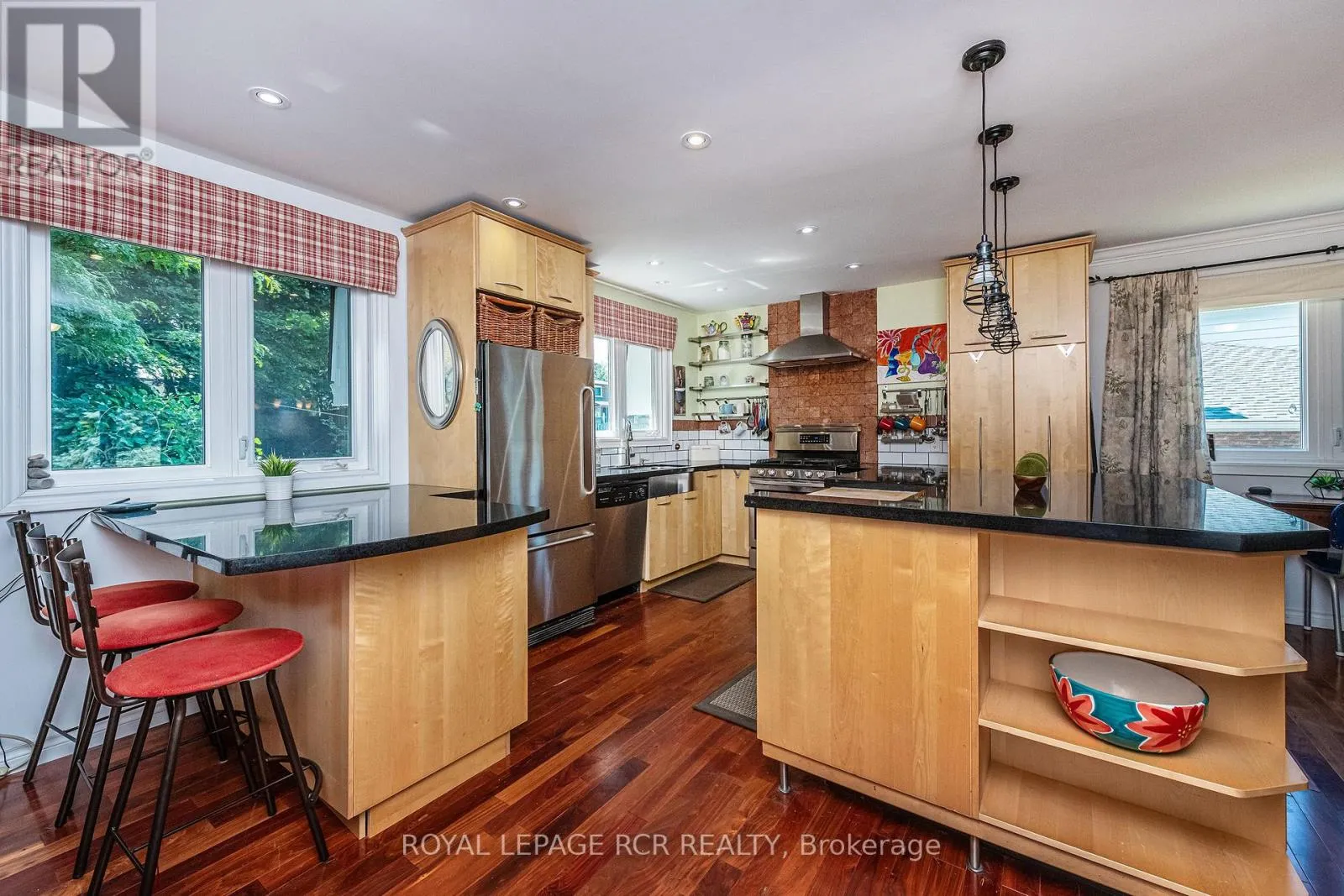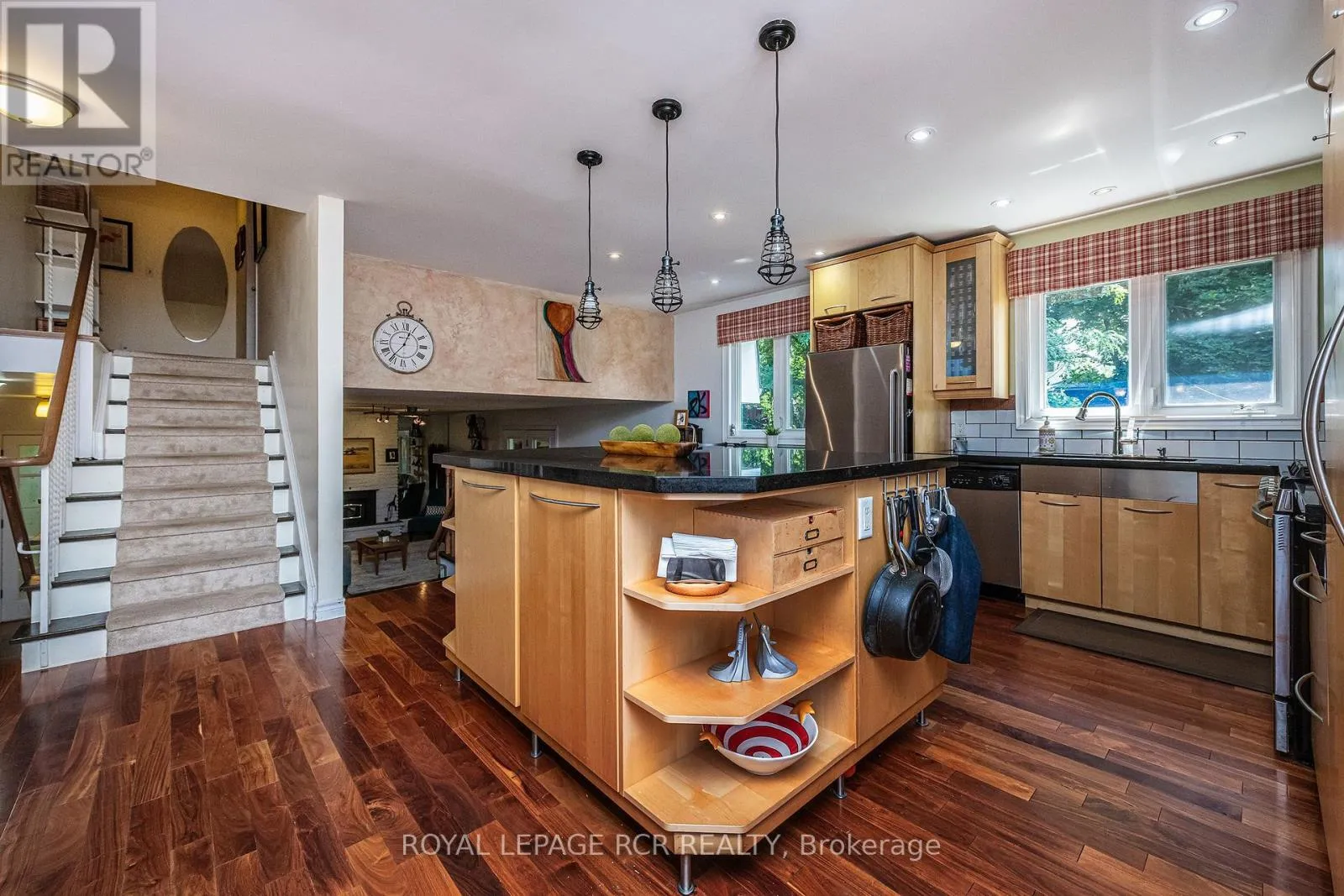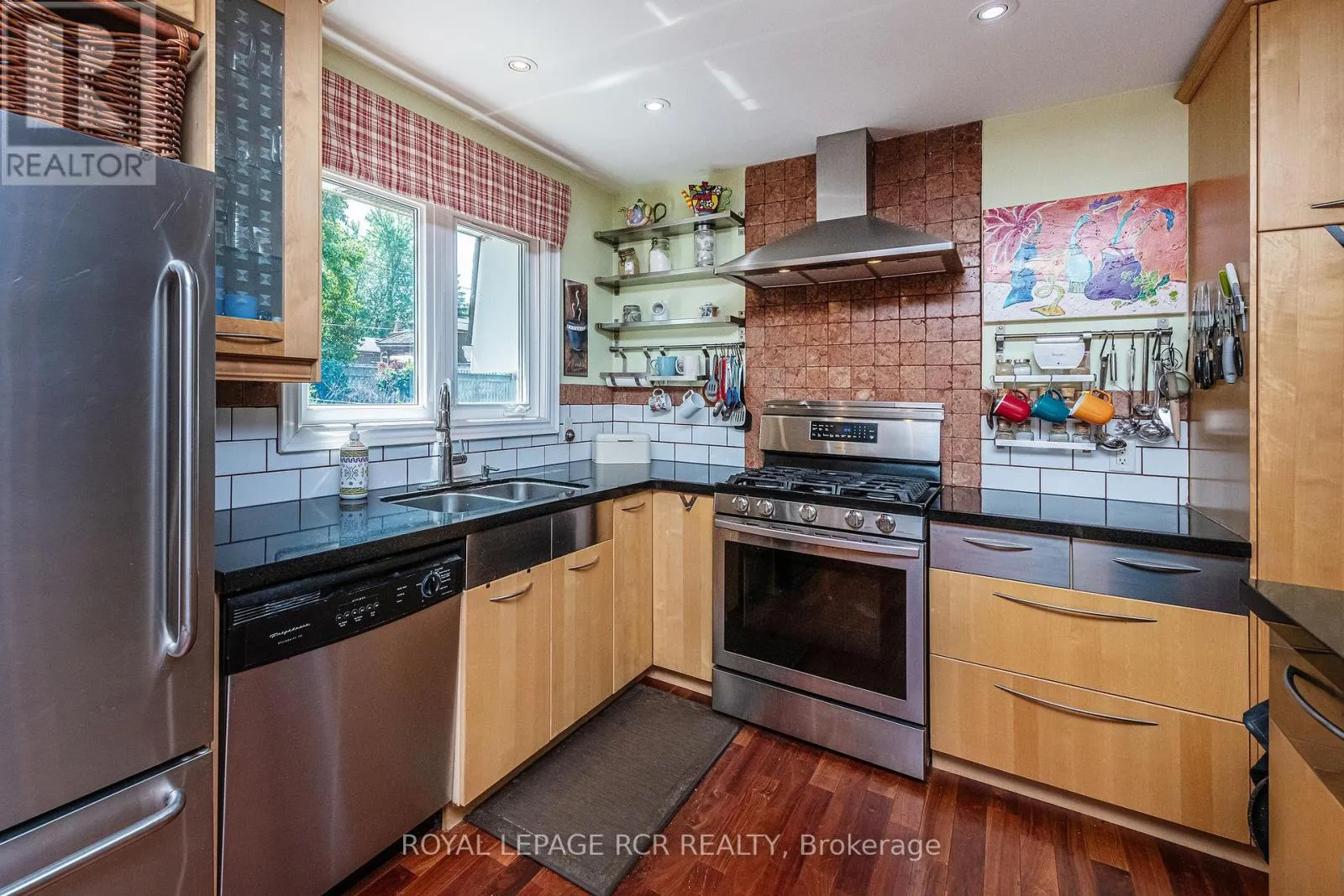 Cross Streets: Westmorland Ave/Birch St. ** Directions: North on Blind line, East on Greenlaw, South on Westmorland Ave. This Spacious 3+1 bedroom, 3 bathroom sidesplit offers a functional layout for comfortable and convenient family living, located on a beautiful tree-lined street just minutes from downtown. A roomy front foyer provides a warm, welcoming entry. The main level boasts an open-concept living space with an updated kitchen boasting a breakfast bar, large centre island with ample storage, pantry, counter and cupboard space, is combined with the dining area creating a warm and inviting atmosphere for family dinners and entertaining. An oversized living area with bow window and mahogany hardwood flooring complete the main level. The kitchen's eat-in area overlooks this family room, creating an open yet defined multi-level living space. Just a few steps down, the cozy family room offers a fireplace (not in use-as is) with a garden door walkout to the 3 season sunroom. The sunroom provides additional living area for reading or relaxing, and has a walkout to the private, fenced rear yard. On the upper level, the oversized primary bedroom features broadloom flooring, double closets, large windows, and a 3-piece ensuite complete with extra cabinetry, pedestal sink and a walk-in rain shower. The second and third bedrooms also offer broadloom, closets, and bright windows. 4 pc main bath with heated flooring! The lower level includes a spacious recreation room with laminate flooring, along with a separate finished area suitable for a fourth bedroom, home office, or guest suite. The 3rd bathroom is a convenient 2-piece powder room on the entry level, and is tucked away with the laundry room and walkout to the attached garage. This home is complete with an attached two-car garage, private driveway with plenty of parking, and a large backyard with plenty of mature greenery & professional stonework is perfect for relaxing or entertaining outdoors. Approx. 2250 sq ft of finished living space !! Shingles replaced in '24. (id:27476)