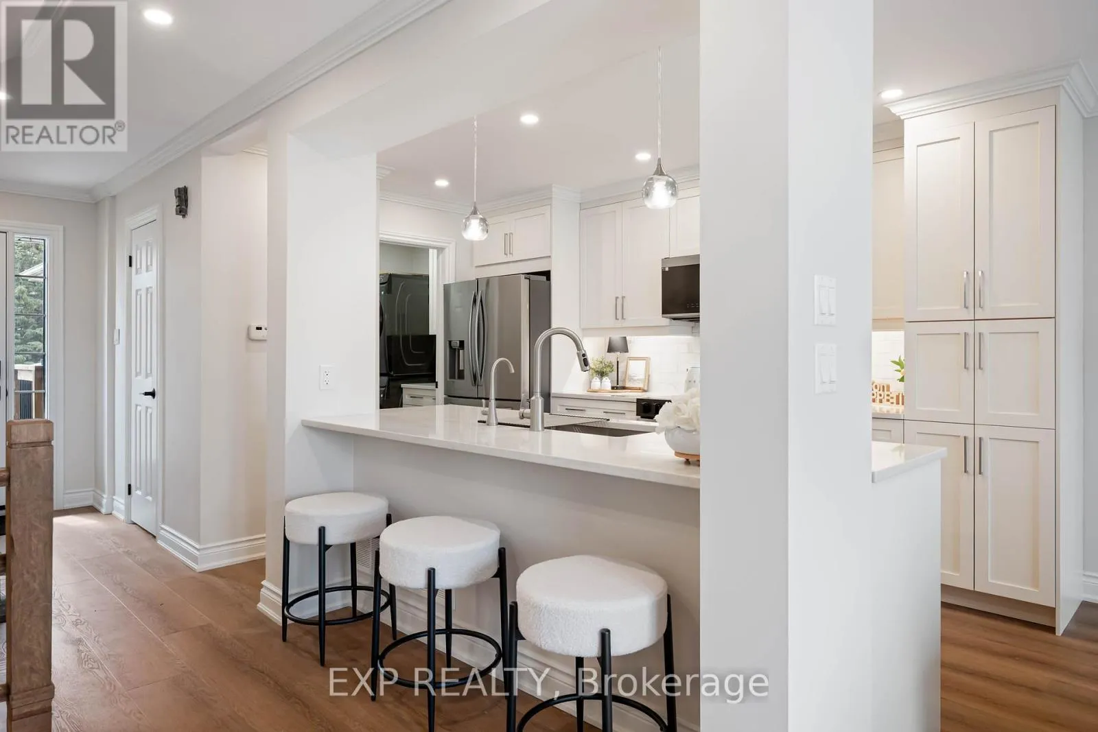 Cross Streets: Rebecca Dr / Lisa Marie Dr. ** Directions: Lisa Marie Dr to Rebecca Dr. Beautifully renovated, move-in ready home nestled in a family-friendly Orangeville neighbourhood. Offering 3 bedrooms, 2 bathrooms, and approximately 1,350 sq ft of thoughtfully updated living space, this home blends modern style with everyday functionality. Over the past two years, the entire home has been professionally upgraded from top to bottom. Step inside to find warm oak vinyl flooring throughout, updated trim, pot lights, crown moulding, and a clean, modern finish with skimmed ceilings and new railings. The stunning front-facing kitchen makes an immediate impression, featuring quartz countertops, a large island with seating, stainless steel appliances, soft-close cabinetry, and sleek designer finishes. The open-concept layout seamlessly connects the kitchen, dining, and living areas-perfect for entertaining or family life. Walk out from the living room to a raised deck, ideal for summer BBQs and relaxing outdoors. A convenient main floor laundry/mudroom with built-in storage and garage access adds everyday practicality. Upstairs, the spacious primary bedroom offers a walk-in closet and cheater access to a beautifully updated 3-piece bathroom with a large dual-head shower. Two additional bedrooms provide flexibility for family, guests, or a home office. The walk-out basement is full of potential, offering the opportunity to create additional living space, a rec room, or even an in-law setup. Outside, enjoy a fully fenced backyard with mature trees, a new shed, and plenty of space to unwind. The interlock driveway and 1-car garage (with EV charger potential) add curb appeal and convenience. Located within walking distance to schools and close to parks, trails, and commuter routes, this home checks all the boxes for families and professionals alike. ** This is a linked property.** (id:27476)
