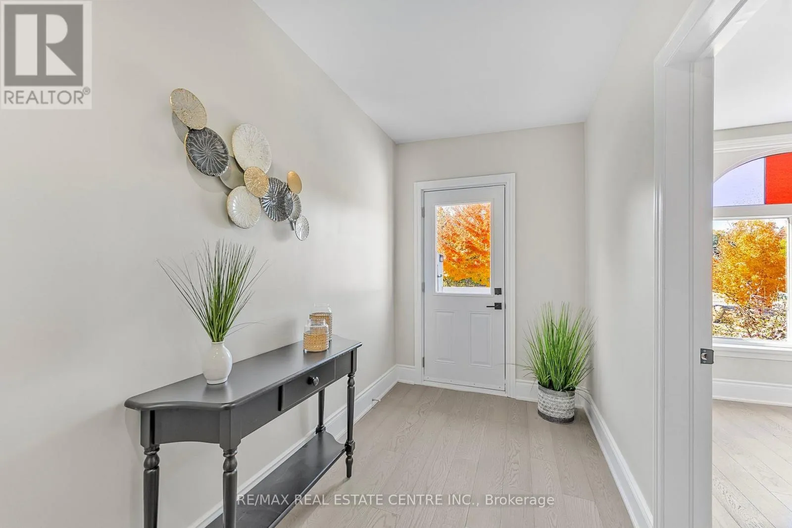 Cross Streets: First Street & Second Avenue. ** Directions: From Broadway, North on First Street. Welcome to 17 First Street, a charming Queen Anne-style two-storey semi-detached century home in the heart of Orangeville. This tastefully modernized residence beautifully blends historical elegance with contemporary comforts. Step inside to discover a main floor adorned with pot lights and a bright, inviting atmosphere. The main floor and second-storey windows have been replaced but retain the original stained glass arch transoms, filling the home with natural light and showcasing its heritage. The gourmet kitchen boasts quartz countertops and stainless-steel appliances, offering modern convenience while complementing the home's classic charm. Convenience is key with a full bathroom and a laundry room located on the main floor, adding to the home's functionality. Upstairs, you'll find three generous bedrooms and an additional bathroom, providing ample space for family living. The large unfinished attic presents a fantastic opportunity to expand your living space imagine a cozy loft, home office, or studio tailored to your needs. Outdoor living is equally impressive with a large private deck in the backyard, ideal for entertaining or enjoying quiet evenings. Parking is convenient with space for two cars. The property's C5 zoning provides the flexibility to use the space for much more than just a residence, opening doors to various possibilities. Location is everything, and this home delivers. You're less than a five-minute walk to the vibrant shops and restaurants on Broadway, allowing you to fully embrace the downtown lifestyle. Don't miss this amazing opportunity to own a piece of Orangeville's history while enjoying all the modern amenities you desire. **EXTRAS** This C5-zoned property offers a range of business opportunities, with the added option to convert the attic into extra living space. Imagine the potential for your business and lifestyle here it's a canvas ready for your vision! Seller will offer financing to qualified buyers. (id:27476)