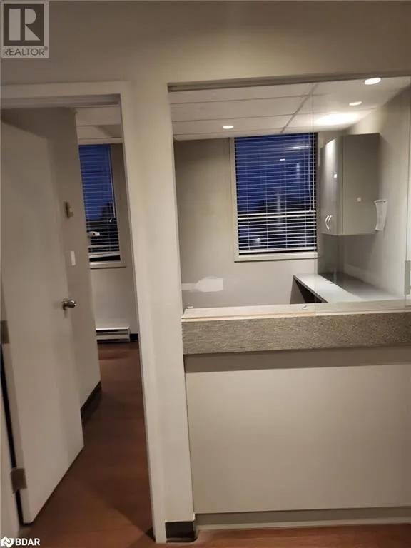 Highway 11 to Mississaga St W exit. Mississaga St W to Dunlop St, right on Dunlop St, subject property will be on the left side 604SF of office space near the hospital. This unit, located on the 4th floor amongst medical practitioners, features 3 private offices, a kitchenette, washroom, and large reception area, with an additional common area washroom down the hall. The facility is fully accessible, offering a hydraulic elevator, secure key fob access and 76 paid parking spots on site (2.8 spots per 1,000SF). A strategic opportunity combining location, functionality, and security to meet the high standards of professionals. Additional space available on the 3rd floor, adding further square footage ranging from 2,029SF â 6,834SF. (id:27476)