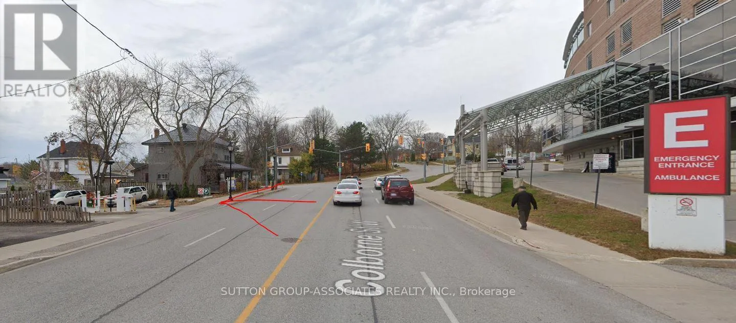 Cross Streets: DUNEDIN AT COLBOURNE ENTRANCE ON COLBOURNE. ** Directions: Please use Google Maps or Waze. Prime Investment Opportunity **Parking Lot & Rental Property in Orillia.** Don't miss this rare opportunity to own a **high-traffic parking lot** in Orillia, located directly across from the emergency entrances of Soldiers Memorial Hospital. Featuring **13 parking spaces** with continuous demand, this property generates excellent income and is equipped with a **modern remote-controlled entry, on-site camera and exit gate system** for easy operation. Also included is a **1,100 sq. ft. rental home**, currently leased with tenants covering utilities, featuring a **new furnace and re-shingled roof**. Sold as-is, the property offers excellent redevelopment potential, including **removing the existing home for new-build opportunities or potential lot severance**. With **HC2 zoning**, the site permits **a wide range of uses**, such as senior housing and residential developments. As Orillia's waterfront continues to transform with new condos, this location presents an outstanding investment opportunity. L Shape Lot: Parking Lot 46 ft x 152 ft depth, House 75 ft x 68 ft depth. (id:27476)