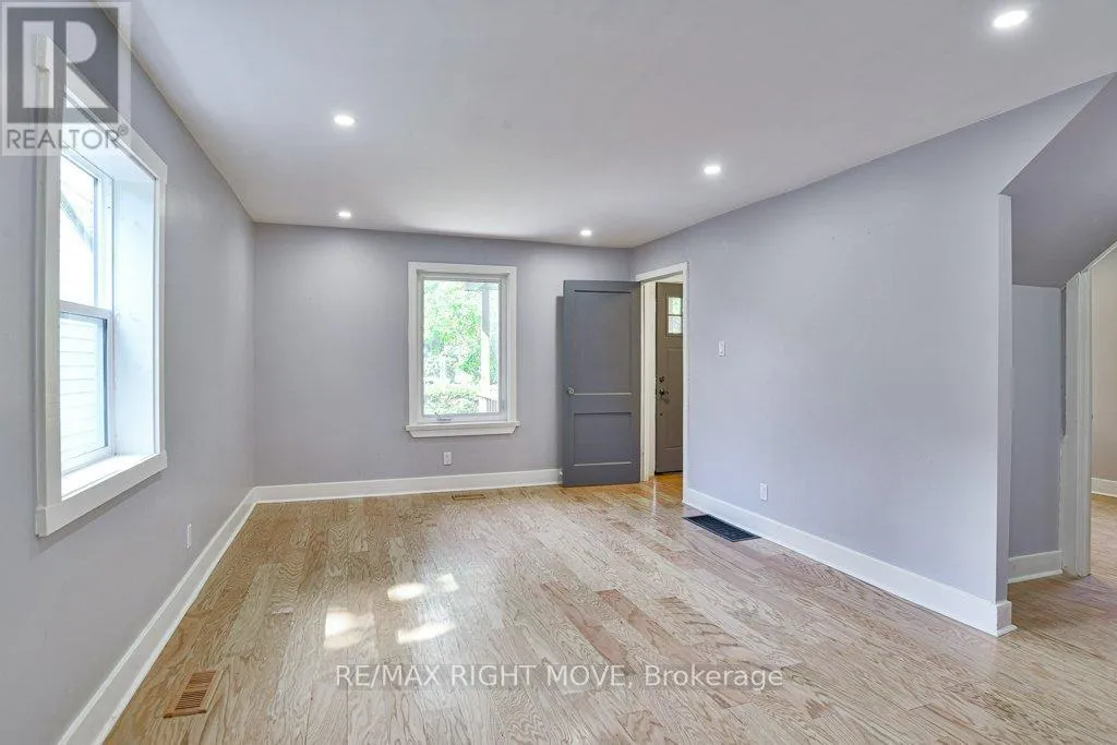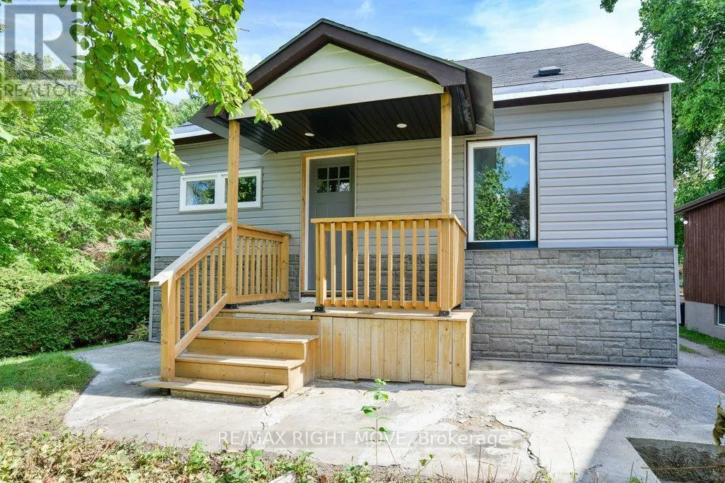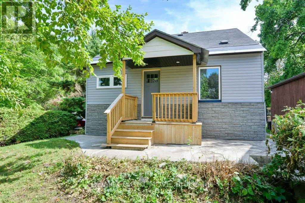 Cross Streets: Mary and McKenzie. ** Directions: Westmount Drive south to Mary Street, turn east on Mary to property on RHS at the corner of Mary & McKenxie. This recently updated one-and-a-half storey home is located on a corner lot, minutes west of the hospital in Orillia. Cedar hedges border two sides of the lot and give privacy for the covered front porch and concrete patio at the back. The main level includes an open concept living room/eat-in kitchen with stainless steel range, refrigerator and built-in microwave/range hood included; 2 bedrooms; main floor laundry facilities and a new 4pc. bathroom. A centre hall staircase leads to the upper level with 2 more bedrooms. Flooring includes engineered hardwood on the main level, original hardwood in the upper level bedrooms, ceramic tile in the bathrooms and kitchen, plus vinyl laminate in the basement. The partially finished basement has potential as an in-law apartment. It is accessed through a rear door off the kitchen and has a separate 100 amp hydro service. With a ceiling height of 6 ft. 6 in., the basement area includes an L-shaped family room; 5th bedroom; laundry facilities for a stacking washer & dryer; sitting area; a new 4pc. bathroom and a utility/storage room. Behind the house is an older wood-sided 17 ft. x 25 ft. storage building with partial carport. The paved driveway, with room for 3 cars, is accessed off the side street. Most windows have been replaced; new on-demand hot water tank in 2024; new gas furnace in 2024; LED lighting throughout. Easy to show and move-in ready! (id:27476)