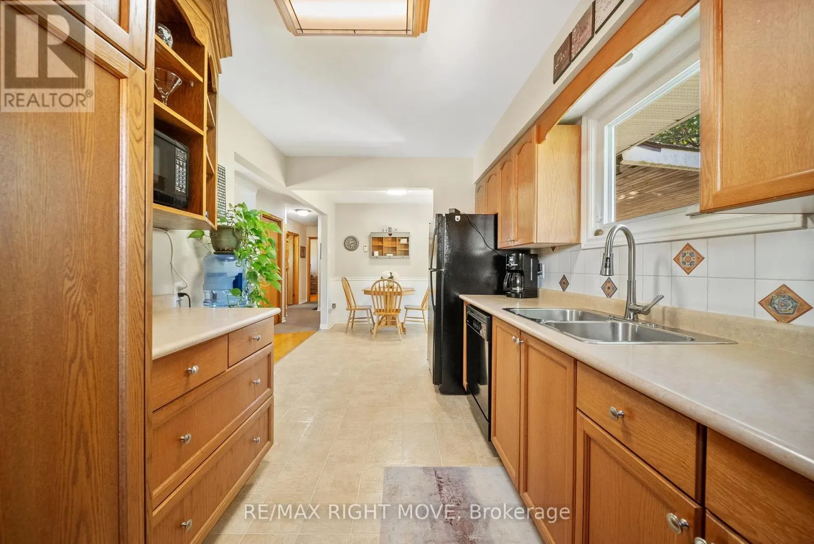 Cross Streets: Mississauga & Quinn. ** Directions: Mississauga St W to Quinn. Welcome to a spotless raised bungalow on a generous 60 by 140 lot with mature trees. A charming front porch invites you in and a single car garage with inside entry adds everyday convenience. The main floor offers beautiful hardwood, a bright living room, a well planned kitchen, three comfortable bedrooms, and a full bathroom. The lower level delivers a spacious family room, a second 2 piece bathroom, laundry, and a mudroom style hallway with excellent storage. Step outside to a fenced backyard designed for easy entertaining with room to dine, play, and unwind. Set in an established area close to major amenities, parks, and schools. Move in and enjoy a smart layout, great bones, and an impressive lot that will reward you for years to come. (id:27476)