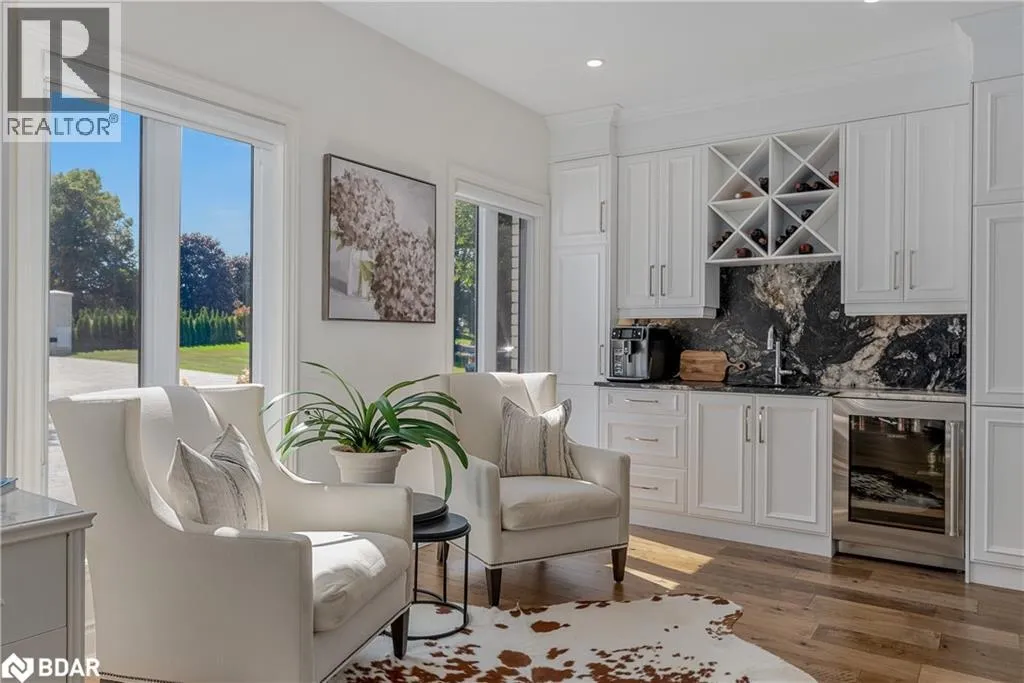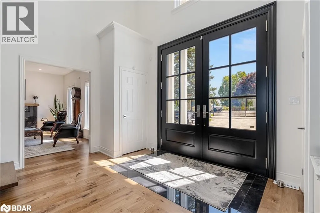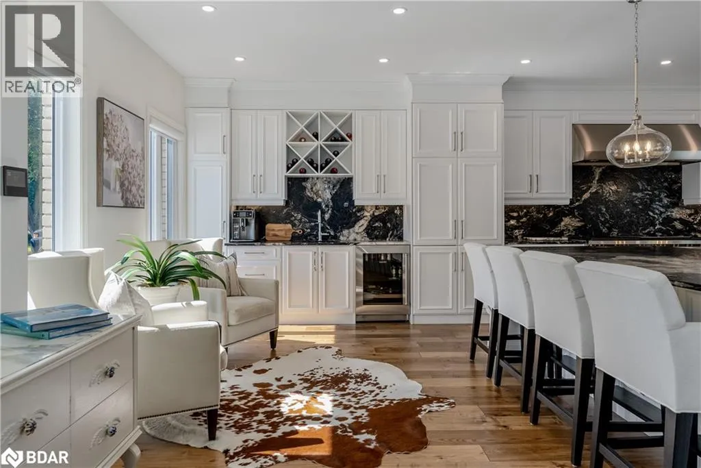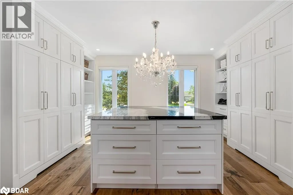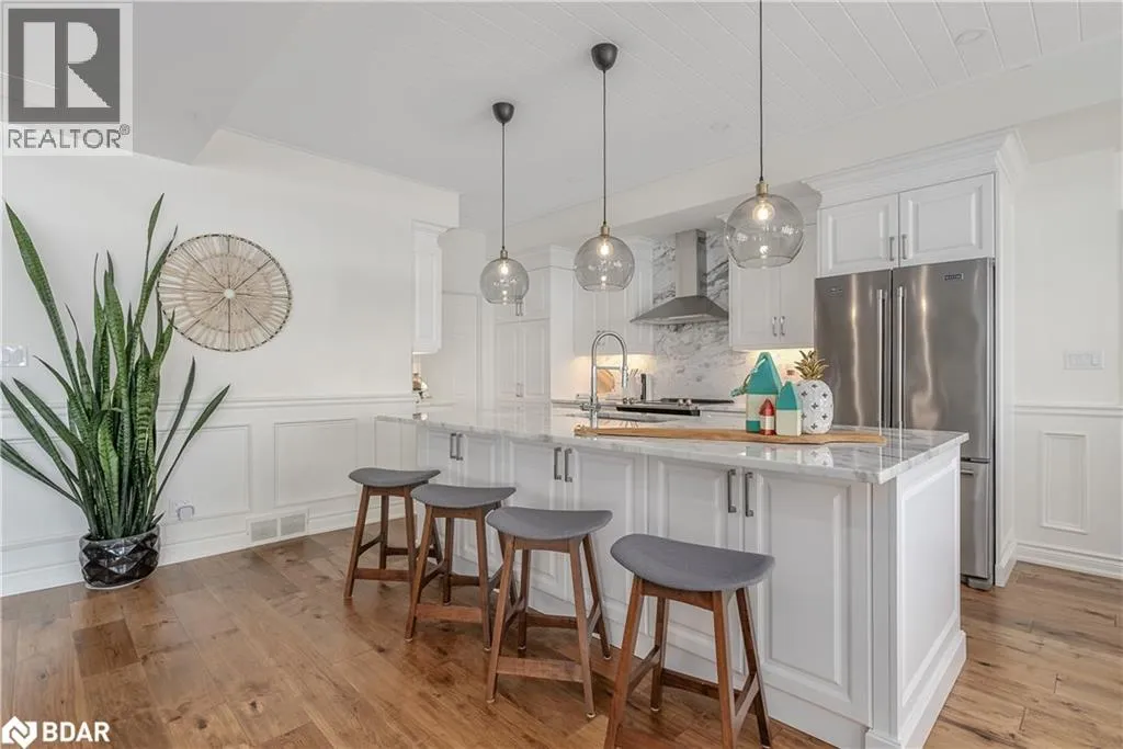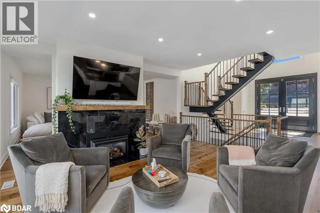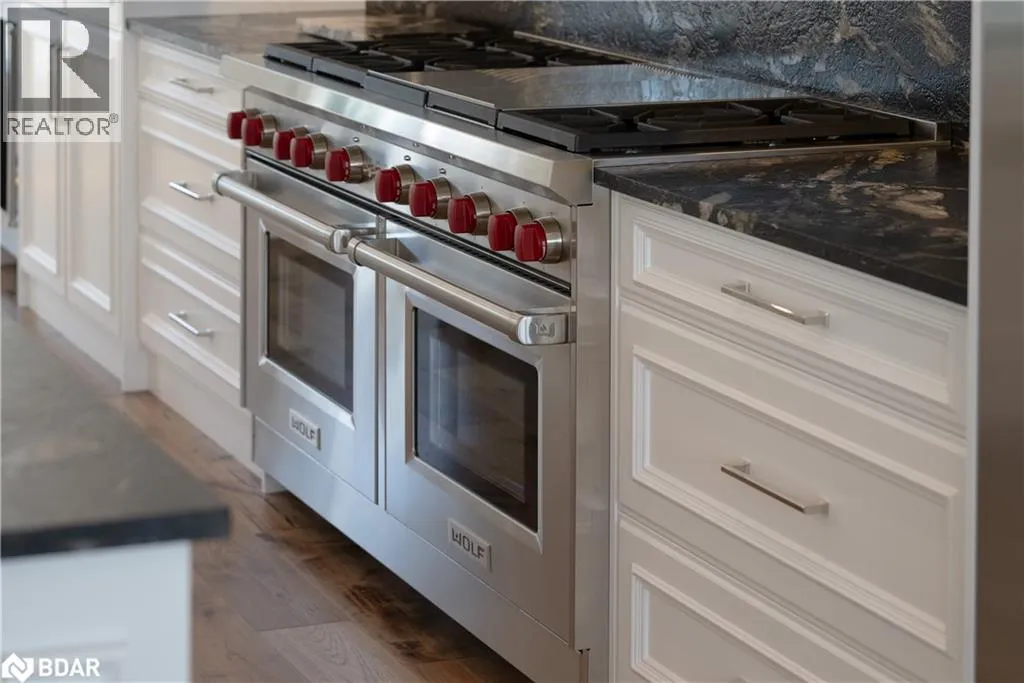 Forest Ave N to Brewery Ln Welcome to 376 Brewery Lane, a stunning luxury waterfront home situated on one of Orilliaâs finest streets. This exceptional property offers 104 feet of prime Lake Couchiching frontage on a beautifully landscaped half-acre lot with western exposureâperfect for soaking in spectacular sunsets and views of downtown Orillia. Completely renovated from top to bottom, this home offers nearly 5400 square feet of high-end living space, featuring 5 bedrooms and 4.5 bathrooms. The gourmet kitchen is a showstopper with two impressive 10-foot islands, granite countertops, and premium appliances from WOLF, SUBZERO, and Thermador. The open-concept main floor boasts large windows that frame lake views, a cozy gas fireplace in the living room, and a walkout to an expansive deckâideal for both relaxation and entertaining. The upper level features 3 spacious bedrooms, each with its own ensuite, and a laundry room for added convenience. The primary suite is a true retreat with vaulted ceilings, a grand walk-in closet complete with built-ins and an island, and a spa-like ensuite featuring a walk-in shower, soaking tub, heated floors, and double vanity. The finished walkout basement offers 9-foot ceilings, a second full kitchen, separate laundry, and a private entrance, making it perfect for extended family or guests. Outside, the property truly shines with a heated saltwater pool surrounded by interlock patios, multiple seating areas, and a large dock complete with sea doo lifts. The private stone path leads to a hard-packed lakefront, perfect for enjoying summer days by the water. Double gated entries and a heated interlock driveway provide both privacy and convenience. This rare waterfront gem is located at the end of a quiet court, offering tranquility and luxury living. (id:27476)
