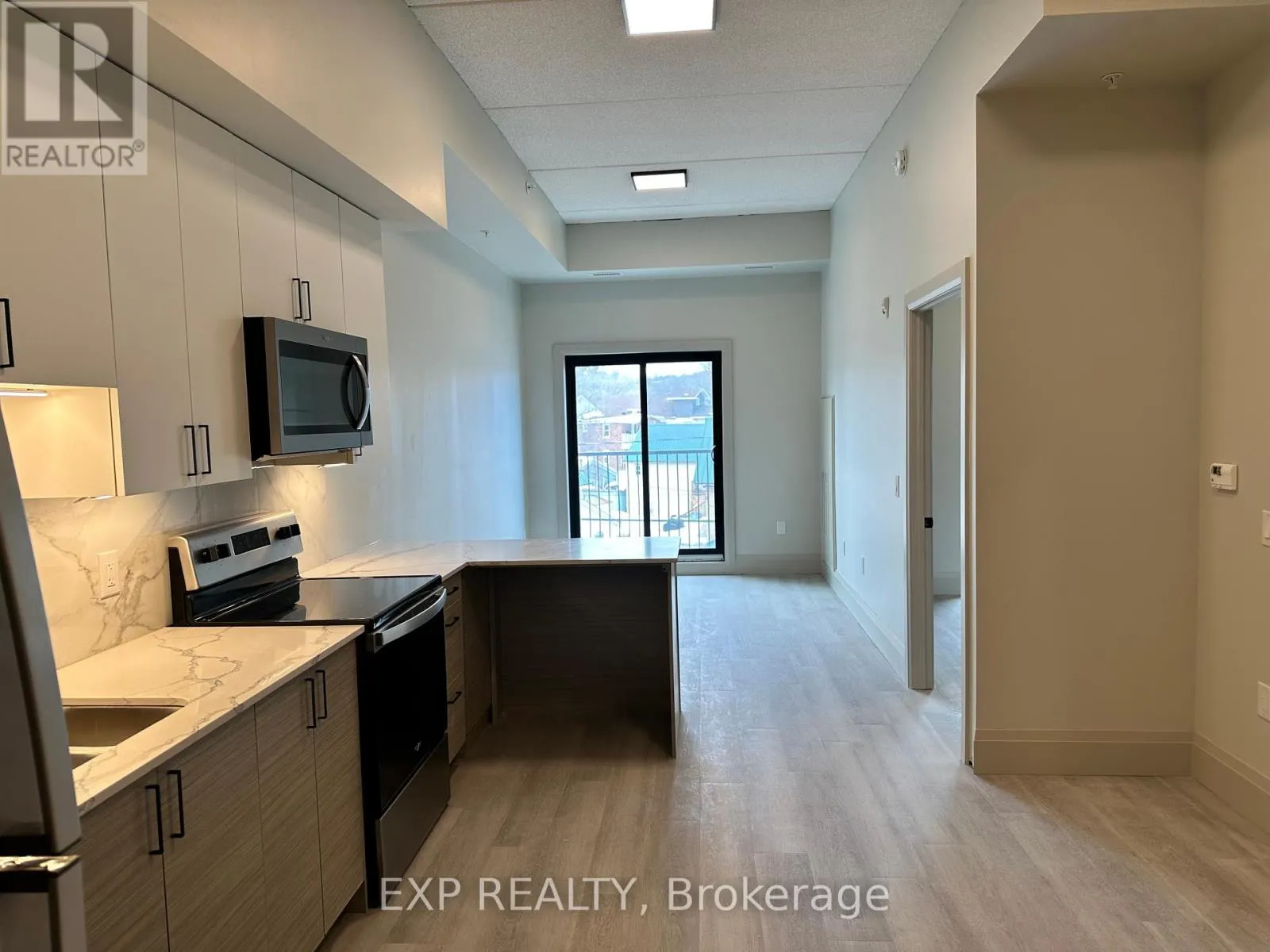 Cross Streets: Andrews St S/Barrie Rd. ** Directions: Andrew Street South to Barrie Road. Barrier free unit available! Welcome to 75 Barrie Road, a newer residential building, in a prime location just minutes away from downtown, the Rec Centre, and many other amenities. This bright and open one-bedroom unit boasts modern design and features, including a Den - 9'9" x 6'3", stainless steel Whirlpool appliances, and an accessible bathroom with grab bars and a walk-in shower. This unit is near the elevator for access to on site laundry services 24/7, and additional features include high speed fibre internet, a spacious lobby in a secure building with 24/7 surveillance, plus a full maintenance staff. Tenants are responsible for their individual hydro and water usage, and units are individually metered. Smoke free building and security cameras at entry points. Ask about the 1 bedroom + Den and 1 Bedroom Senior's Discount. (id:27476)