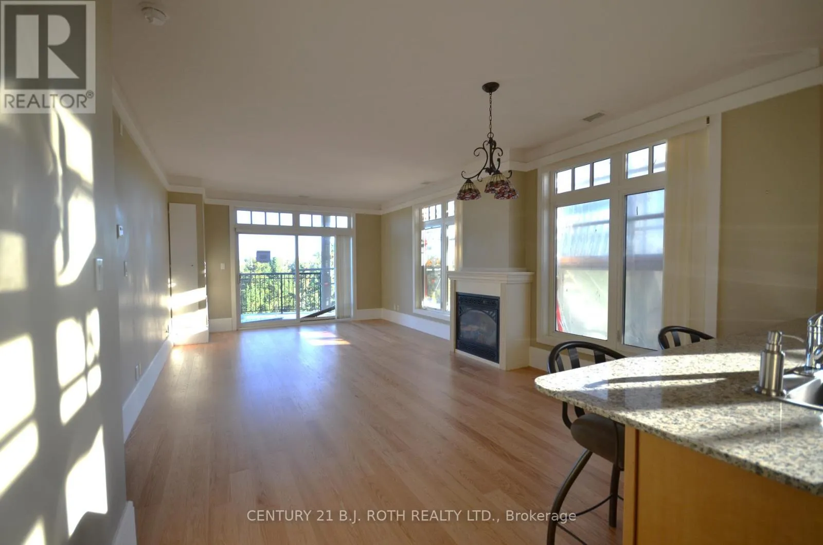 Cross Streets: Front St. & Elgin. ** Directions: Front St. to Elgin to Cedar Island Rd. Welcome to The Elgin Bay Club, Orillia's premier waterfront condominium lifestyle! This spacious, 1218 Sq Ft, corner end (balcony faces south), 2 bedroom, 2 bath unit, offers a bright, open-concept layout with beautifully updated kitchen cabinetry, countertops, and main area flooring. Enjoy the peace of mind with a well-maintained building, elevator access, underground parking, and secured entry. Take in serene views from your private balcony or enjoy the lifestyle benefits of nearby walking trails, the marina nearby, and charming downtown Orillia, for all your dining & shopping needs. This unit is bright, move-in ready and ideal for downsizers, professionals, or anyone looking for carefree condo living in a sought-after location. Exterior upgrade completion scheduled to finish November 5, 2025. Balcony railings will be placed back and exterior will have protection plastic removed & cleaned up at completion. (id:27476)