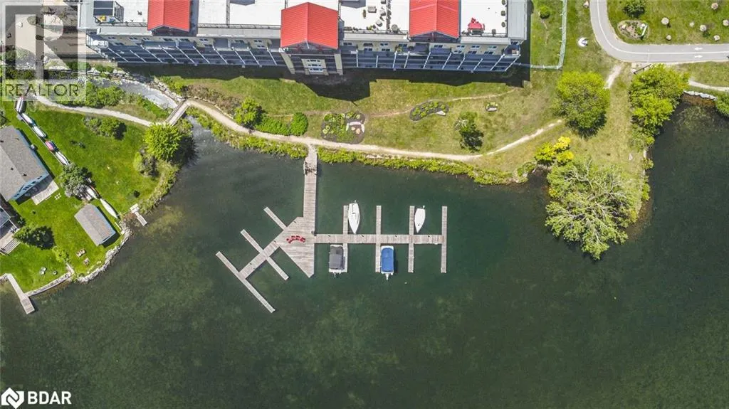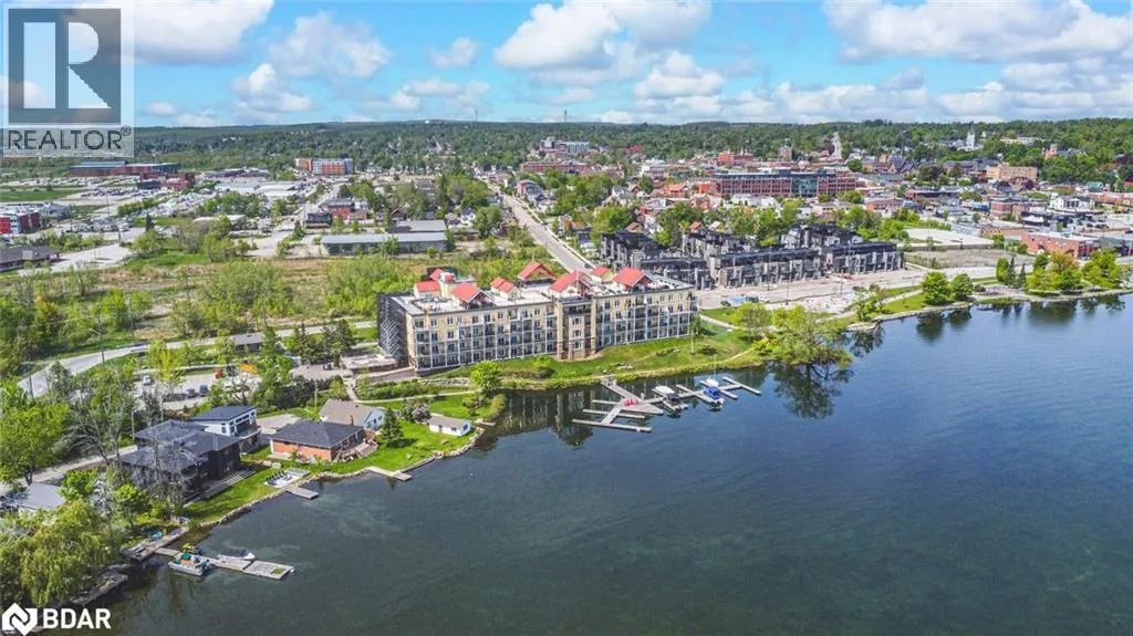 Front St S/Elgin St/Cedar Island Rd 2,208 SQ FT PENTHOUSE WITH MASSIVE ROOFTOP TERRACE, PRIVATE BALCONY, 2 PARKING SPOTS, LAKE VIEWS & RARE PRIVATE DOCK SLIP! Hereâs your chance to own the crown jewel of Elgin Bay Club, a highly sought-after waterfront penthouse with over 2,200 sq ft of light-filled living space and jaw-dropping views of Lake Couchiching. This bright corner unit features an expansive private rooftop terrace with panoramic views of the lake and Orillia skyline, plus a balcony with a glass sliding walkout overlooking the marina, waterfront park, and downtown. Minutes to shops, dining, trails, parks, beaches, and a marina, this prime location is all about lifestyle. The kitchen offers white cabinets with some glass inserts, granite counters, a bold black/white tile backsplash, an updated built-in oven and cooktop, a large pantry and a breakfast nook. The expansive living and dining areas are anchored by a gas fireplace and feature dual furnace systems with separate heat controls. The generous primary bedroom includes a sitting area, a walk-in closet and a 4-piece ensuite with a glass shower, jacuzzi tub and massive vanity. A 4-piece main bath serves the second bedroom. Bonus second-level loft with a walkout offers added living space and flexible use. Newer vinyl flooring is featured throughout most areas, with in-suite laundry and ample storage adding everyday convenience. Two owned parking spaces, one underground and one outdoor, an exclusive storage locker, make daily living easy. Residents enjoy amenities including a party/meeting room, rooftop deck, community BBQ and visitor parking. Enjoy exclusive ownership of one of Elgin Bay Clubâs rare private dock slips, as one of the few residences with this privilege, so you can pull up on your boat, store your kayak, and savour waterfront living! Fees include water, parking, building insurance and common elements. Opportunities like this are few and far between - make this rare waterfront penthouse your #HomeToStay before someone else does! (id:27476)