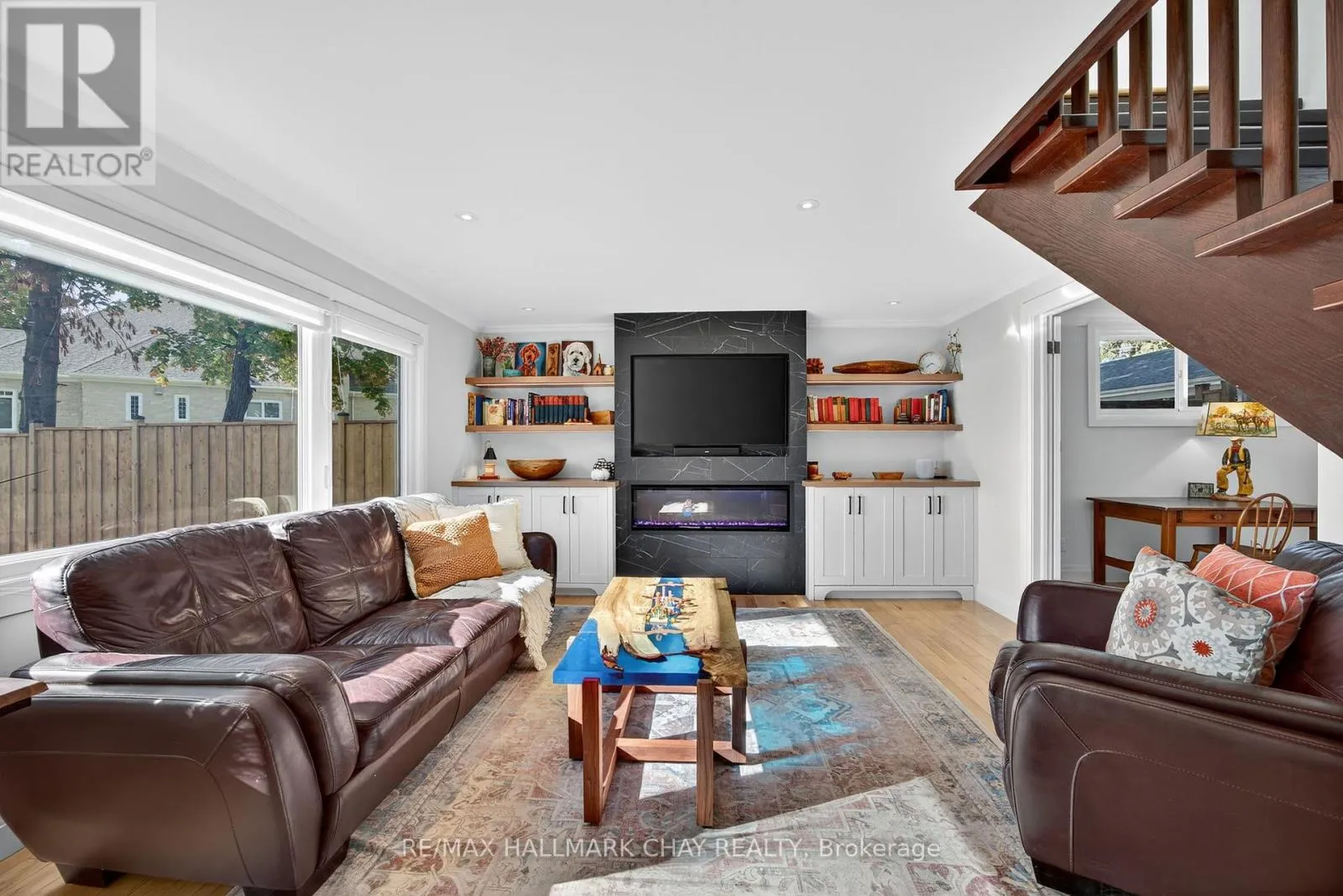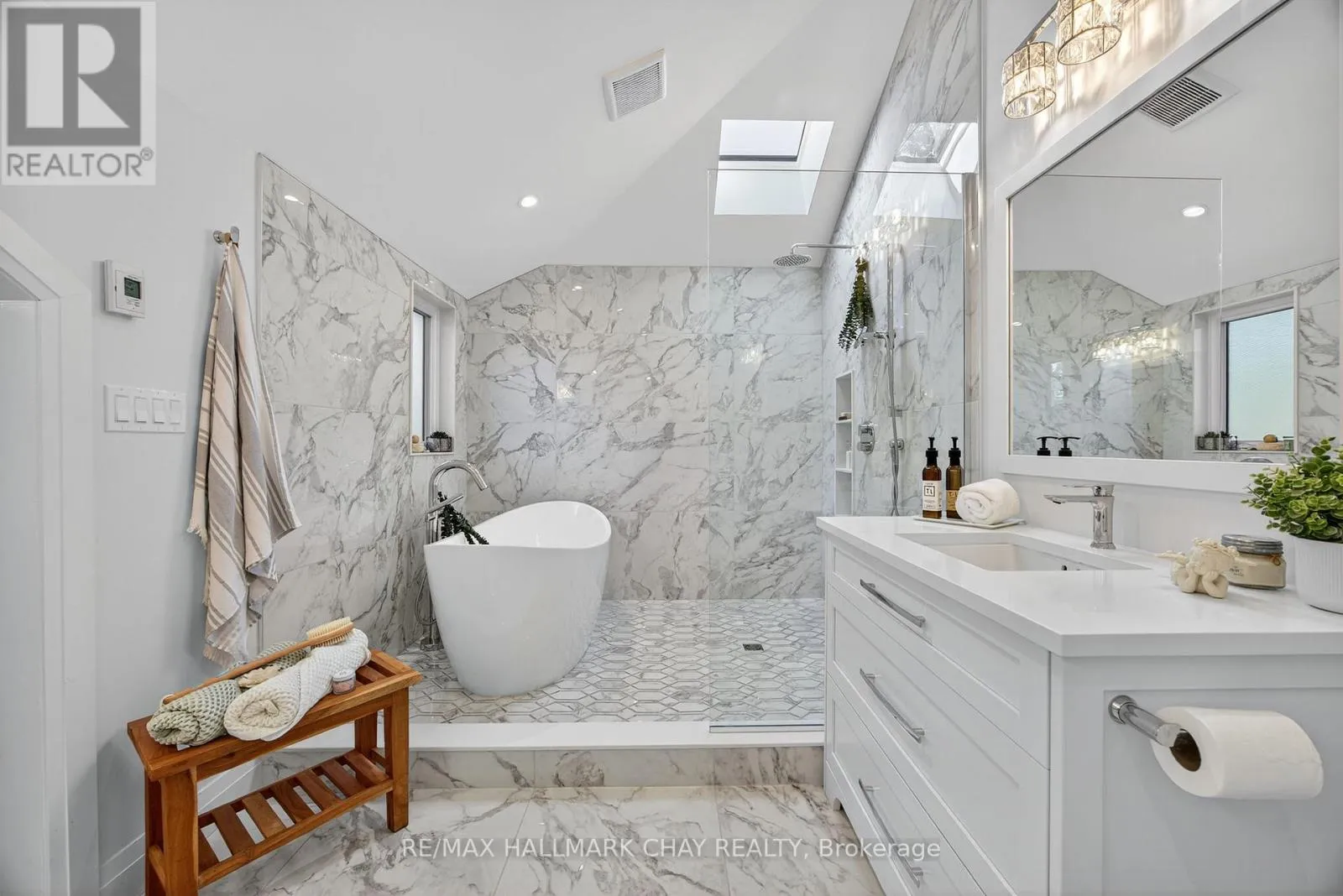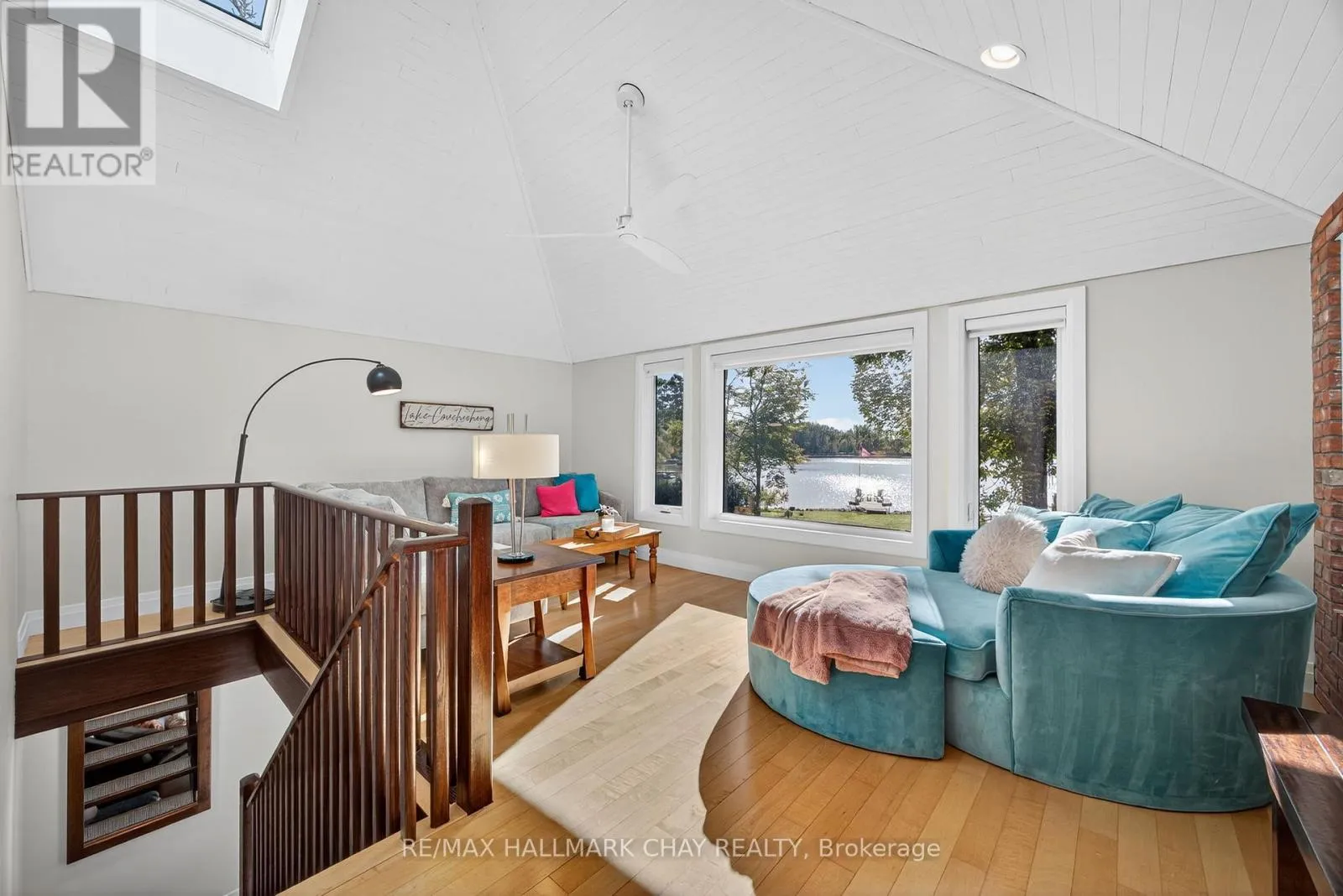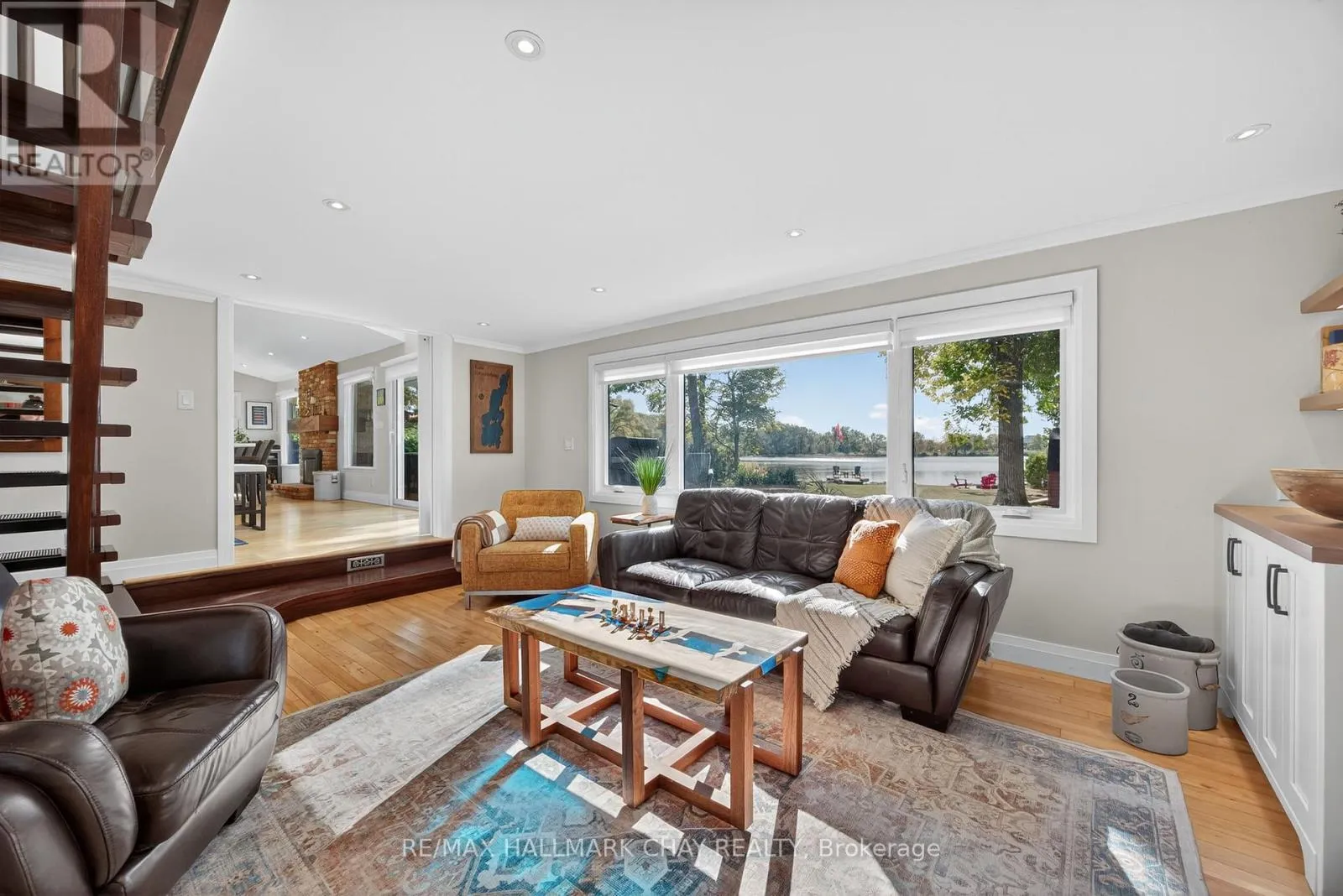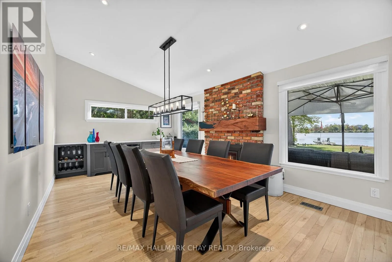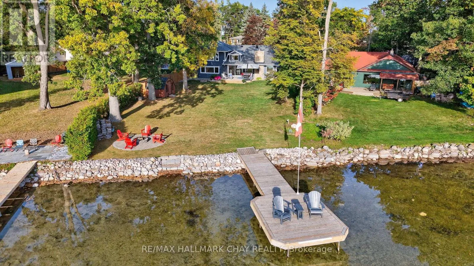 Atherly Rd / Couchiching Point Rd / Broadview Ave Waterfront Estate Living at Its Finest! Rarely Offered West-Facing Lakefront in Coveted Couchiching Point! This remarkable 0.43-acre estate lot captures the very essence of waterfront luxury mature trees framing the horizon, a crystal-clear sandy shoreline, and panoramic sunsets that paint the lake in gold each evening. From your private dock, cruise seamlessly through Lake Couchiching into Lake Simcoe or Georgian Bay the ultimate in four-season waterfront living.Completely re-imagined by Brennan Construction, this professionally renovated masterpiece offers over 2,600 sq. ft. of refined space where craftsmanship meets modern elegance. Vaulted ceilings, expansive windows, and an open-flowing layout immerse every room in natural light and lake views. The chefs kitchen showcases imported Cambria quartz, bespoke cabinetry, and premium appliances, flowing into a dining area with built-in serving cabinetry and a Napoleon gas fireplace.The sky-lit loft overlooks the lake, while the great room centres around a stunning stone fireplace. The primary suite is a true retreat with vaulted ceilings, a spa-inspired ensuite with heated floors, and a walk-in closet. A main-floor guest suite offers flexibility, complemented by a designer laundry with custom cabinetry and Dekton countertops.Outdoors, the manicured grounds feature new landscaping, a stone terrace, fire pit, and irrigation system ideal for family gatherings, children at play, or quiet moments by the water. Steps to Lightfoot Trail, Tudhope Park, marinas, and downtown Orillia, this location blends tranquility with urban convenience. With upgraded systems, triple-pane windows, security, and a heated garage, every detail ensures turn-key, worry-free living. This is more than a home its a statement in luxury waterfront lifestyle, a rare opportunity where every sunset reminds you why homes like this are truly one-of-a-kind! (id:27476)
