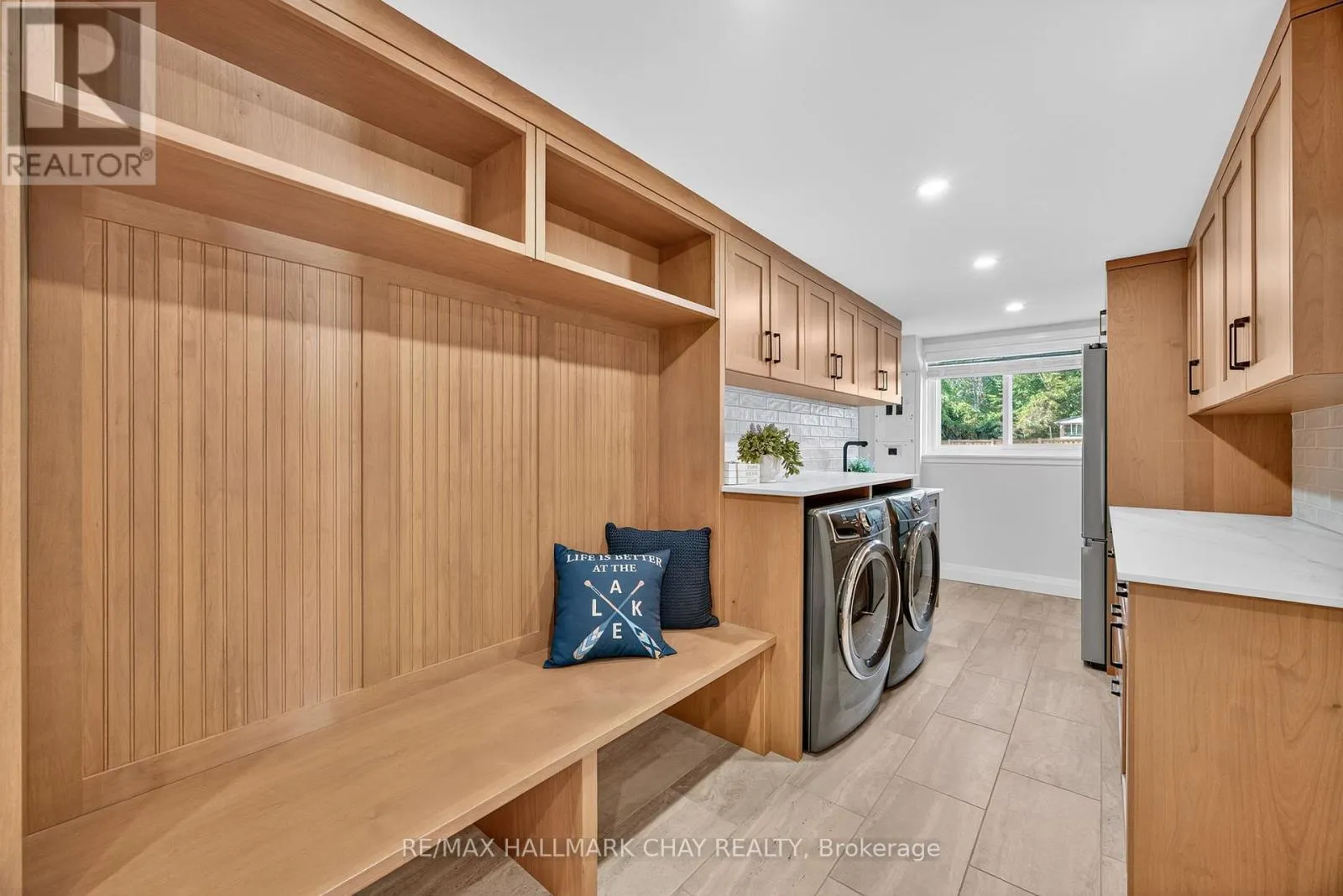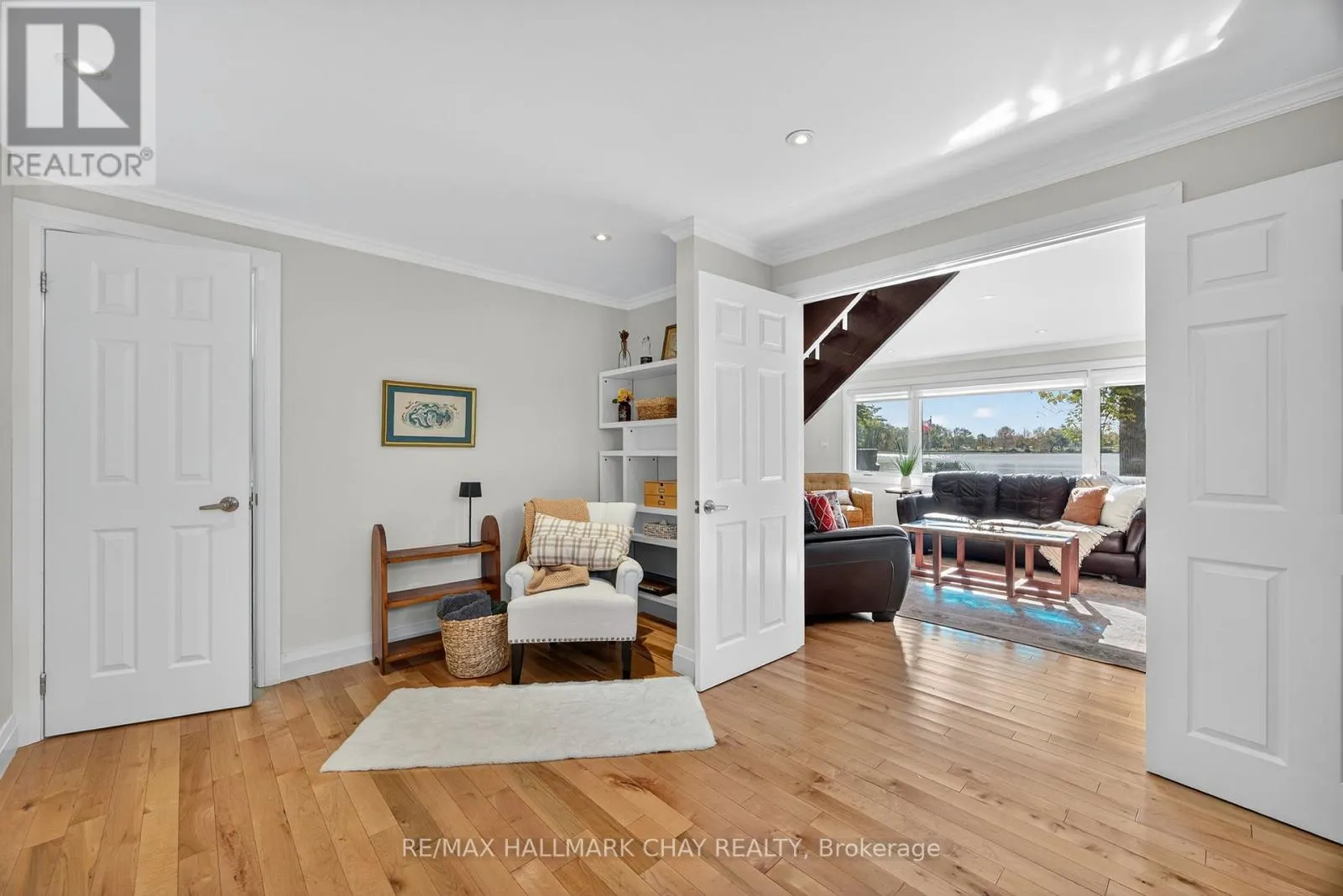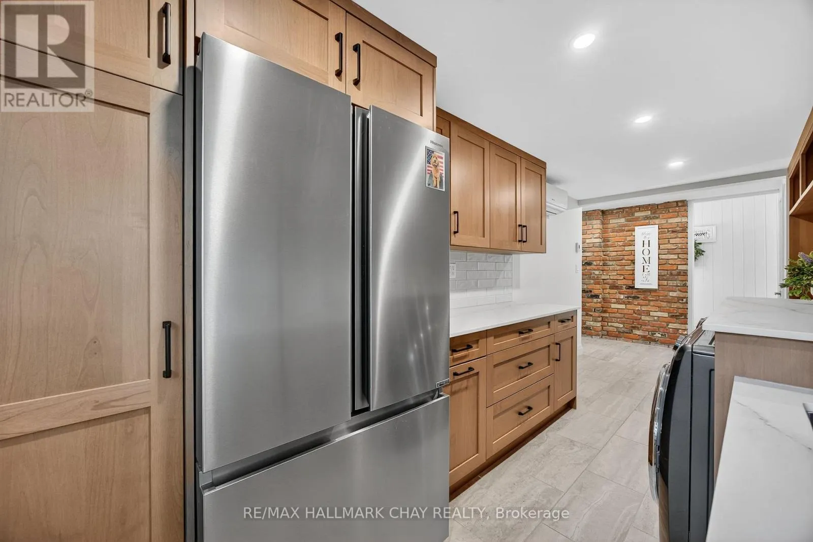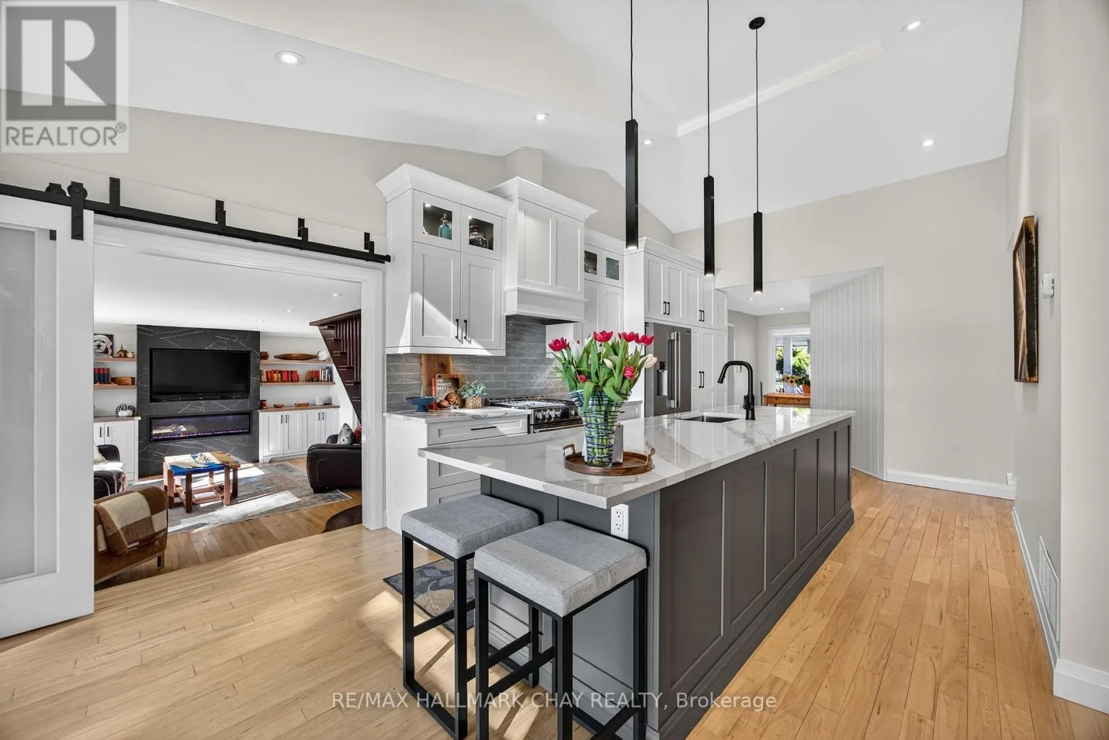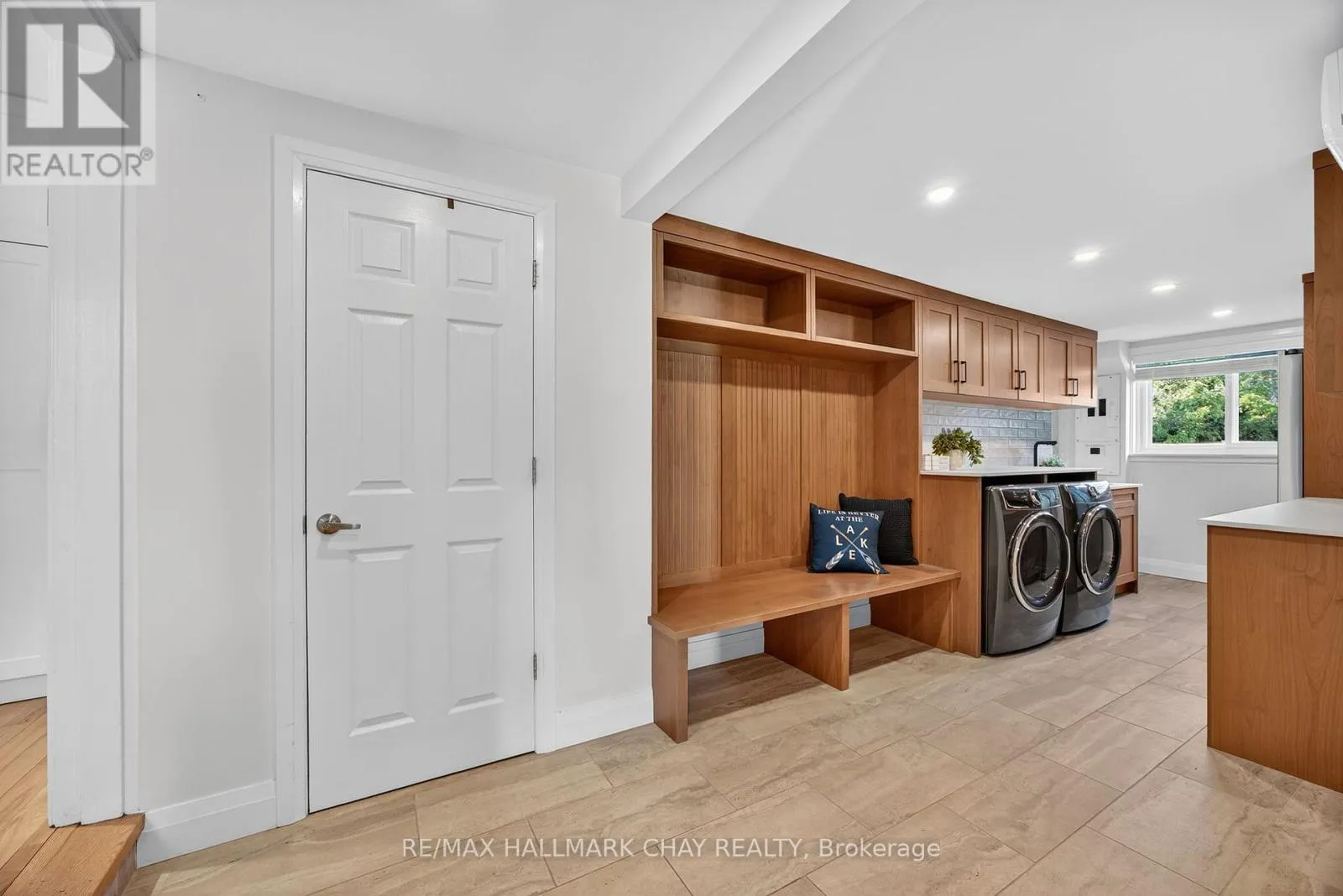 Atherly Rd / Couchiching Point Rd / Broadview Ave Waterfront Estate Living at Its Finest! Rarely Offered West-Facing Lakefront in Coveted Couchiching Point! This remarkable 0.43-acre estate lot captures the very essence of waterfront luxury mature trees framing the horizon, a crystal-clear sandy shoreline, and panoramic sunsets that paint the lake in gold each evening. From your private dock, cruise seamlessly through Lake Couchiching into Lake Simcoe or Georgian Bay the ultimate in four-season waterfront living.Completely re-imagined by Brennan Construction, this professionally renovated masterpiece offers over 2,600 sq. ft. of refined space where craftsmanship meets modern elegance. Vaulted ceilings, expansive windows, and an open-flowing layout immerse every room in natural light and lake views. The chefs kitchen showcases imported Cambria quartz, bespoke cabinetry, and premium appliances, flowing into a dining area with built-in serving cabinetry and a Napoleon gas fireplace.The sky-lit loft overlooks the lake, while the great room centres around a stunning stone fireplace. The primary suite is a true retreat with vaulted ceilings, a spa-inspired ensuite with heated floors, and a walk-in closet. A main-floor guest suite offers flexibility, complemented by a designer laundry with custom cabinetry and Dekton countertops.Outdoors, the manicured grounds feature new landscaping, a stone terrace, fire pit, and irrigation system ideal for family gatherings, children at play, or quiet moments by the water. Steps to Lightfoot Trail, Tudhope Park, marinas, and downtown Orillia, this location blends tranquility with urban convenience. With upgraded systems, triple-pane windows, security, and a heated garage, every detail ensures turn-key, worry-free living. This is more than a home its a statement in luxury waterfront lifestyle, a rare opportunity where every sunset reminds you why homes like this are truly one-of-a-kind! (id:27476)