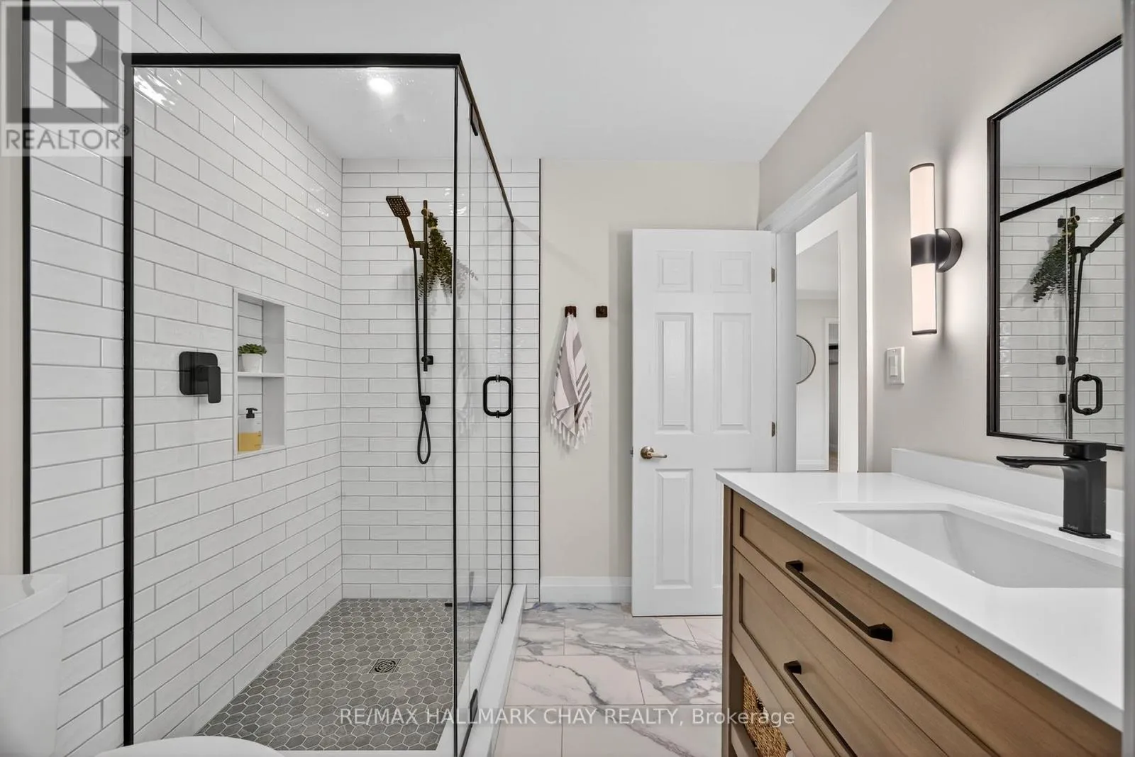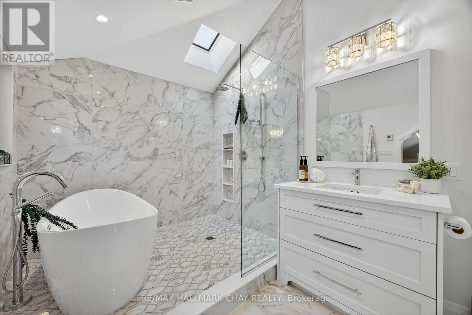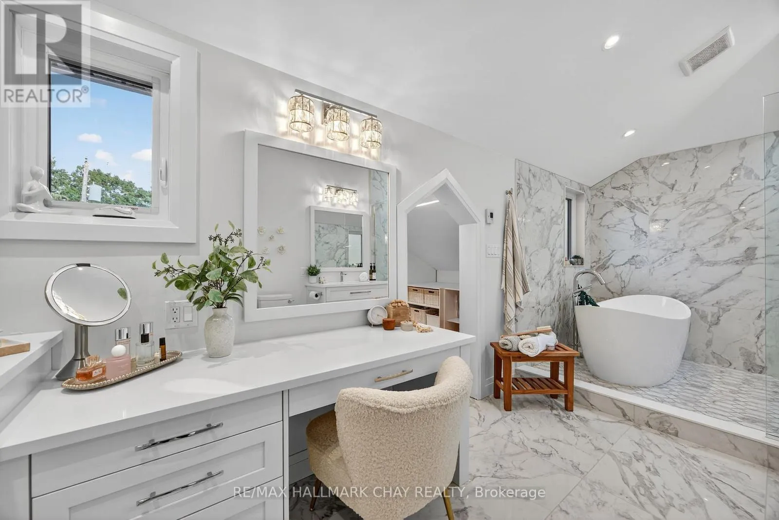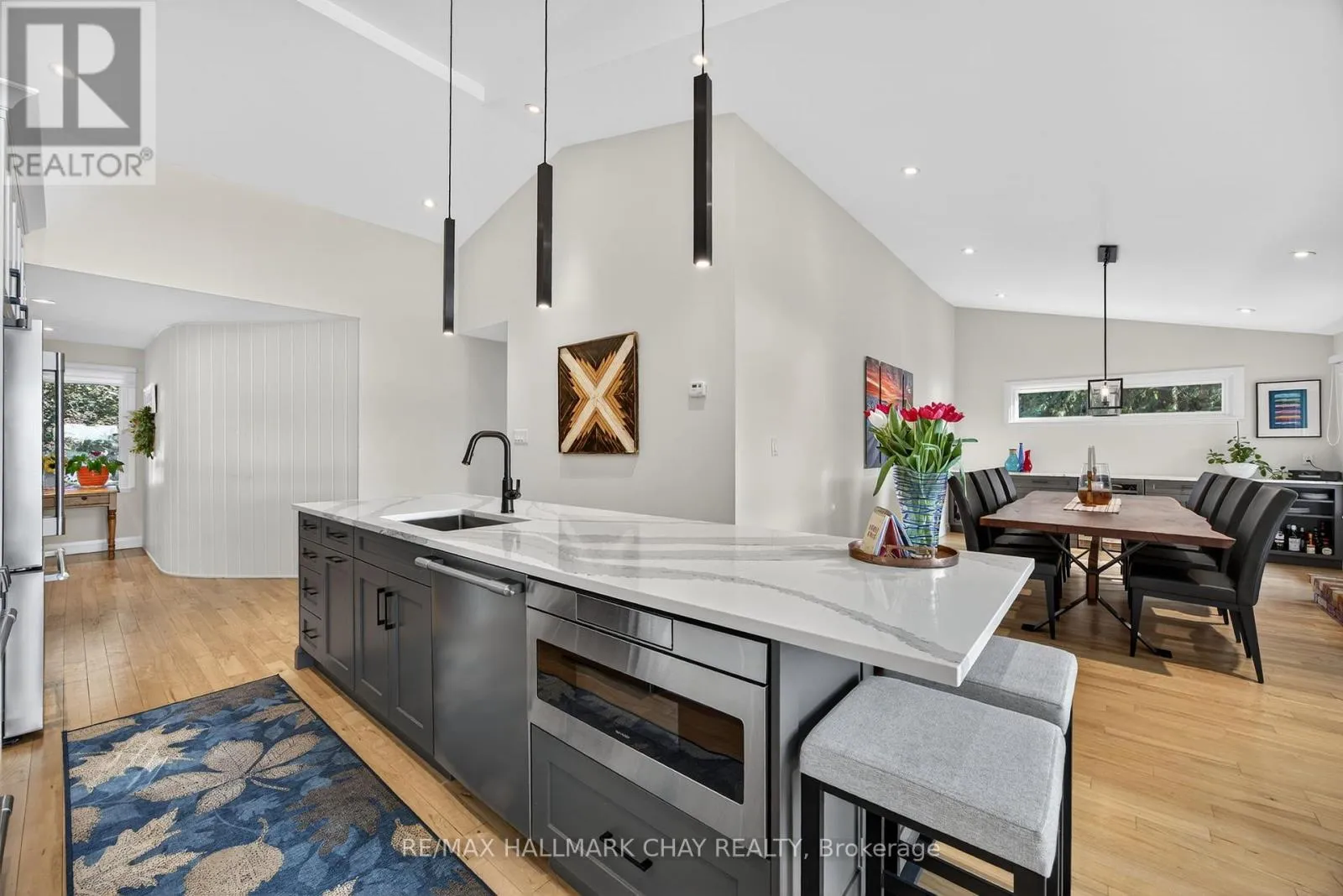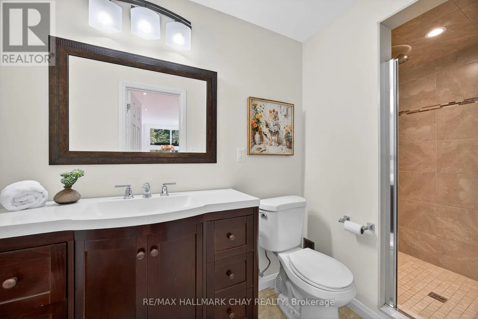Atherly Rd / Couchiching Point Rd / Broadview Ave Waterfront Estate Living at Its Finest! Rarely Offered West-Facing Lakefront in Coveted Couchiching Point! This remarkable 0.43-acre estate lot captures the very essence of waterfront luxury mature trees framing the horizon, a crystal-clear sandy shoreline, and panoramic sunsets that paint the lake in gold each evening. From your private dock, cruise seamlessly through Lake Couchiching into Lake Simcoe or Georgian Bay the ultimate in four-season waterfront living.Completely re-imagined by Brennan Construction, this professionally renovated masterpiece offers over 2,600 sq. ft. of refined space where craftsmanship meets modern elegance. Vaulted ceilings, expansive windows, and an open-flowing layout immerse every room in natural light and lake views. The chefs kitchen showcases imported Cambria quartz, bespoke cabinetry, and premium appliances, flowing into a dining area with built-in serving cabinetry and a Napoleon gas fireplace.The sky-lit loft overlooks the lake, while the great room centres around a stunning stone fireplace. The primary suite is a true retreat with vaulted ceilings, a spa-inspired ensuite with heated floors, and a walk-in closet. A main-floor guest suite offers flexibility, complemented by a designer laundry with custom cabinetry and Dekton countertops.Outdoors, the manicured grounds feature new landscaping, a stone terrace, fire pit, and irrigation system ideal for family gatherings, children at play, or quiet moments by the water. Steps to Lightfoot Trail, Tudhope Park, marinas, and downtown Orillia, this location blends tranquility with urban convenience. With upgraded systems, triple-pane windows, security, and a heated garage, every detail ensures turn-key, worry-free living. This is more than a home its a statement in luxury waterfront lifestyle, a rare opportunity where every sunset reminds you why homes like this are truly one-of-a-kind! (id:27476)