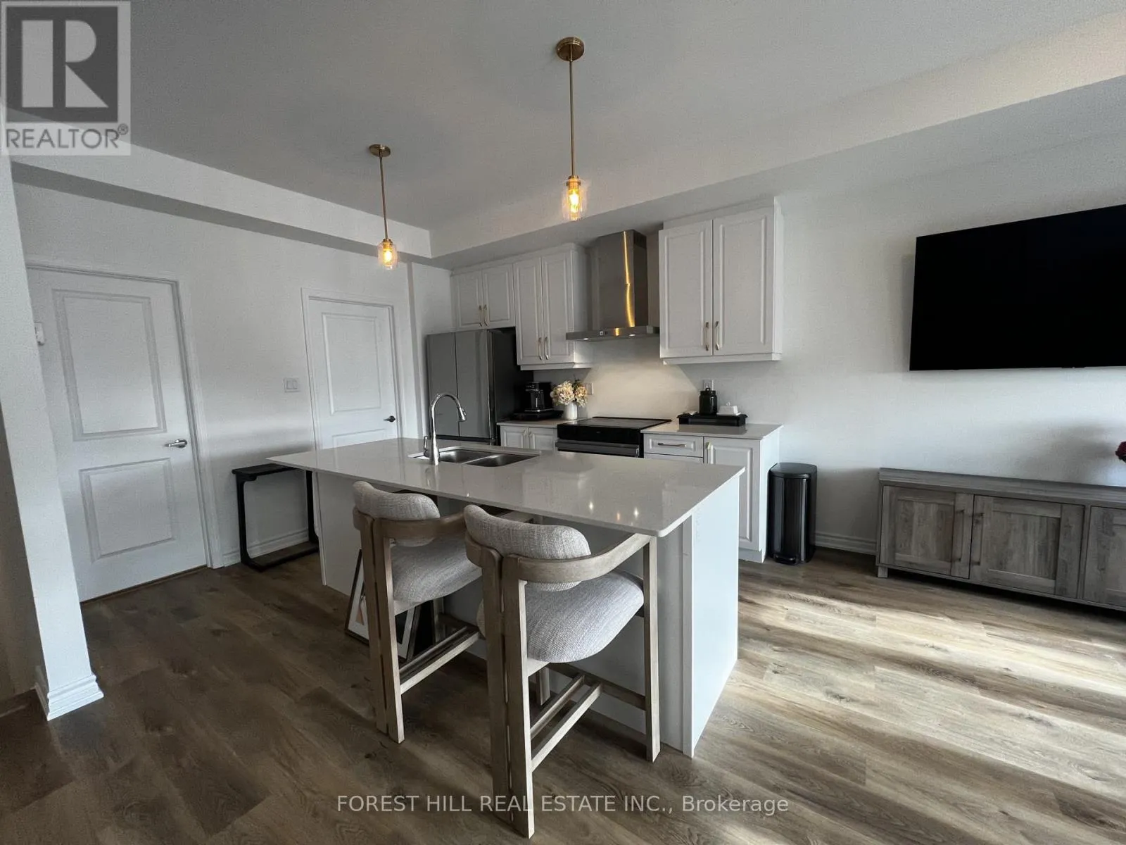 Cross Streets: Front St S and Elgin St. ** Directions: Front St S to Elgin St. Modern Lakeside Living in Orillia. Step into this upgraded and elegant 3-storey townhome offering 1,444 sq. ft. of stylish open- concept living just steps from the waterfront, marinas, and vibrant downtown Orillia. Designed with modern comfort and convenience in mind, this home is ideal for professionals, couples, or small families seeking the perfect blend of contemporary design and relaxed lakeside charm. The main-level foyer welcomes you with a bright and versatile space-perfect for a home office or cozy den-and offers direct access to an oversized 10' x 26' garage with extra depth for parking and storage. The second floor showcases a sun-filled, south-facing open-concept living and dining area that flows seamlessly onto a private balcony, perfect for morning coffee or an evening nightcap. The modern kitchen features quartz countertops, upgraded stainless steel appliances, and a layout made for entertaining. Upstairs, retreat to the primary suite with its own ensuite bath, while a second bedroom and full main bathroom provide the ideal setup for guests or family. At the top, your private rooftop terrace awaits with a gas hook-up, plus this is a true oasis in the sky. Whether you're hosting friends, catching a sunset, or simply relaxing under the stars, this space offers the ultimate outdoor escape with sweeping neighbourhood views. Additional features include upgraded finishes throughout, convenient in-unit washer and dryer, and parking for two vehicles (garage + driveway). Located just minutes from the Port of Orillia, shops, restaurants, trails, and quick highway access, this home offers the best of lakeside living with every modern convenience. Modern. Convenient. South-Facing. Lakeside Living at Its Best. (id:27476)