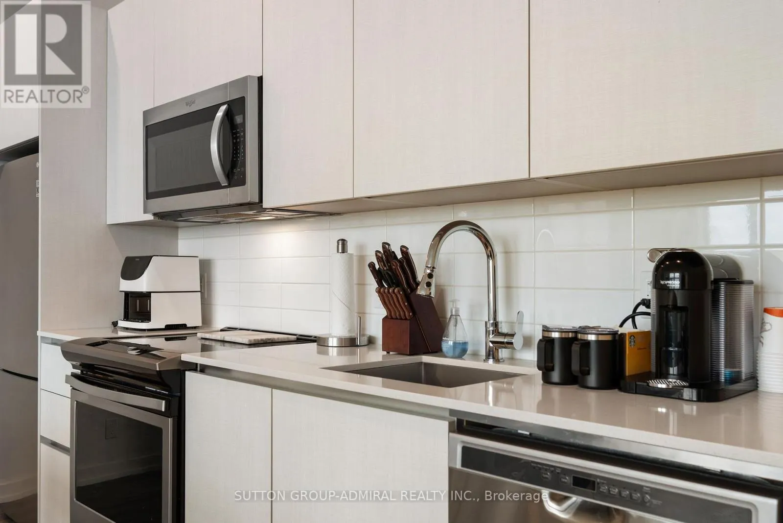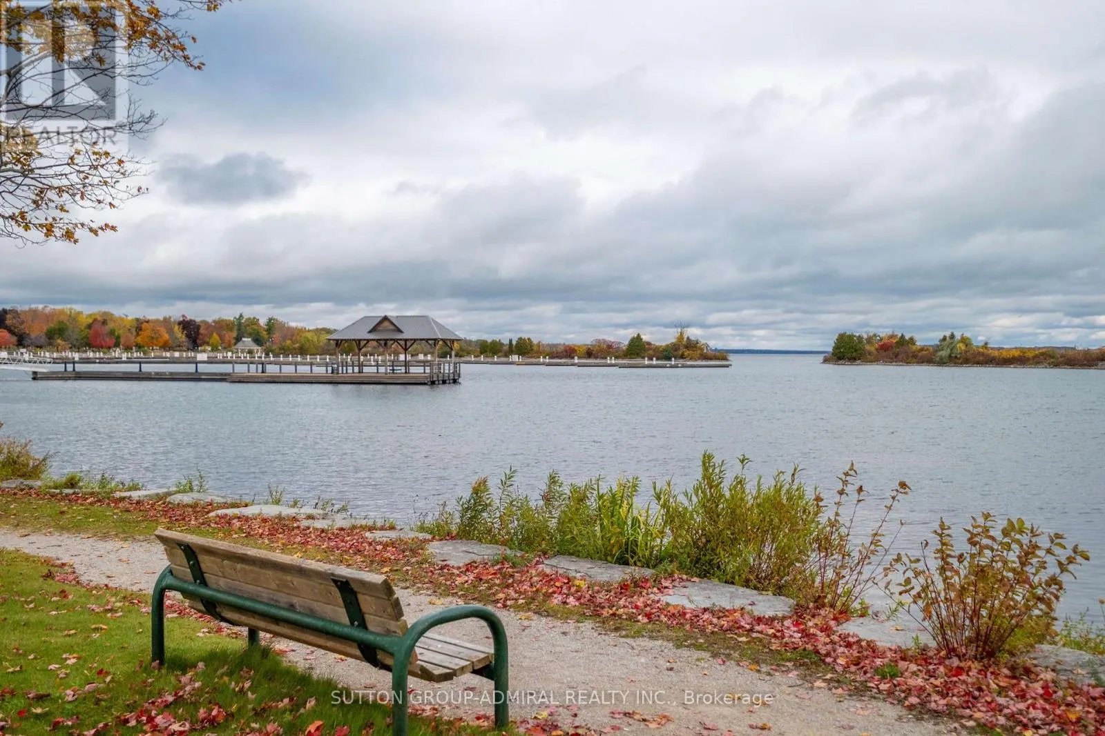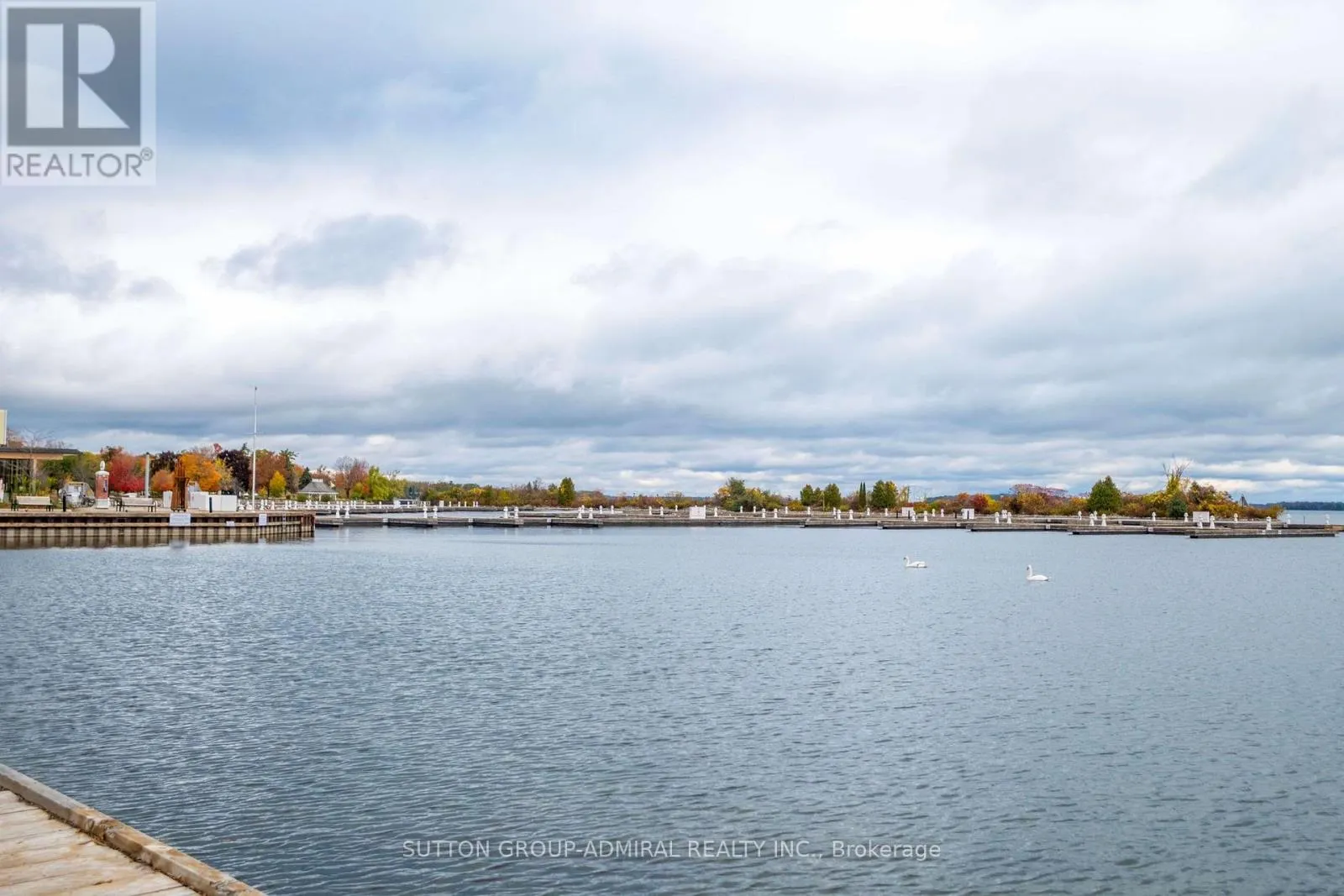 Matchedash and Mississauga Lakeview Loft Living in the Heart of Orillia WITH DIRECT WATER VIEWS Welcome to Matchedash Lofts, where modern design meets downtown convenience. This bright and airy third-floor 950 sq ft residence with souring high ceilings and floor-to-ceiling windows and a Juliette balcony with picturesque views of Lake Couchiching and the Orillia skyline. The functional layout includes a spacious one-bedroom plus den and two full bathrooms. The open living and dining area flows seamlessly into a contemporary kitchen appointed with stone counters, stainless steel appliances, tile backsplash, and generous storage. The den offers flexibility as a home office or guest room, while the primary suite provides a walk-in closet and a private ensuite with elegant finishes. Residents enjoy access to a rooftop terrace showcasing panoramic lake views, along with secure underground parking and a dedicated storage locker. Perfectly situated within walking distance to shops, restaurants, the waterfront, and scenic trails, this residence delivers a refined blend of comfort, location, and lifestyle. (id:27476)