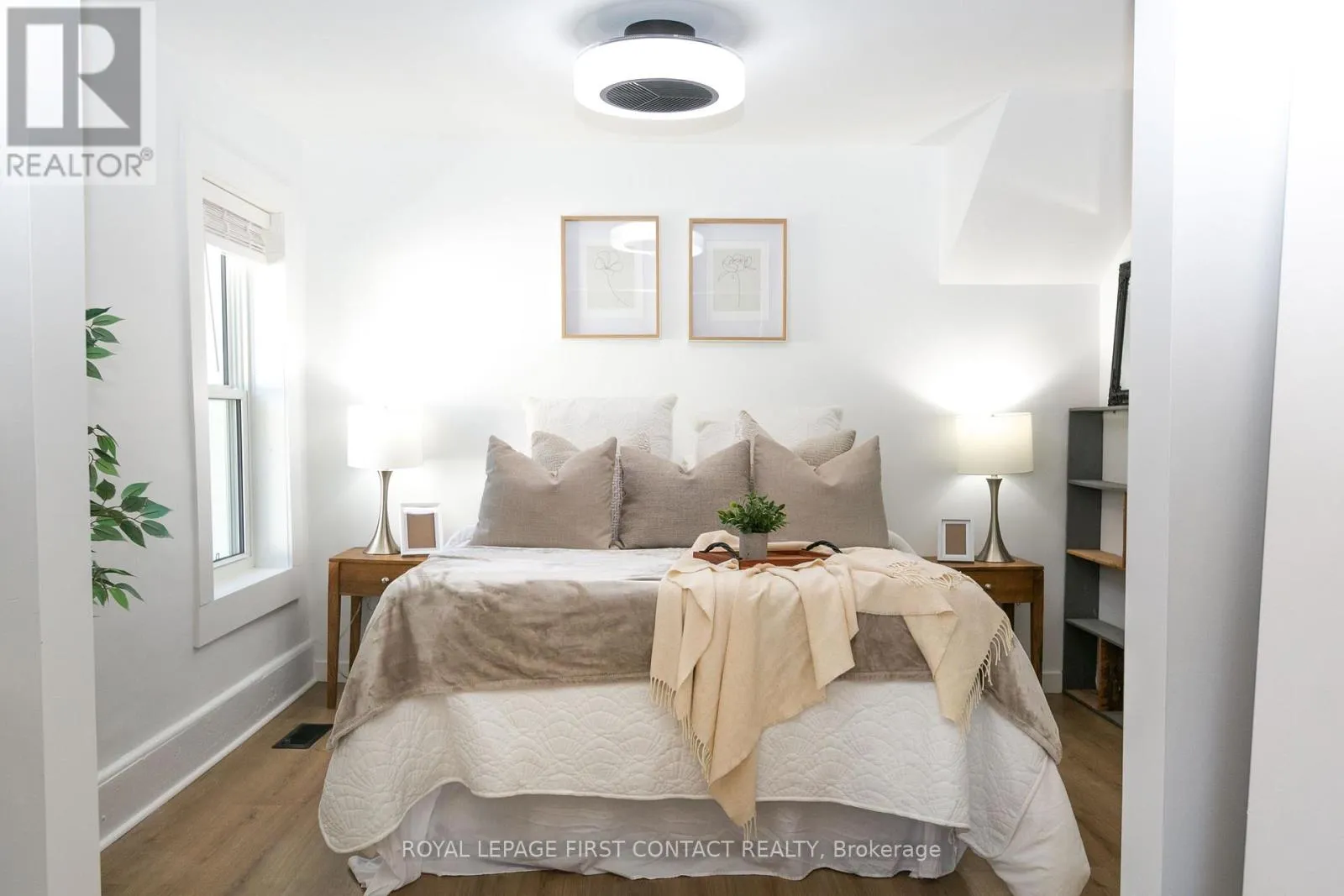 North Street E/Laclie Street Welcome to this charming, move-in ready home thats ideal for first-time buyers or those looking to downsize. The main floor features a primary bedroom with a walk-in closet (easily convertible back to a third bedroom), a renovated 4-piece bathroom, and the convenience of main floor laundry. Freshly painted and completely carpet-free, the home showcases newer laminate flooring throughout. The open-concept layout offers a bright living and dining area, flowing seamlessly into the large kitchen with direct access to a private, fully fenced backyard. Enjoy outdoor living with a partially covered deck and plenty of space in the oversized shed (20 feet x 8 feet) perfect for lawn equipment, toys, or even a snowmobile. Upstairs, the cozy loft space makes an excellent guest area or home office. The unfinished basement provides plenty of storage options. All major updates have been taken care of, including newer roof, windows, doors, A/C, light fixtures, eavestroughs, and fascia, leaving you with peace of mind for years to come. Located close to Hwy 11 access, downtown for local shops and restaurants, and the beautiful Couchiching Beach, this home is move-in ready and waiting for you! (id:27476)