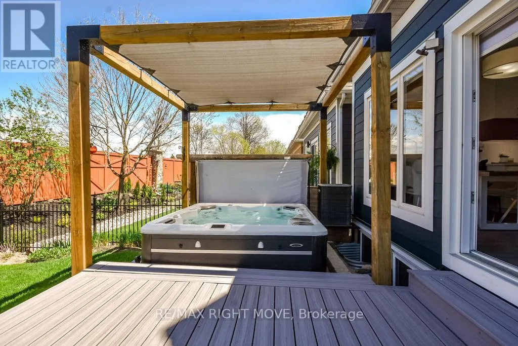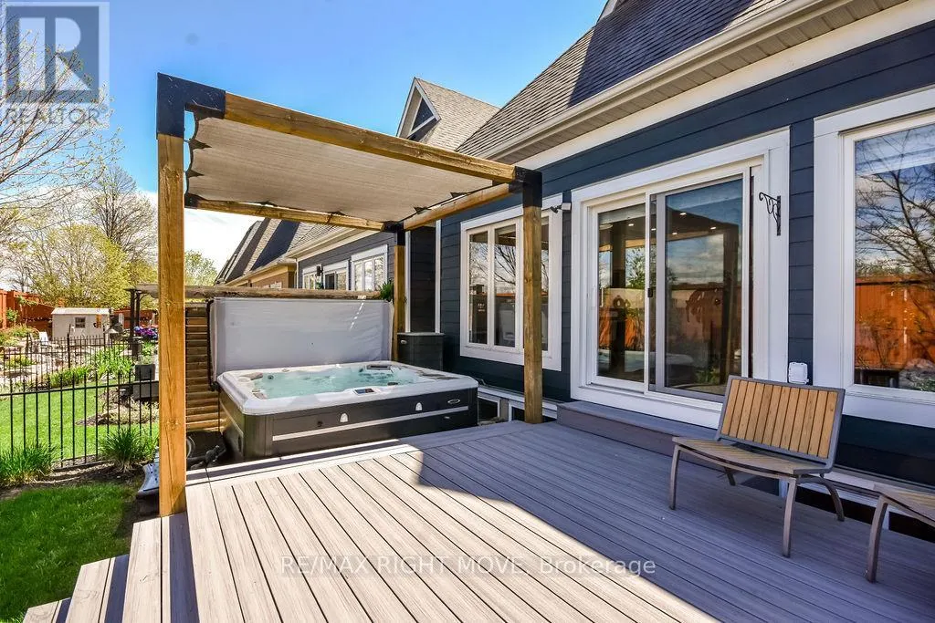 Cross Streets: ATHERLEY ROAD / Invermara Crt. ** Directions: ATHERLEY ROAD to Invermara Crt, left at #10, through gate. Nestled in a private, gated community on the shores of Lake Simcoe in the heart of Orillia, this beautifully updated executive home offers over 2,250 sq. ft. of fully finished, light-filled living space designed for comfort, style, and effortless entertaining. Step into a thoughtfully renovated 4-bedroom, 3-bathroom home that impresses from the moment you enter. Soaring cathedral ceilings, rich hardwood flooring, and expansive windows set the stage for bright and inviting open-concept living. The gourmet kitchen is a showstopper featuring a large centre island, Miele stainless steel appliances, quartz countertops, and stunning backsplash. Whether you're hosting family or friends, the kitchen flows seamlessly into the dining and living areas, with a cozy gas fireplace and sliding glass doors that open to your private outdoor retreat.Unwind in the maintenance-free backyard oasis complete with a spacious deck, hot tub, fencing, and a side-yard storage shed for convenience. Designed for flexibility, this home offers a large bedroom on the main floor with a semi ensuite. The second floor loft is the perfect home office or guest area, overlooking the main living space and providing an additional two bedrooms and full bathroom. Main floor and second floor all feature motorized window coverings. The finished lower level expands your living options with a large rec room, dedicated laundry space, home office, fourth bedroom, and a full third bathroom plus ample storage. Enjoy freehold ownership with common element fees of $349/month, which includes access to the Lakeside Clubhouse with a saltwater pool, gym, games room, full kitchen, and private lake access perfect for morning swims or sunset paddles. Located just steps from walking trails, parks, and more, this welcoming community offers the perfect balance of peaceful living and active lifestyle. (id:27476)