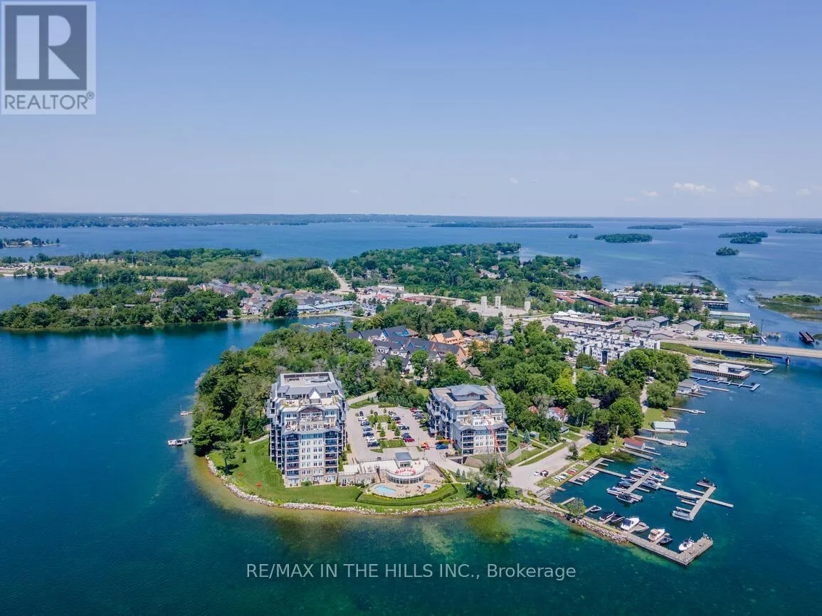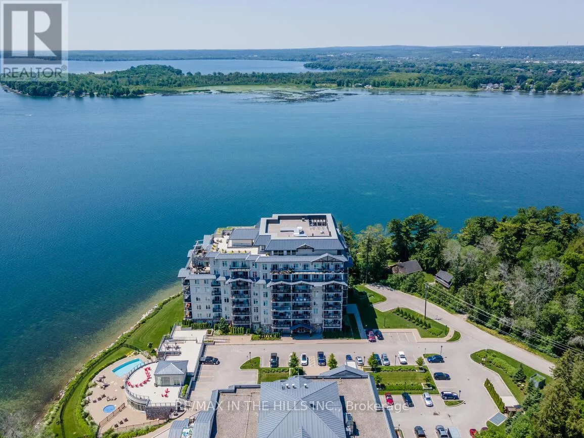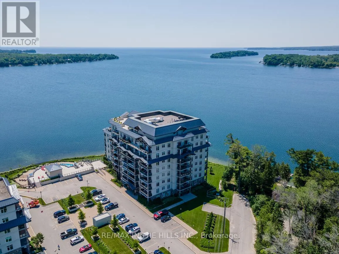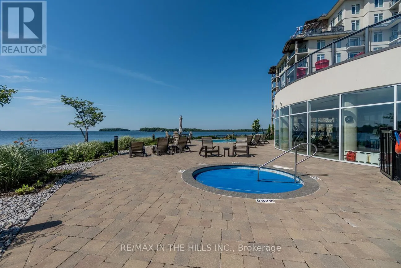 Cross Streets: Atherley Rd & Orchard Point Rd. ** Directions: Atherley Rd. & Orchard Point Rd. Embrace the tranquility of refined cottage-style living on the pristine shores of Lake Simcoe in this beautifully curated 1+1 bedroom, 2-bathroom residence. Set within an exclusive, resort-inspired community, this suite showcases sophisticated design and meticulous craftsmanship throughout. An entertainer's dream, the open-concept layout features a gourmet kitchen with a granite island, premium gas range, and sleek custom cabinetry - seamlessly flowing into a bright living area adorned with rich hardwood floors and elegant crown moulding. The inviting primary suite offers a peaceful retreat with ample space and comfort. Step out from the living area onto your private balcony to savor sweeping southwest views of Lake Simcoe - the perfect backdrop for morning coffee or breathtaking sunsets. Residents enjoy boutique-style amenities rivaling the finest resorts: a rooftop terrace, lush garden courtyard, fully equipped fitness centre and yoga studio, rejuvenating sauna, and an outdoor pool and hot tub overlooking the lake. Just minutes from town, yet a world away in ambiance, this remarkable property captures the essence of modern lakeside sophistication - where nature, luxury, and convenience exist in perfect harmony. A rare opportunity to experience life on Lake Simcoe at its most exquisite. (id:27476)