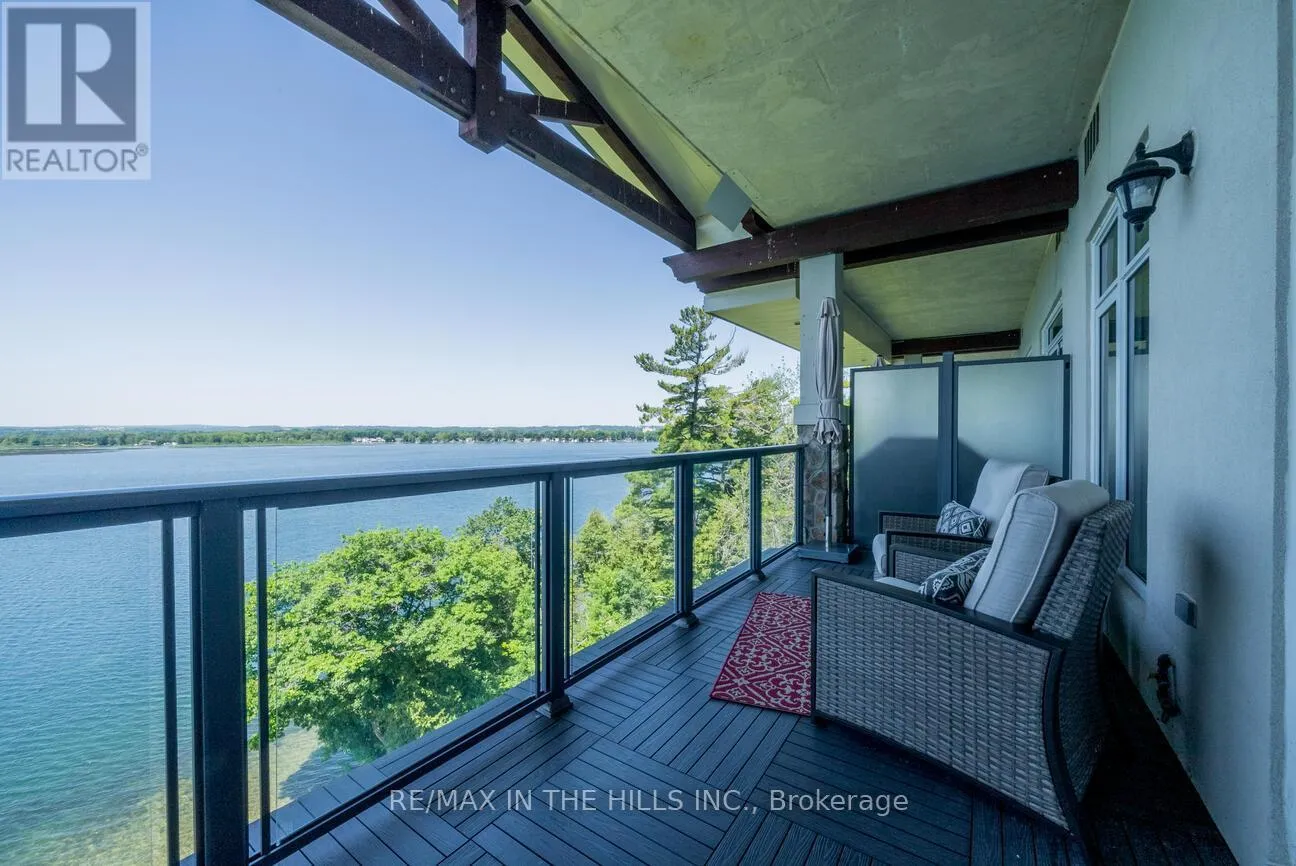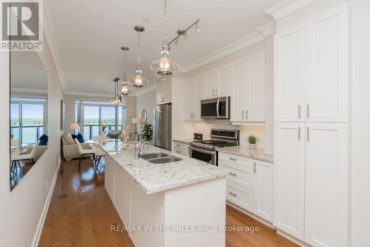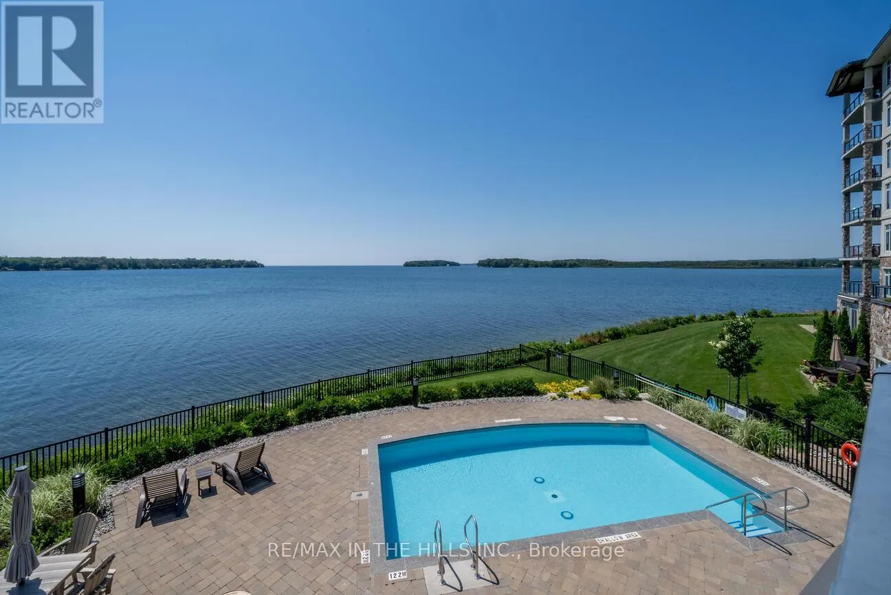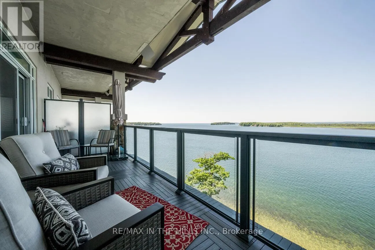 Cross Streets: Atherley Rd & Orchard Point Rd. ** Directions: Atherley Rd. & Orchard Point Rd. Embrace the tranquility of refined cottage-style living on the pristine shores of Lake Simcoe in this beautifully curated 1+1 bedroom, 2-bathroom residence. Set within an exclusive, resort-inspired community, this suite showcases sophisticated design and meticulous craftsmanship throughout. An entertainer's dream, the open-concept layout features a gourmet kitchen with a granite island, premium gas range, and sleek custom cabinetry - seamlessly flowing into a bright living area adorned with rich hardwood floors and elegant crown moulding. The inviting primary suite offers a peaceful retreat with ample space and comfort. Step out from the living area onto your private balcony to savor sweeping southwest views of Lake Simcoe - the perfect backdrop for morning coffee or breathtaking sunsets. Residents enjoy boutique-style amenities rivaling the finest resorts: a rooftop terrace, lush garden courtyard, fully equipped fitness centre and yoga studio, rejuvenating sauna, and an outdoor pool and hot tub overlooking the lake. Just minutes from town, yet a world away in ambiance, this remarkable property captures the essence of modern lakeside sophistication - where nature, luxury, and convenience exist in perfect harmony. A rare opportunity to experience life on Lake Simcoe at its most exquisite. (id:27476)