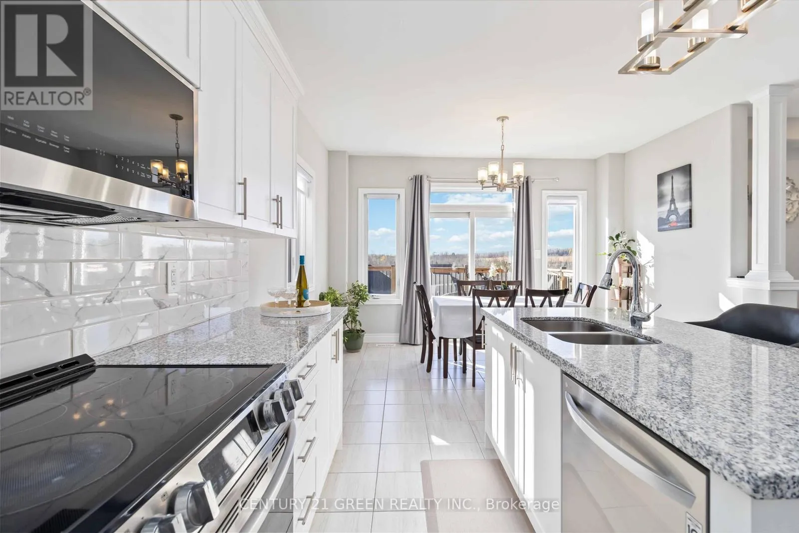 Cross Streets: Monarch Dr / Sierra Dr. ** Directions: Stone Ridge Blvd to Orion Blvd to Monarch Drive to Sierra Dr. Welcome to this bright and spacious 4-bedroom, 4-washroom Princeton Model by Mancini Homes, offering approximately 2,665 sq. ft. of modern living space on a premium 50 ft. lot with no sidewalk and a large driveway accommodating up to 4 cars. Located in Orillia's sought-after Westridge neighbourhood, this beautifully maintained home is perfect for families seeking space, comfort, and convenience. The main floor features a welcoming foyer, a separate living room, and an open-concept family room filled with natural light. Enjoy scenic views from the family room, dining area, and kitchen. The modern kitchen includes a centre island with seating, granite countertops, tile backsplash, and stainless steel appliances, with a dinette walkout to the deck and fenced backyard. Main-floor laundry and direct access to the two-car garage add everyday ease. The second floor offers four generous bedrooms and three full bathrooms. The primary suite features a walk-in closet and private ensuite with serene views. Bedrooms 2 and 3 share a Jack-and-Jill bath, while Bedroom 4 enjoys its own full bath. Located just minutes from major highways, shopping, schools, and recreation, this is a rare opportunity to own a spacious, stylish, and income-generating home in one of Orillia's most desirable Westridge community. Book your showing today. (id:27476)