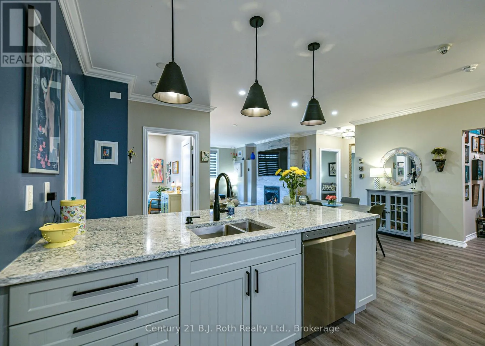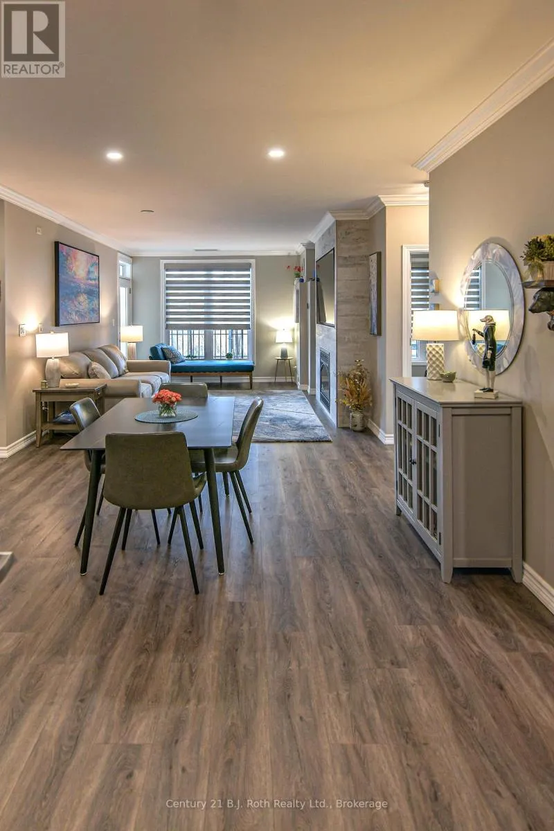 Cross Streets: Front St and Elgin St. ** Directions: Elgin St to Cedar Island Rd. Welcome to The Elgin Bay Club, Downtown Orillia's premier waterfront condominium with underground parking, secured entrance, and elevator access. This spacious, 1499 Sq Ft Unit features 3 bedrooms, 2 bath plus den and open concept living. The private balcony is almost 40' long. This bright City view unit has full day sun with western exposure and has been completely renovated in 2023. From down to bare concrete, there is a new Kitchen and Appliances, 2 new bathrooms, new ceiling with pot lights and some new walls, new floors throughout, new interior doors, trim and mouldings, new feature wall in the living room with gas fireplace and TV inset above. Also new are all the appliances, water heater, and HVAC. The building has also undergone a complete refit with new roof, exterior walls, resurfaced balconies, updated reception area, and landscaping. Building amenities include rooftop access with sitting and viewing areas and BBQ's, outdoor/waterfront sitting area, community room, reception area, onsite building manager, dock and water access, kayak/SUP storage racks, and an active social committee. The Millenium Trail is just off the property with walking to the City of Orillia Waterfront, the Port of Orillia, Couchiching Beach Park, Centennial Park, the Main Street, Shopping, Restaurants, Grocery Stores the LCBO and more. (id:27476)