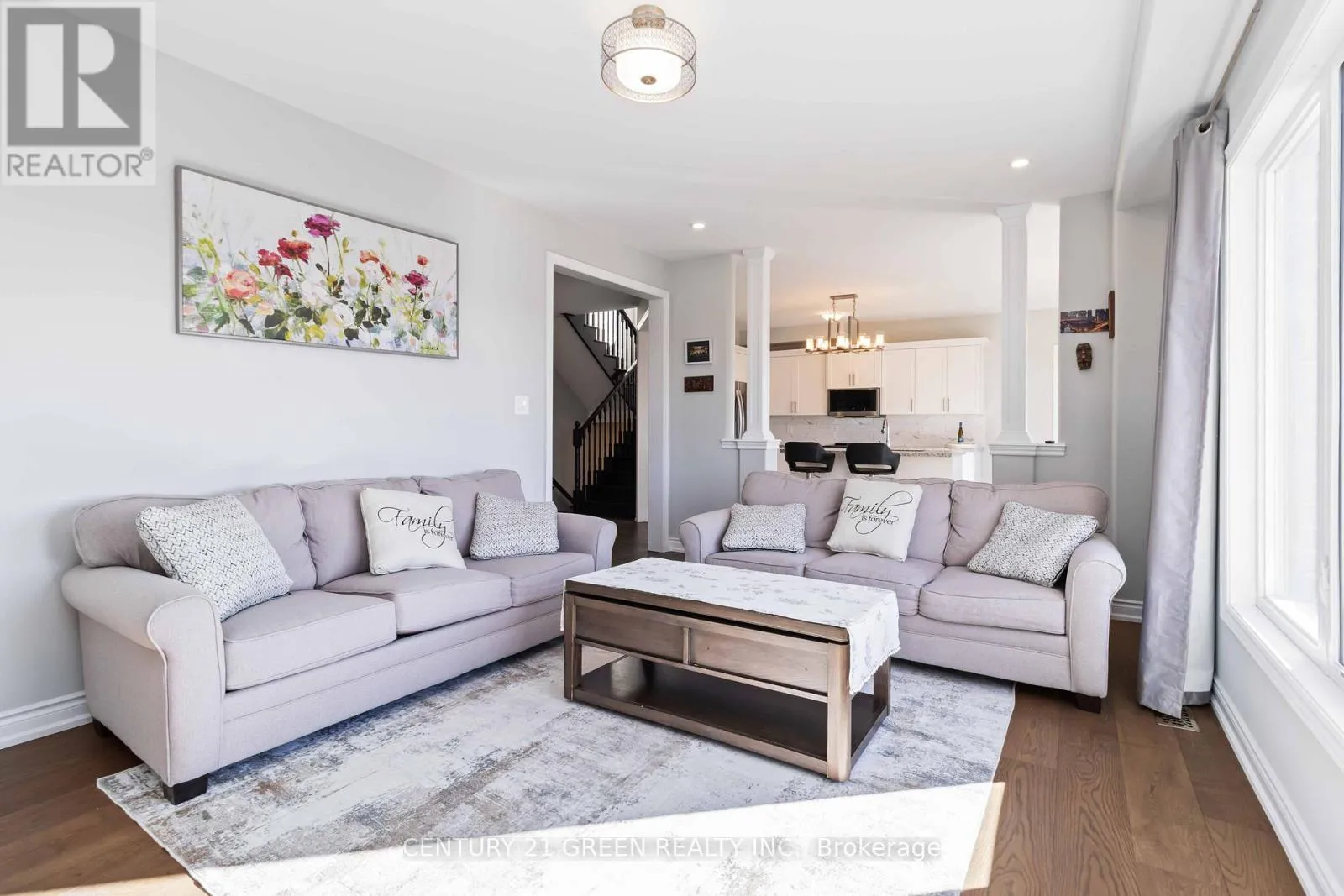 Cross Streets: Monarch Dr / Sierra Dr. ** Directions: Stone Ridge Blvd to Orion Blvd to Monarch Drive to Sierra Dr. Welcome to this stunning 4-bedroom, 4-washroom Princeton Model by Mancini Homes, offering approximately 2,665 sq. ft. of bright, beautifully designed living space on a premium 50 ft. lot with no sidewalk and a large driveway accommodating up to 4 cars in Orillia's desirable Westridge neighbourhood. The main floor features a welcoming foyer leading to a separate living room and a spacious open-concept family room. Enjoy scenic views of the surrounding landscape from the family room, dining area, and kitchen - filling the home with natural light and creating a calm, inviting atmosphere. The modern kitchen includes a centre island with seating, granite countertops, tile backsplash, and stainless steel appliances, with a dinette that walks out to the deck and fully fenced backyard - perfect for outdoor entertaining. A convenient main-level laundry room and direct access to the two-car garage enhance everyday practicality. Upstairs, the second floor offers four generous bedrooms and three full bathrooms. The primary suite features a walk-in closet and a private ensuite with serene views. Both the primary and second bedrooms capture beautiful landscape vistas, enhancing the home's peaceful ambiance. Bedrooms 2 and 3 share a Jack-and-Jill bath, while Bedroom 4 enjoys its own dedicated full bath. The unfinished basement offers excellent potential for future customization - ideal for additional living space, a home gym, or an in-law suite. Located just minutes from major highways, shopping, schools, and recreation, this is a rare opportunity to own a spacious, stylish, and income-generating home in one of Orillia's most desirable Westridge community. Book your showing today. (id:27476)
