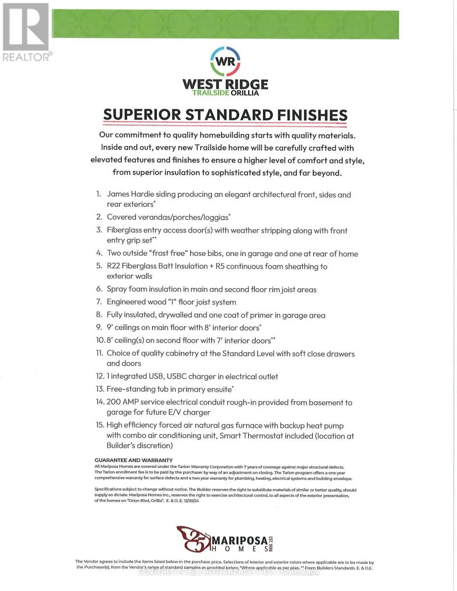 Cross Streets: Bass Lake Sideroad and Orion Blvd. ** Directions: Hwy 11 N to Hwy 12 W to Atlantis Dr. Right on Bass Lake Sr, House on the left at the corner of Bass Lake Sr and Orion Blvd. The BEST Christmas present ever!!! Stunning BRAND New Home in Orillia's popular West Ridge. Convenient to schools, shopping, parks, trails, and highways this lovely home can be yours in time for the holidays. Situated on a premium level corner lot, the stone and Hardie board exterior is accented by the tastefully landscaped perennial gardens, trees, an evergreen hedge, and an inground sprinkler system for easy maintenance. Inside you'll find over 2500 sq ft of luxury living space featuring wide plank engineered hardwood flooring throughout. There's plenty of elbow room for family and friends in this elegant 4 bedroom 2 1/2 bathroom home. The open concept floor plan is perfect for gatherings with a 9' island in the heart of the home and upgraded cabinetry with quartz countertop and backsplash. The spacious dining area features a walk out to a 10' x 31' covered loggia designed for seamless indoor outdoor living. Upstairs the king size primary bedroom offers 2 closets and a luxurious primary ensuite with stand alone soaker tub and walk in shower. 3 additional spacious bedrooms and laundry room with built in cabinetry complete the second floor. The unfinished basement offers additional future living space, rough in for an another bathroom, and a spacious cold storage room. Quality construction and attention to detail are evident in this beautiful home. Come see for yourself!! (id:27476)