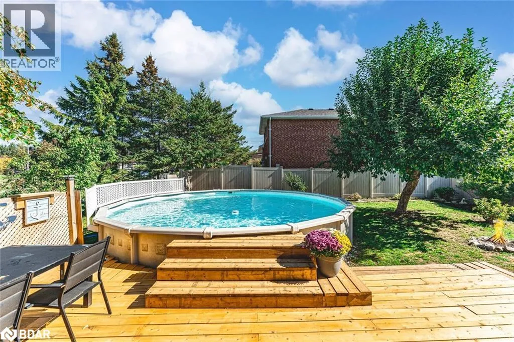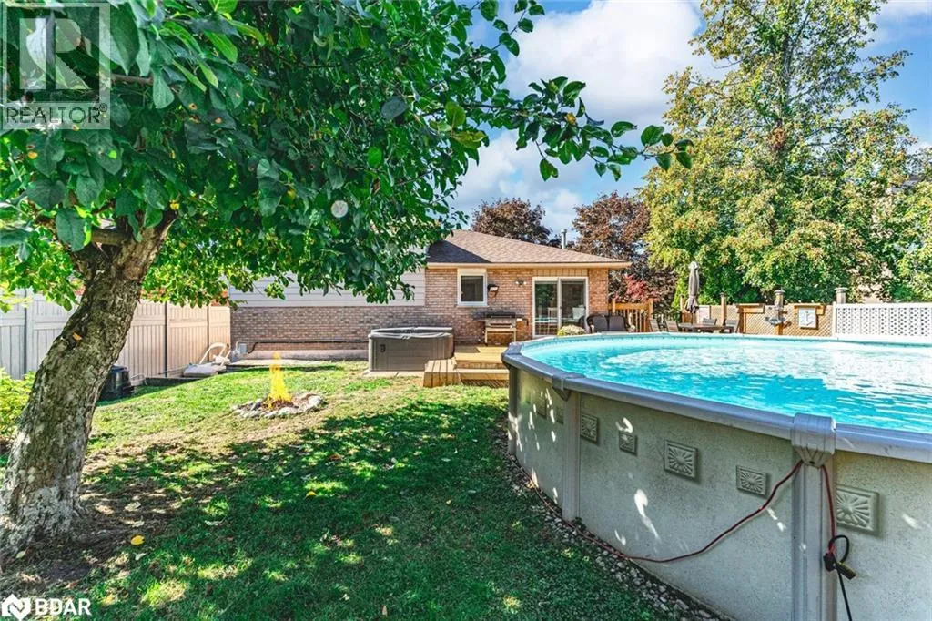 Coldwater Rd W/Collegiate Dr/Lewis Dr/Johnson St/Carmichael Ct UPDATED RAISED BUNGALOW ON A QUIET CUL-DE-SAC WITH A BACKYARD RETREAT FEATURING A HEATED POOL & HOT TUB! Set on a quiet cul-de-sac, this inviting raised bungalow at 2 Carmichael Court is within walking distance to Franklin Carmichael Park, playgrounds, trails, Orillia S.S, Samuel-De-Champlain C.E.S and Orchard Park P.S, with golf, shopping, dining and quick highway access just a short drive away. The fully fenced backyard with gates on both sides is a true retreat, showcasing a large heated above-ground pool with a 4.5 ft depth and updated pump, a hot tub with pump replaced in 2025, a newly built deck with a gas BBQ hookup, and a backdrop of lawn, gardens and lush greenery. The updated kitchen features espresso cabinetry, a white subway tile backsplash, a gas stove, under-cabinet lighting, tile flooring and a newer dishwasher, opening to the dining area with crown moulding and a walkout to the back deck, while the spacious living room at the front of the home is filled with natural light from a large window. Upstairs are three well-sized bedrooms, including a primary with newer carpet, while the lower level offers a comfortable rec room, full bathroom, and abundant natural light through oversized above-ground windows. Improvements include central air installed in 2025, and updated light fixtures throughout. From backyard pool parties to quiet evenings on the deck, discover the next chapter of your story at this #HomeToStay. (id:27476)
