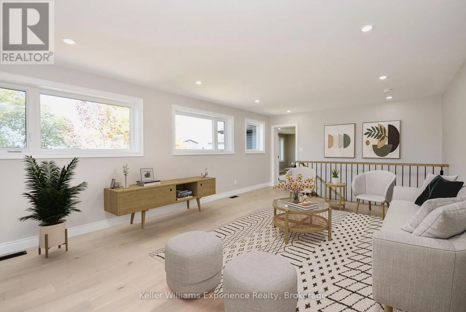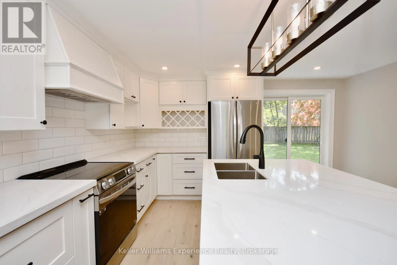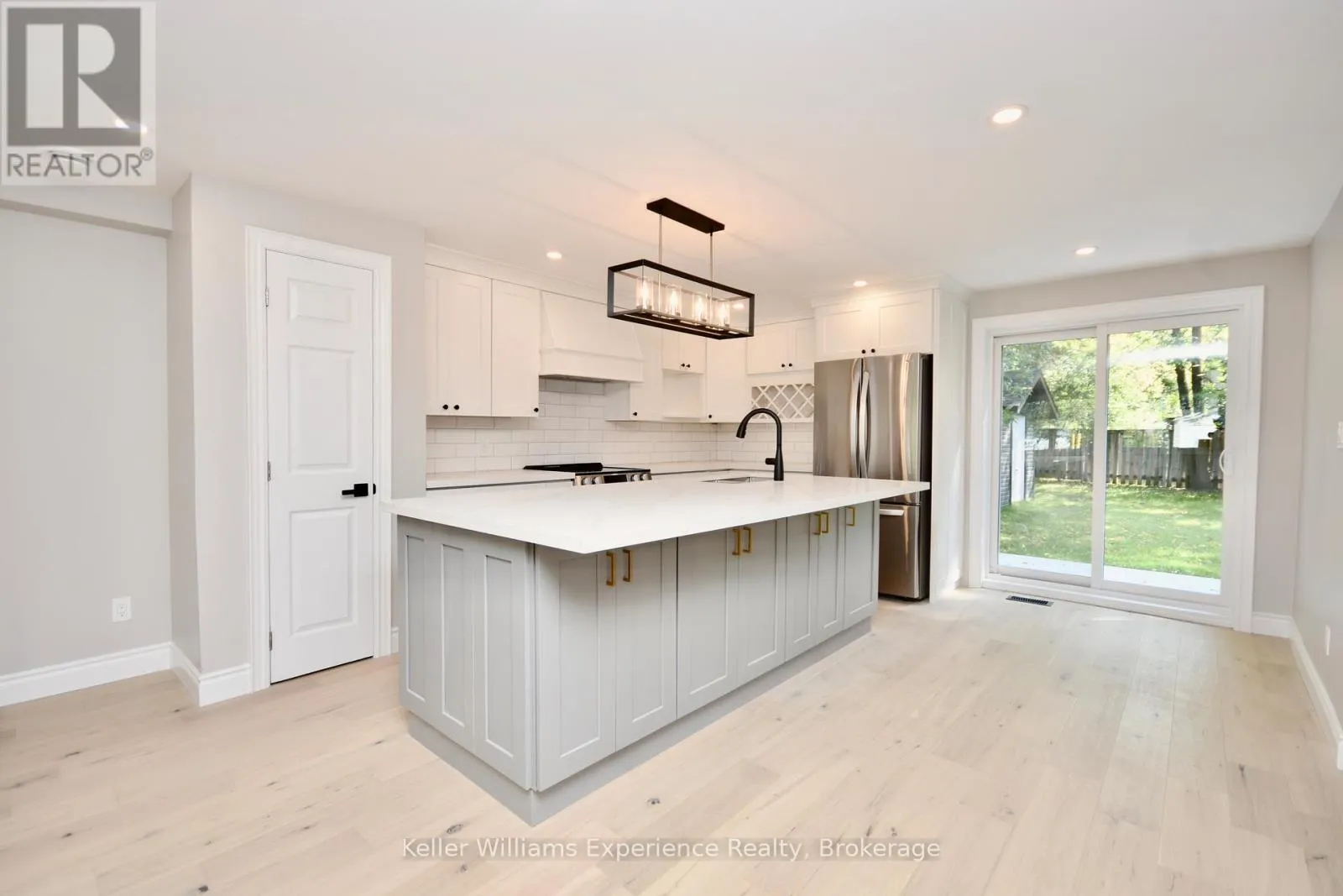 Cross Streets: Cedar Island & Elgin. ** Directions: Front to Elgin to Cedar Island Sign on. Stunning Fully Renovated Home Steps from Historic Downtown Orillia! Welcome to this beautifully remodeled home, perfectly located just moments from Orillia's charming historic downtown, scenic trails, vibrant restaurants, boutique shops, and beaches. This property offers the ideal blend of luxury, location, and lifestyle. Step inside to discover a chef-inspired gourmet kitchen featuring newer stainless steel appliances, a spacious center island, and a walkout to a private, fully fenced back yard perfect for relaxing or entertaining. The open-concept layout is enhanced by engineered hardwood floors throughout and large windows that flood the home with natural sunlight. The main level offers convenient features, including a laundry room and direct access to the double-car garage. The elegant primary suite boasts a walk-in closet and a luxurious 4-piece ensuite bath. Upstairs, a bright and airy family room showcases lake views through oversized windows. Extensively upgraded in 2023 with new windows, roof, furnace, and A/C this home is move-in ready and maintenance-free for years to come. Don't miss your chance to own this exceptional home that combines modern finishes, thoughtful design, and an unbeatable location! (id:27476)