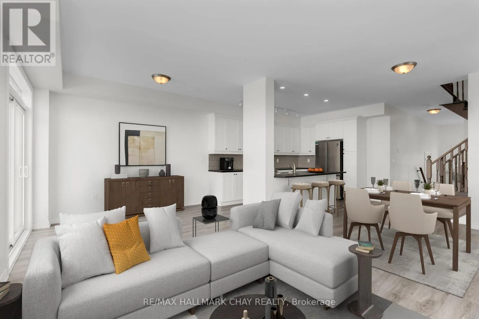 Cross Streets: James St E. ** Directions: James St E to Churchlea Mews. Move-In Ready, Immediate possession available. This newer stunning 3-bedroom end unit townhouse, built in 2021, offers a bright and open main floor plan featuring 9ft ceilings and ample lighting throughout. The spacious living room offers a gas fireplace and walkout to the backyard. Dine-in kitchen includes stainless steel appliances and pot lights. The upper level offers three generously sized bedrooms, including a primary suite with a walk-in closet and a luxurious ensuite bathroom with soaker tub. The convenience of upstairs laundry adds to the ease of living in this exceptional home. Additional features include a generous-sized 1-car garage with inside entry, an HRV ventilation system for optimal air quality, and a water softener. Unspoiled unfinished basement with rough-in bath awaiting your touches. Air conditioning and all appliances included. Located on a quiet, private street, this property is just minutes from downtown amenities, restaurants, and walking distance to Tudhope Park. Enjoy easy access to everything Orillia has to offer! (id:27476)