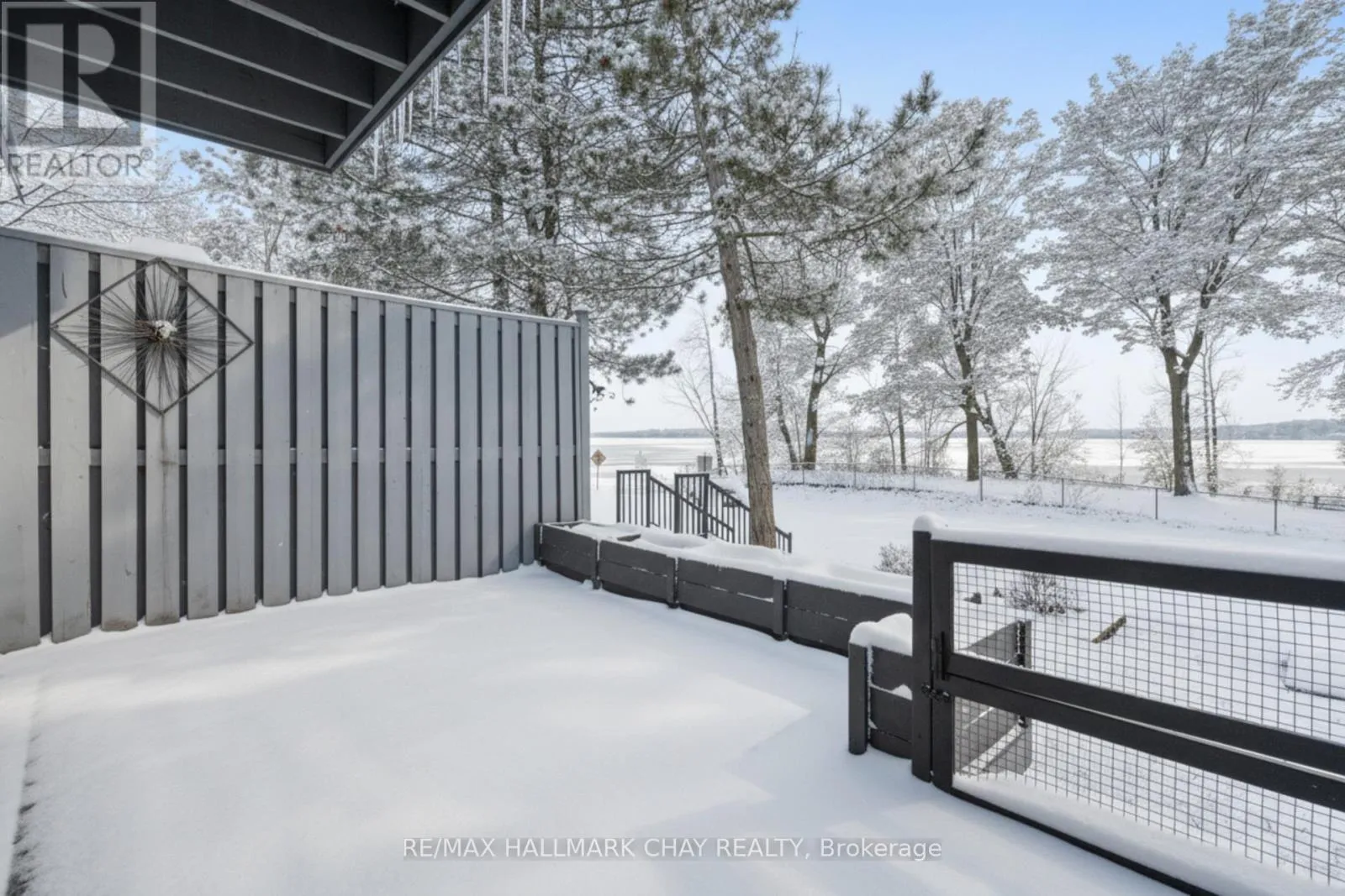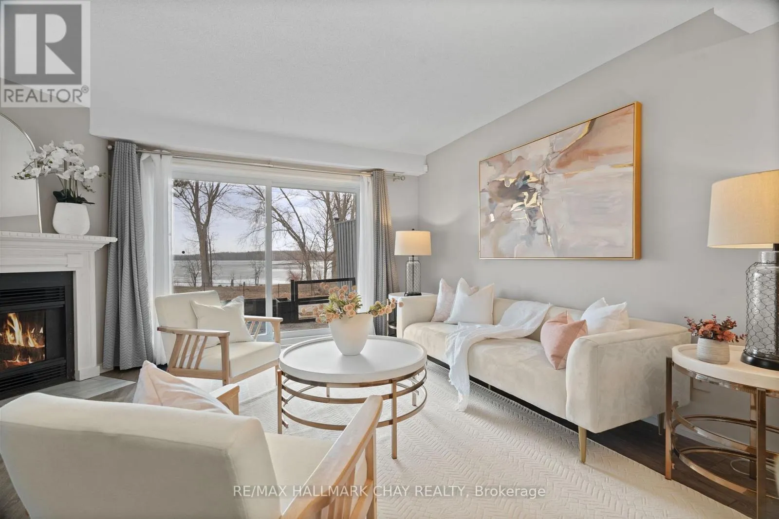 West Street S & Olive Crescent Welcome to this beautifully upgraded end-unit waterfront townhouse condo-a perfect retreat for professionals, young couples, downsizers, or those seeking a peaceful getaway. With views of Lake Simcoe, over $100,000 in thoughtful renovations, and a low-maintenance lifestyle, this move-in-ready home is as serene as it is sophisticated.Step inside to a spacious foyer with custom closet organizers, setting the tone for the clean and well-designed layout throughout. The chef-inspired kitchen was fully remodeled in 2017 and features granite countertops, sleek ceramic flooring, stainless steel appliances, and a functional breakfast bar with bonus storageideal for both everyday meals and entertaining.The open-concept living and dining space is equally impressive, with newer vinyl flooring, a cozy wood-burning fireplace, and sliding doors that lead to your private deck. Out back, enjoy peaceful mornings or stunning sunset views under your electric awning, surrounded by raised flower beds and a secure gated enclosure for added privacy.Upstairs, both bedrooms have been enhanced with new laminate flooring, and the renovated main bathroom brings spa-like tranquility to daily routines. The primary suite offers an electric fireplace, in-suite laundry, a fully renovated ensuite bath, and a private balcony with western lake views-imagine waking up to the water every morning.The fully finished lower level provides even more space to unwind, with a large rec room finished with hardwood floors, a third full 3-piece bathroom, and extensive built-in cabinetry for smart storage solutions. The attached garage includes a generous mezzanine loft, perfect for seasonal or hobby storage.Set in an exclusive 9-unit waterfront complex, this home is directly across from Kitchener Park25 acres of green space, tennis courts, a dog park, and scenic walking trails. You'll also love being close to marinas, shopping, downtown Orillia, and Casino Rama. (id:27476)