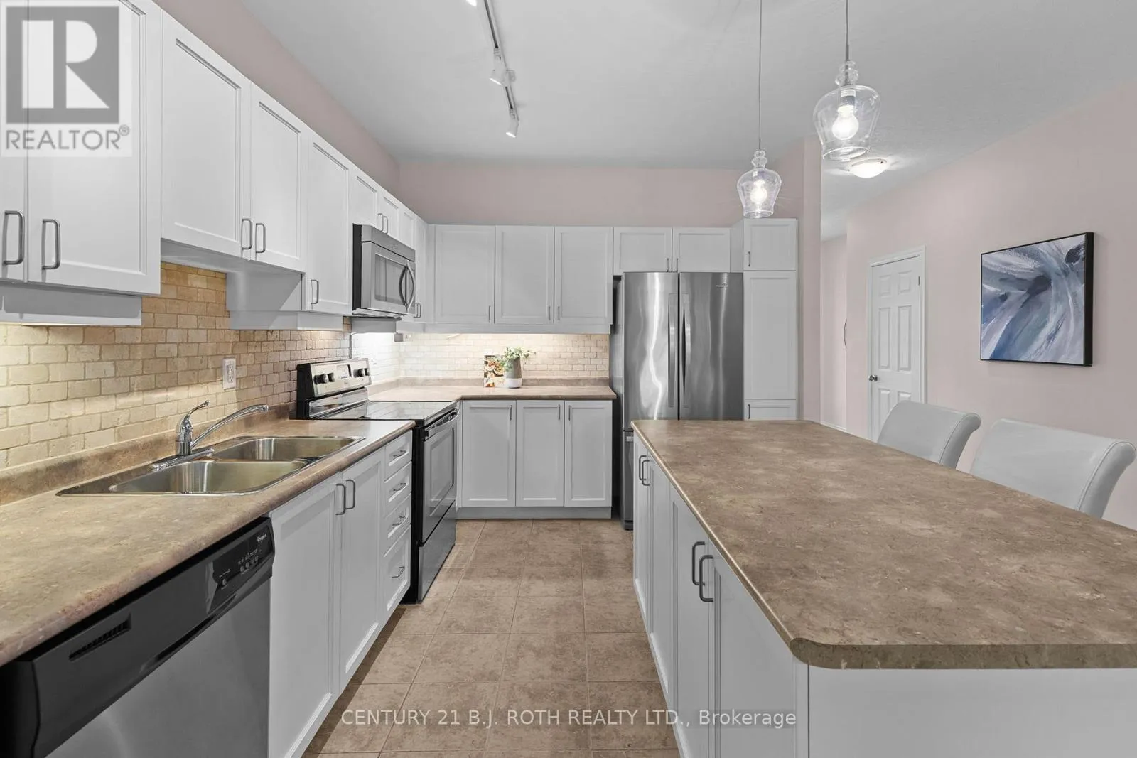 SUNDIAL DR / CANTERBURY CIRCLE Welcome to 8 Canterbury Circle, formerly the builders model home, showcasing premium finishes and thoughtful upgrades throughout. Nestled in a charming enclave of well-kept bungalows in Orillia's desirable North Ward, this quiet street is lined with homeowners who take pride in their properties, creating a warm and welcoming community. Designed with mature buyers in mind, the spacious layout offers the ease of single-level living, including main-floor laundry, without sacrificing style or comfort. The main level features 2 bedrooms, 2 full bathrooms, and an open-concept kitchen with a central island that flows seamlessly into the dining and living areas. Step through the living room to a large deck, perfect for morning coffee or evening barbecues. Quality interior finishes include 9' ceilings, upgraded trim and door casings, laminate flooring, timeless white shaker cabinetry, stone backsplash, under-cabinet lighting, stainless steel appliances, designer light fixtures, a cozy gas fireplace, a front loading laundry pair, and a tiled glass-enclosed shower in the primary ensuite. The fully finished lower level adds versatility with a large bedroom, full bathroom, and a spacious recreation room. Lower patio sliders are equipped with security shutters for added peace of mind. Outside, enjoy an oversized single-car garage and driveway, stone front steps with railings, and a private backyard retreat. Whether you're considering retirement or downsizing, this home offers the perfect blend of comfort, community, and convenience. ** This is a linked property.** (id:27476)