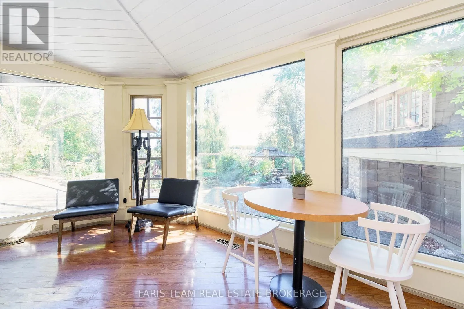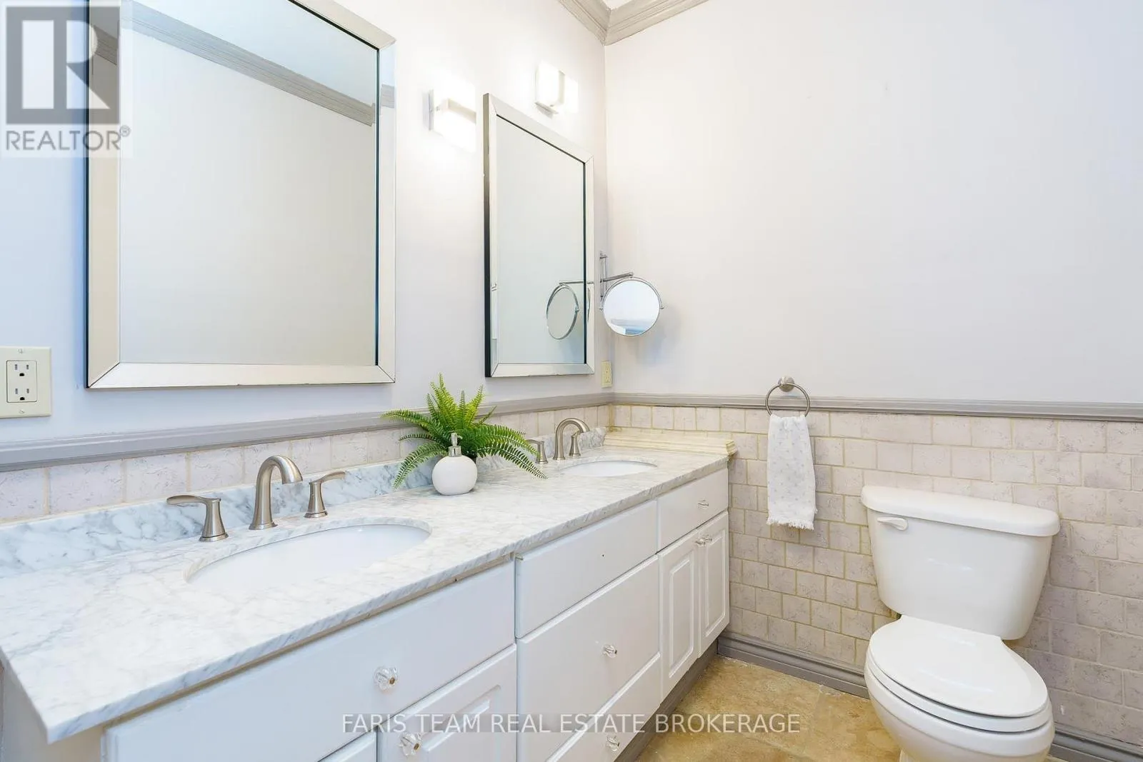 Forest Ave N/Brewery Ln Top 5 Reasons You Will Love This Home: 1) Perfectly positioned along the scenic shores of Old Brewery Bay, this charming 1.5-storey home showcases nearly 98' of pristine waterfront, creating a truly special retreat where you can relax, unwind, and enjoy life by the water's edge 2) Enjoy a warm and inviting eat-in kitchen featuring a centre island and maple cabinetry, flowing effortlessly into a formal dining room where hardwood floors and timeless charm set the stage for memorable gatherings 3) Boasting more than 4,800 square feet of well-planned living space, this home provides ample room for everyone to settle in, relax, and enjoy a perfect balance of comfort and togetherness 4) The property's expansive 4-car garage, enhanced by an upper-level loft, presents endless opportunities for a studio, workshop, or tailored retreat 5) Nestled within beautifully manicured grounds in a tranquil community, this property radiates the quiet charm of waterfront living, where every moment feels like a getaway. 4,980 fin.sq.ft. (id:27476)