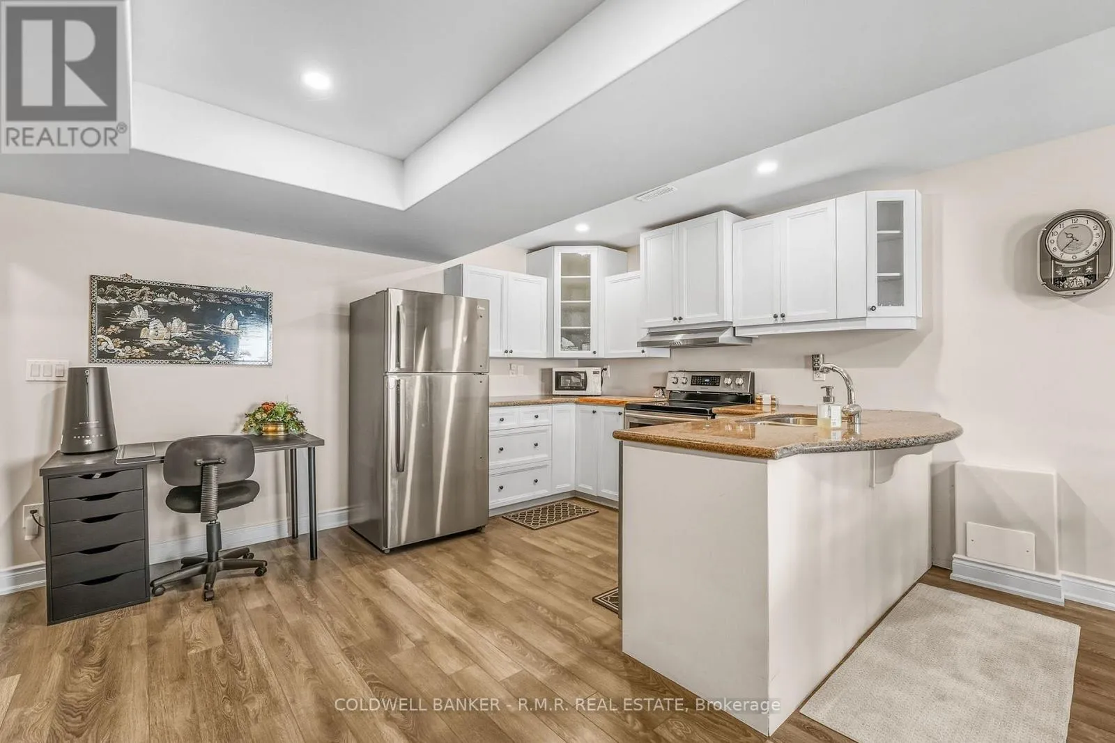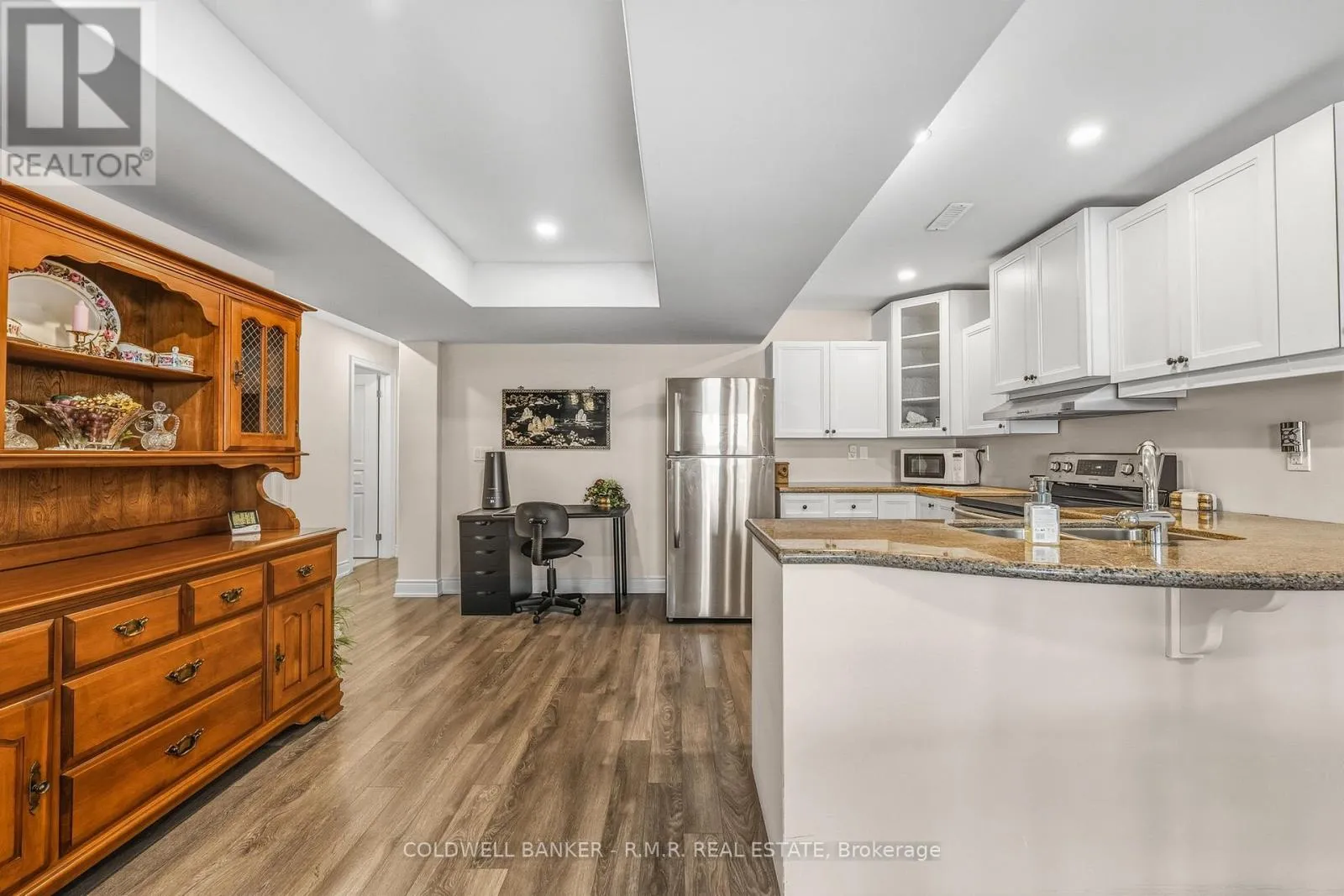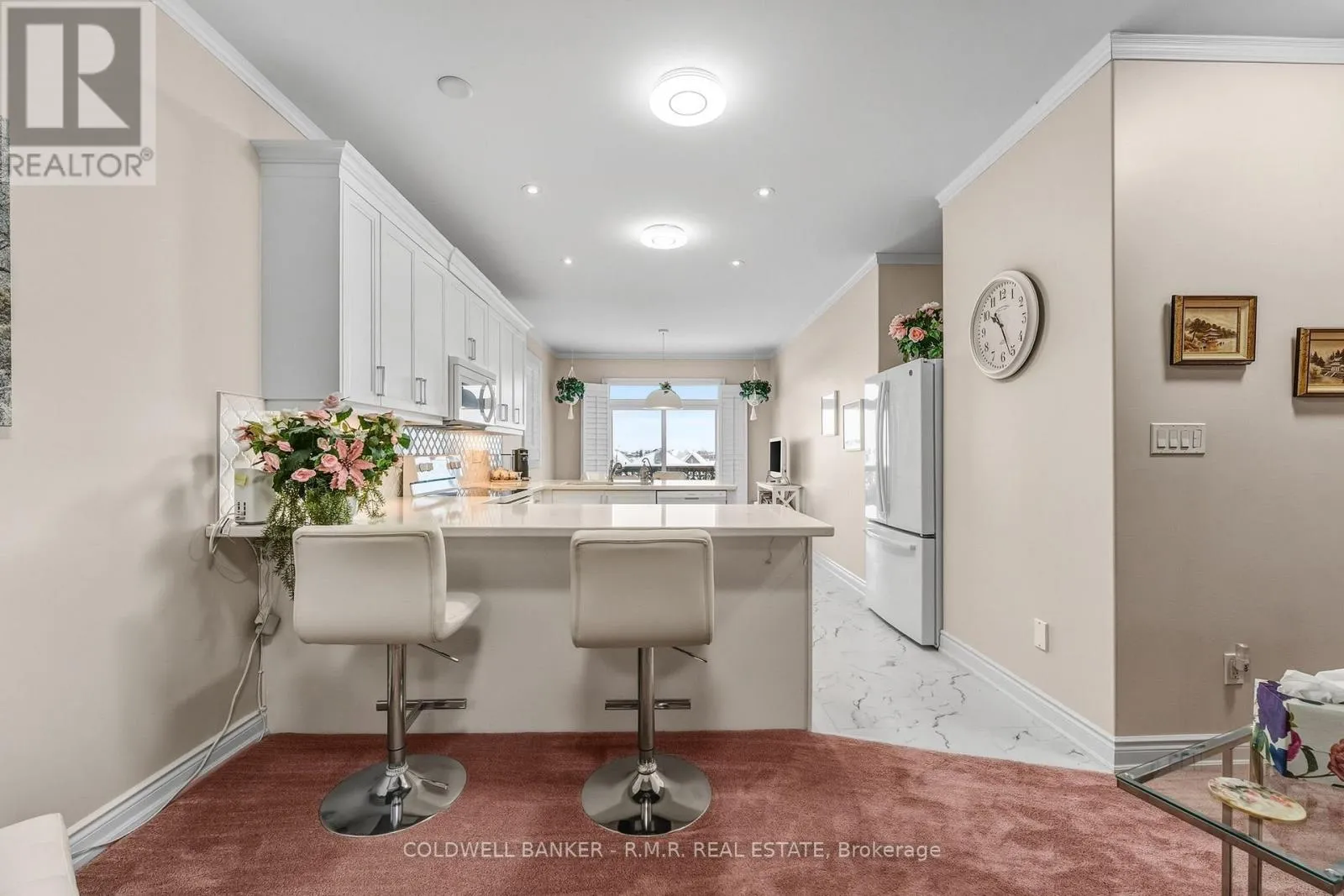 Cross Streets: West Ridge & Monarch Dr. ** Directions: West Ridge to Monarch Drive. Welcome to this absolutely stunning Dreamland home - A 3+1 bedroom, 3.5 bathroom bungalow nestled on one of Orillia's most desirable streets, offering stunning city views. Located in the highly sought-after West Ridge community, this exceptional property is just steps to shopping, restaurants, schools, parks, and everyday amenities, with quick and convenient access to Highways 11 and 400. Features an attached 2 car garage, and thoughtfully landscaped front and rear yards enhance the home's curb appeal, while the fully fenced backyard provides privacy and the perfect setting for relaxing or entertaining. Inside, this meticulously maintained residence features soaring 9-foot ceilings, an abundance of natural light, and a functional open-concept layout. **Plush carpeting throughout can be easily removed to reveal beautiful hardwood flooring underneath!! The upgraded kitchen is complete with a double breakfast bar, ideal for casual dining and hosting, while the private primary suite and main-floor laundry add everyday comfort and convenience. California shutters and zebra blinds on windows **The beautifully finished lower level offers outstanding versatility with a second kitchen featuring granite countertops, a very spacious additional bedroom, a gas fireplace, a large second laundry room, a closed off unfinished area for storage and a walkout to a covered patio and private backyard - making it ideal for extended family, in-law accommodation, or potential rental income. **A truly exceptional home in a prime location - this is an absolute must-see!! (id:27476)
