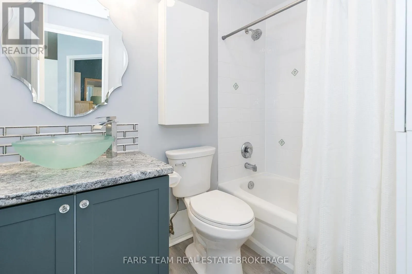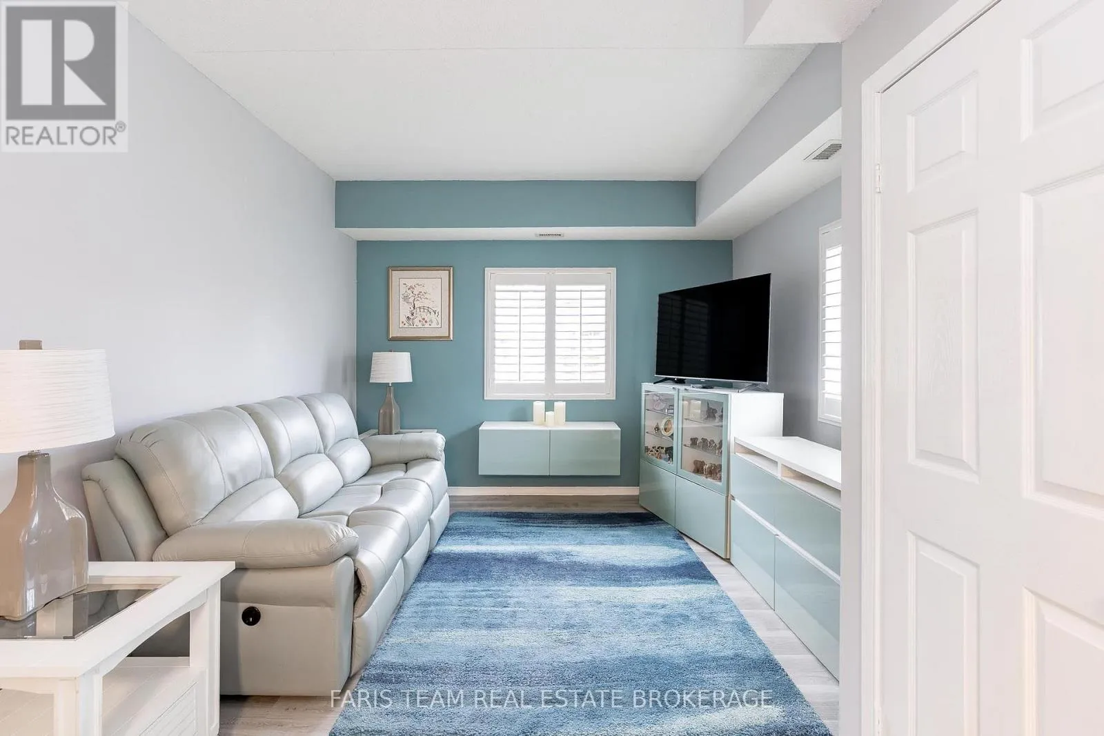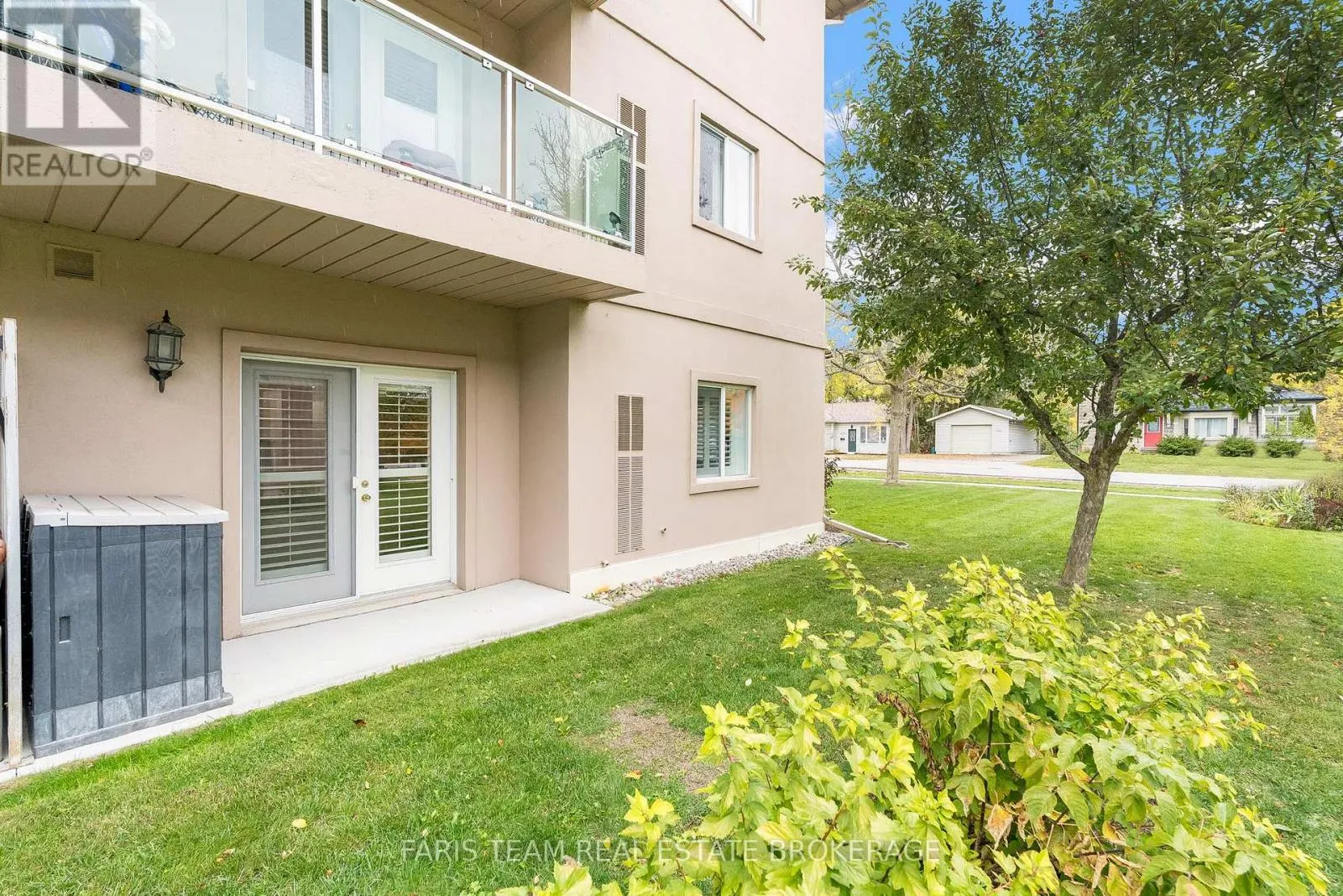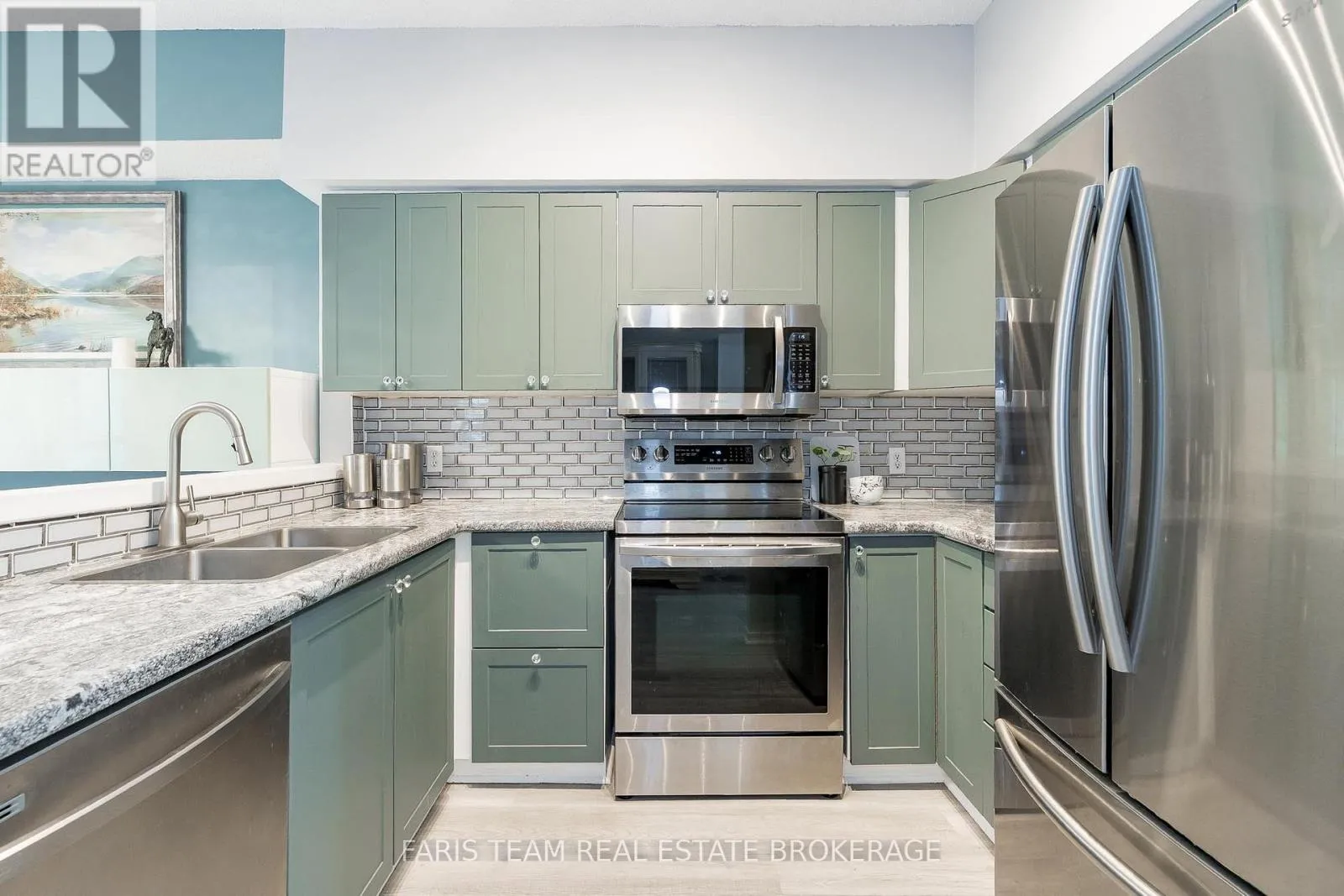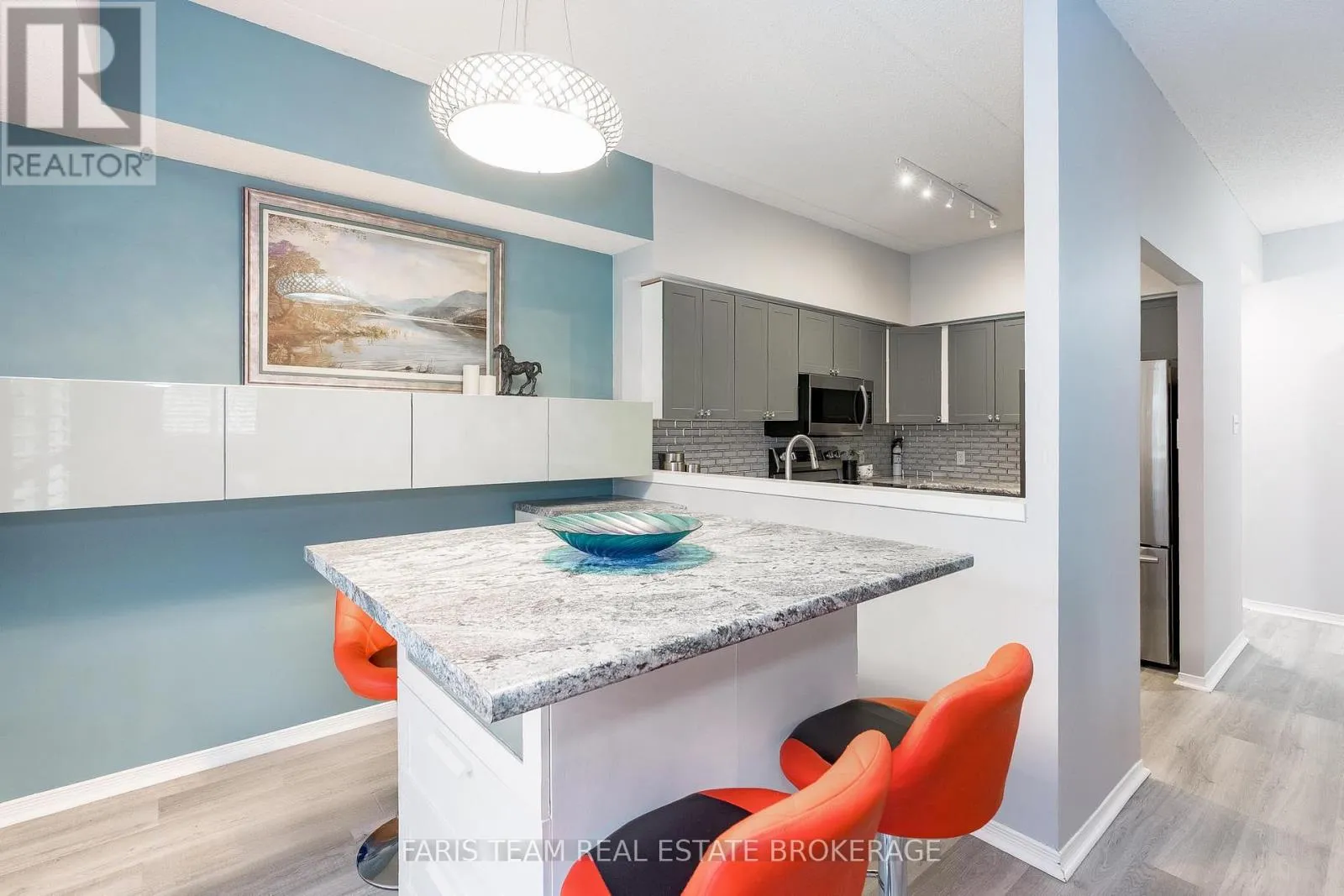 Gill St/Bond St Top 5 Reasons You Will Love This Condo: 1) This stylish ground-level end unit presents modern comfort and exceptional convenience with no stairs, no hallway noise, and a private patio for effortless indoor-outdoor living 2) Soaring ceilings and thoughtful updates throughout, including new lighting, flooring, and a backsplash, creating a bright, contemporary atmosphere that feels both functional and inviting 3) Enjoy the ease of in-suite laundry, dedicated parking, and an innovative layout designed to maximize every square foot 4) Perfectly situated just steps from Lake Couchiching, Lake Simcoe, downtown Orillia, and a variety of restaurants and shops, everything you need is right at your doorstep 5) With quick access to Highway 11, commuting is effortless, whether you're heading to work, the cottage, or beyond. 817 fin.sq.ft. (id:27476)