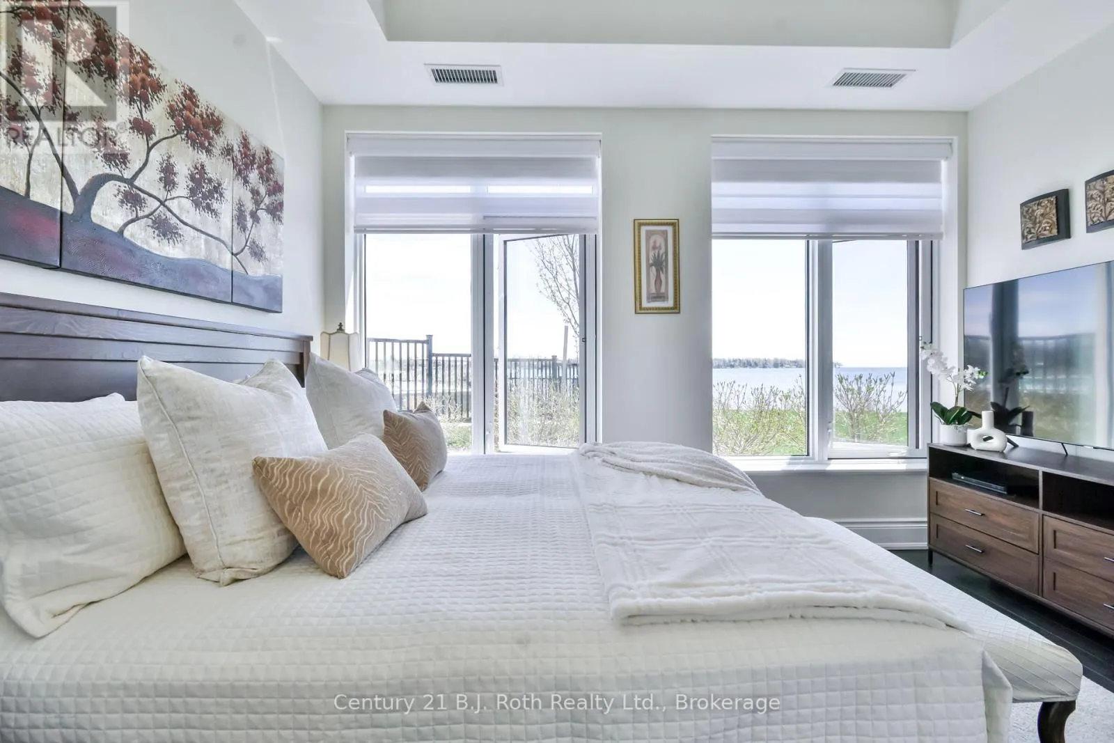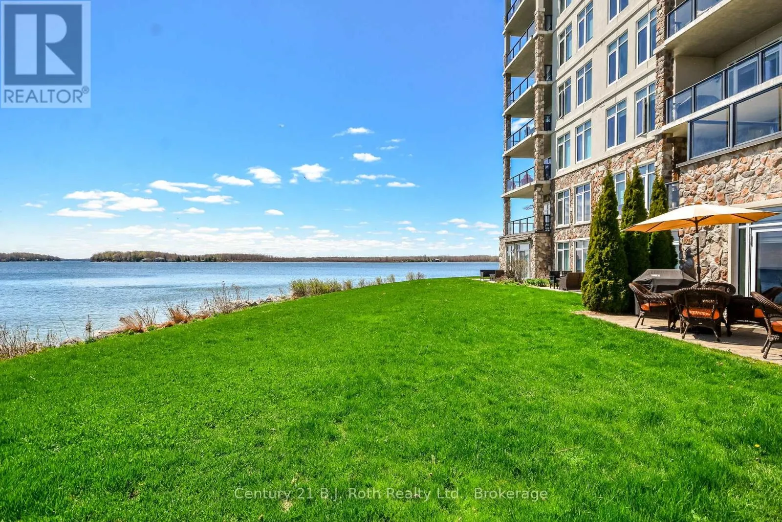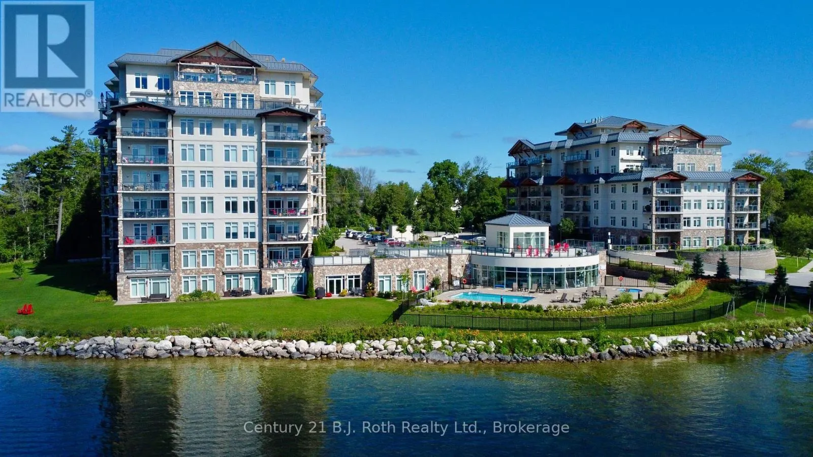 Atherley Road & Orchard Point Rd WATERFRONT WALKOUT CONDO WITH PANORAMIC VIEWS, JUST STEPS TO THE WATER. Welcome to waterfront lifestyle at its finest. This ground floor, elegantly appointed 1,262 sq ft condo is perfectly positioned, offering spectacular southwest views from your principal rooms and your 166 sq ft ultra private terrace for year-round enjoyment on Lake Simcoe. Step inside to find a bright large open concept layout with soaring 10-foot ceilings, a high end gas fireplace, and wall to wall windows with motorized blinds, patio doors with phantom screens. The spacious great room flows seamlessly into an upgraded chefs kitchen, featuring premium appliances, elegant finishes, and ample space, perfect for entertaining or simply enjoying the view while you cook. The grand primary bedroom offers the ultimate retreat, complete with its own spa inspired bathroom, and a second full bathroom includes an oversized shower. The generous den provides flexible space for a second bedroom, home office, creative studio or a guest room. Step out onto your oversized, ultra-private terrace and take in the stunning sunsets or your morning coffee with nothing but lake views and fresh air. This condo also comes with the added value of two underground parking spaces, just mere steps away and full access to exceptional resort-style amenities: a sparkling outdoor pool, hot tub, fitness centre, sauna, billiards, table tennis, rooftop lounge, library, hobby room, and elegant party space with BBQs. Hosting overnight guests? A private guest suite is available too. With beautifully landscaped grounds, a quiet shoreline, and dock rentals just steps away, this is lakeside living at its most refined. Located just 10 minutes from downtown Orillia and Casino Rama, and only 1 hour and 15 minutes from the GTA, this property is perfect as a full-time residence, summer home, or weekend escape. Come experience a lifestyle where every day feels like a getaway. (id:27476)
