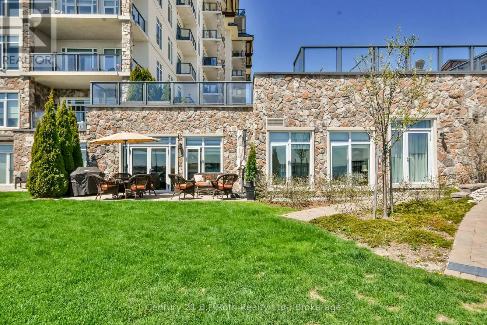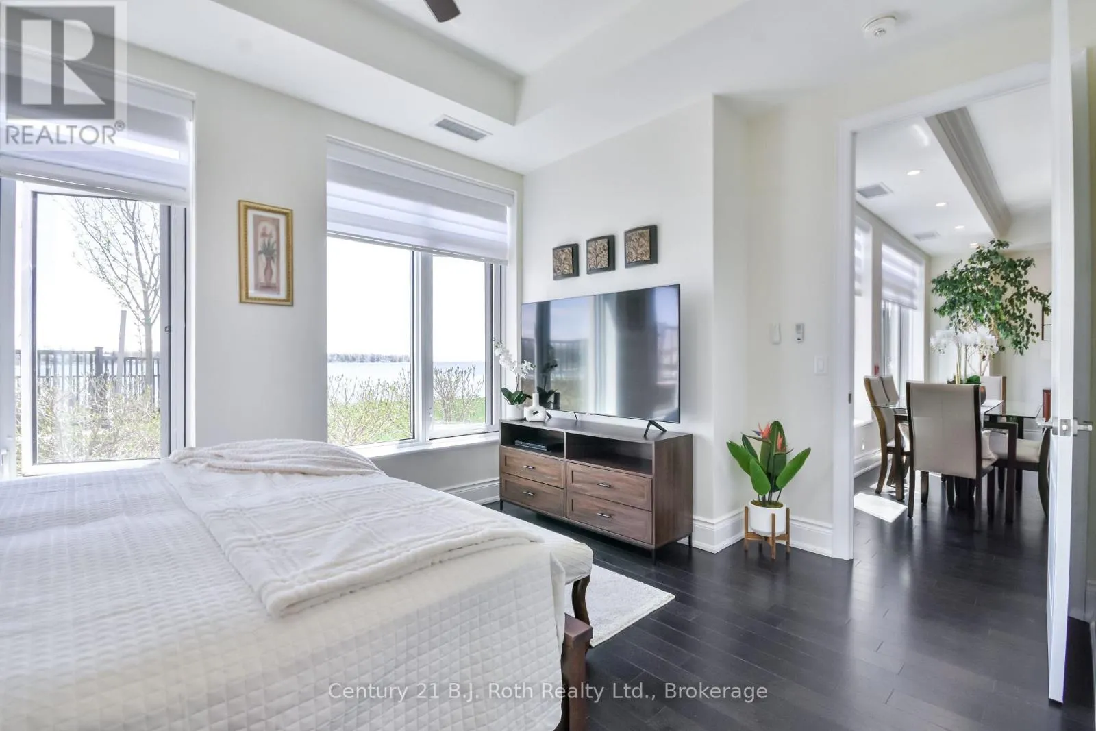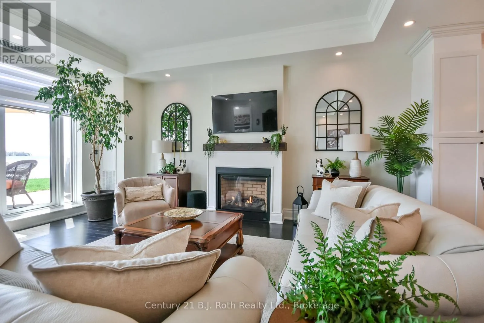 Atherley Road & Orchard Point Rd WATERFRONT WALKOUT CONDO WITH PANORAMIC VIEWS, JUST STEPS TO THE WATER. Welcome to waterfront lifestyle at its finest. This ground floor, elegantly appointed 1,262 sq ft condo is perfectly positioned, offering spectacular southwest views from your principal rooms and your 166 sq ft ultra private terrace for year-round enjoyment on Lake Simcoe. Step inside to find a bright large open concept layout with soaring 10-foot ceilings, a high end gas fireplace, and wall to wall windows with motorized blinds, patio doors with phantom screens. The spacious great room flows seamlessly into an upgraded chefs kitchen, featuring premium appliances, elegant finishes, and ample space, perfect for entertaining or simply enjoying the view while you cook. The grand primary bedroom offers the ultimate retreat, complete with its own spa inspired bathroom, and a second full bathroom includes an oversized shower. The generous den provides flexible space for a second bedroom, home office, creative studio or a guest room. Step out onto your oversized, ultra-private terrace and take in the stunning sunsets or your morning coffee with nothing but lake views and fresh air. This condo also comes with the added value of two underground parking spaces, just mere steps away and full access to exceptional resort-style amenities: a sparkling outdoor pool, hot tub, fitness centre, sauna, billiards, table tennis, rooftop lounge, library, hobby room, and elegant party space with BBQs. Hosting overnight guests? A private guest suite is available too. With beautifully landscaped grounds, a quiet shoreline, and dock rentals just steps away, this is lakeside living at its most refined. Located just 10 minutes from downtown Orillia and Casino Rama, and only 1 hour and 15 minutes from the GTA, this property is perfect as a full-time residence, summer home, or weekend escape. Come experience a lifestyle where every day feels like a getaway. (id:27476)
