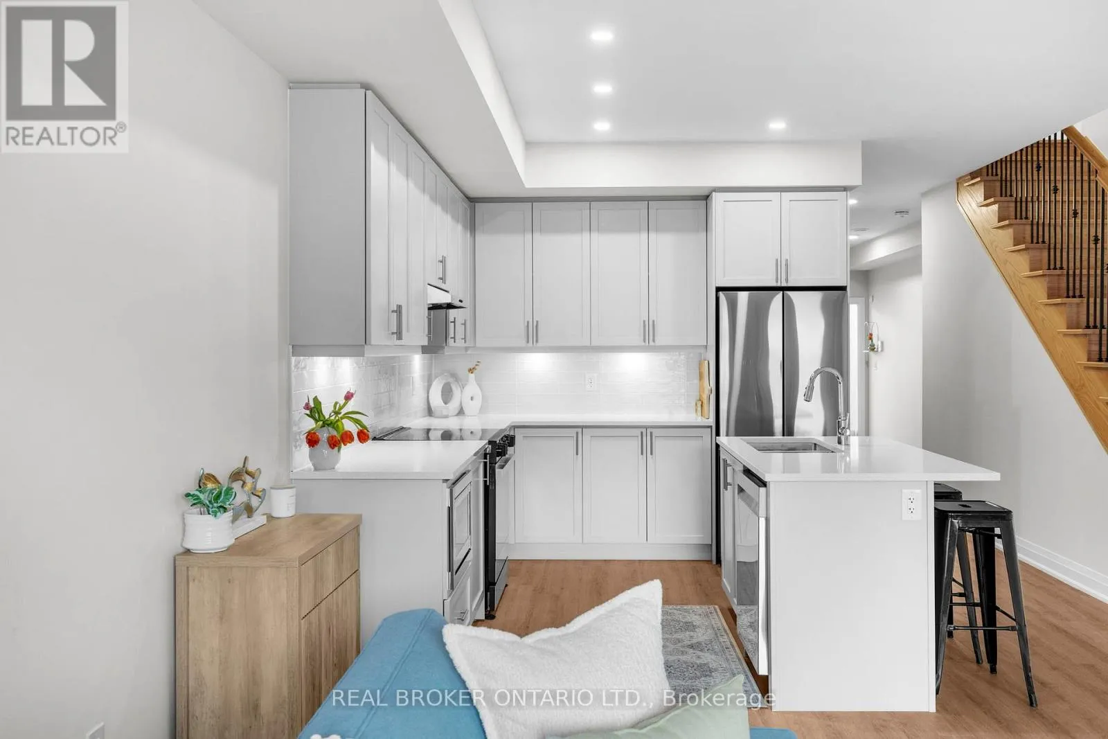 Cross Streets: Tecumseth Street & Sunshine Lane. ** Directions: Coldwater Street, Left on West Street N, Right on Tecumseth Street, Right Sunshine Lane. Welcome to 96 Sunshine Lane. This last available 1600+ sq. ft. 2 bedroom 2.5 bathroom townhome is located in the North Phase of the sought-after Sunshine Harbour community, in the heart of downtown Orillia, only steps to Lake Couchiching, Centennial Park, the Marina Orillia Community Centre, and the boutique shops and dining of Mississauga Street. Built by trusted developer FRAM & Slokker, known for creating thoughtfully designed, sustainable communities for decades, this brand-new home reflects family-inspired architecture and modern efficiency. For added confidence, the Tarion New Home Warranty begins at occupancy/closing-not before-providing valuable protection and true peace of mind from the moment you take possession. Constructed above environmental standards, it offers long-term sustainability, energy efficiency, and lower ownership costs. The beautifully maintained community features lush, green landscaping supported by both municipal care and an integrated irrigation system, ensuring a consistently elevated setting year-round. Inside, this thoughtfully designed townhome includes high-end stainless steel appliances and a full washer and dryer package. Both spacious bedrooms feature walk-in closets and private ensuites, while the primary suite offers a private balcony capturing northeast morning sunshine. Durable, high-quality finishes, a paved driveway, and a solid concrete entrance add lasting comfort and convenience. Enjoy an exclusive-use backyard thoughtfully finished with a combination patio and green space, complete with tasteful wooden privacy fencing-perfect for relaxing, entertaining, or enjoying quiet outdoor living. Sunshine Harbour represents the exciting future of Orillia's downtown waterfront. A vibrant, walkable community that continues to grow and evolve and could be your next chapter! (id:27476)