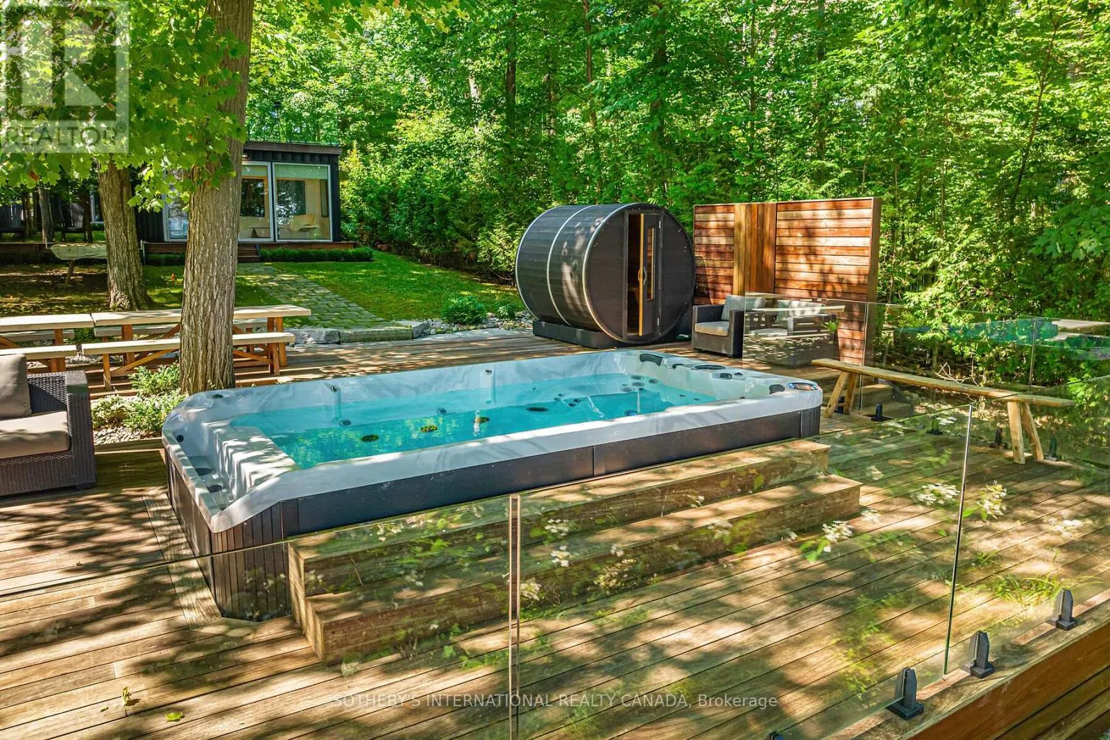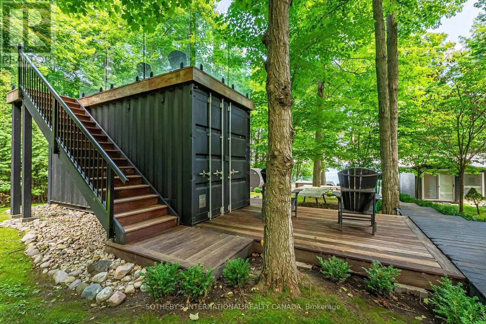 Cross Streets: HWY 12 to Forrest Av to Dock. ** Directions: Access by boat only. 233 ft of waterfront double lot! Join the shipping container lifestyle revolution! Original and updated Lake Simcoe waterfront cottage andboathouse anchor the family compound. Also built over 1.2 acres are three purpose-built luxury shipping containers (one queen bed studio + four bed kidscabin + fitness studio (which could be extra bedroom) combined with two 2-piece bathrooms, shower, laundry room (total 3.5 bath). The property sleeps12 and breaks up into five private areas with its own terraces and landscaping. Everything from outdoor sauna, hot tub, roof decks, firepit, retractable 50 ftboat deck and glamping tent included! $200k invested in 2023 in various upgrades including a brand-new septic system. 600' cedar hedge & 12 ft highwrought iron fencing encloses the property. Let the dogs and kids run free! Perfect Wi-Fi and top of the line security system with multiple cameras. Fullyfurnished (perfect mix of mid-century and contemporary cottage) and move-in ready. All the work has been done for you! Be in total privacy less than 2hours from Toronto. VTB available for qualified buyers. (id:27476)