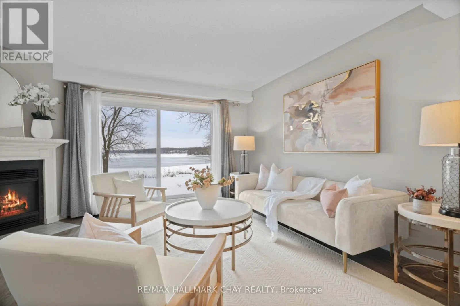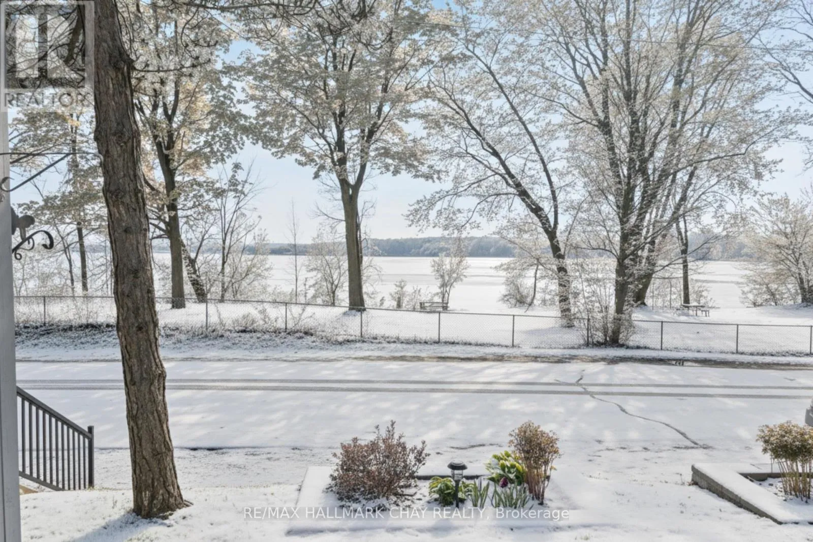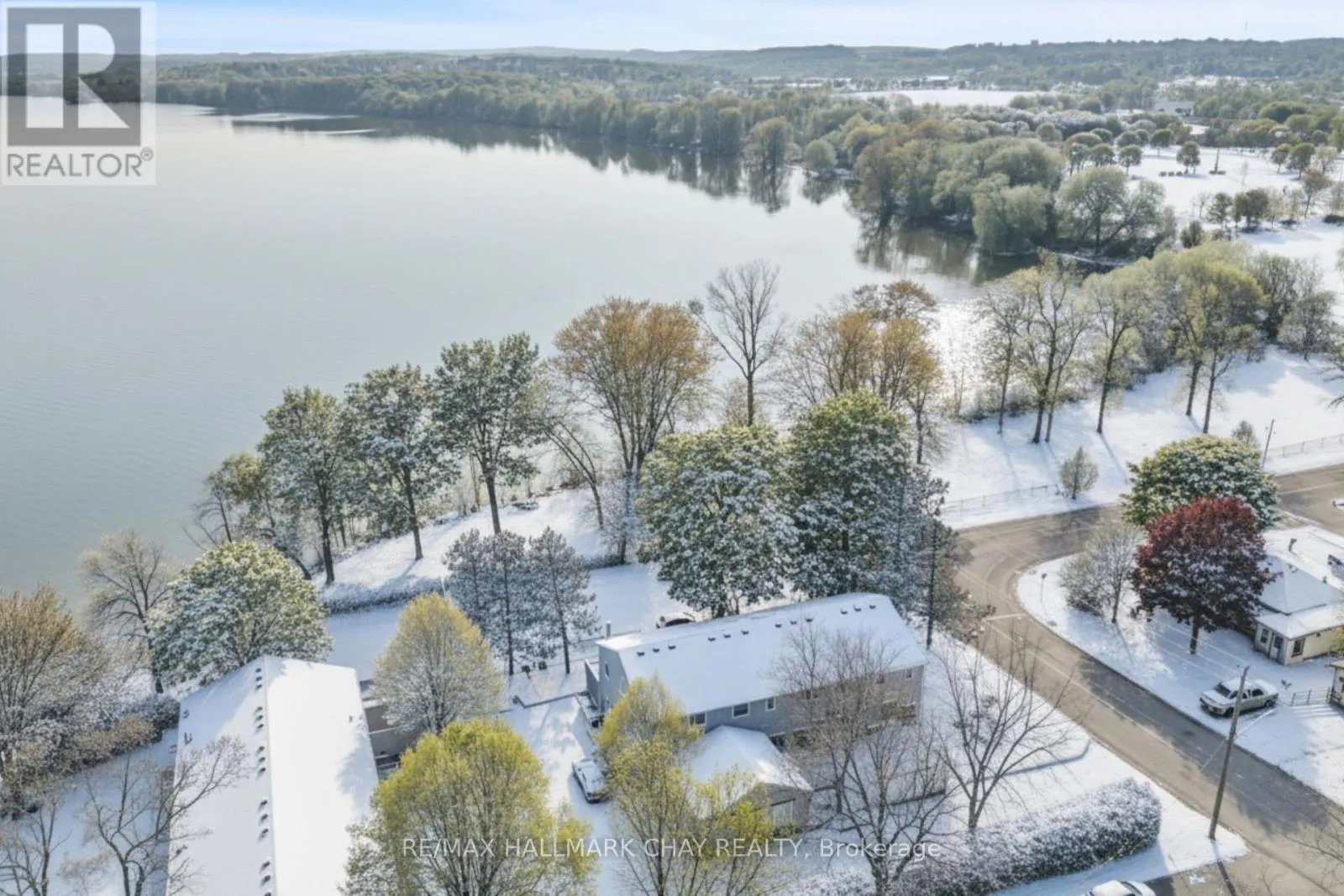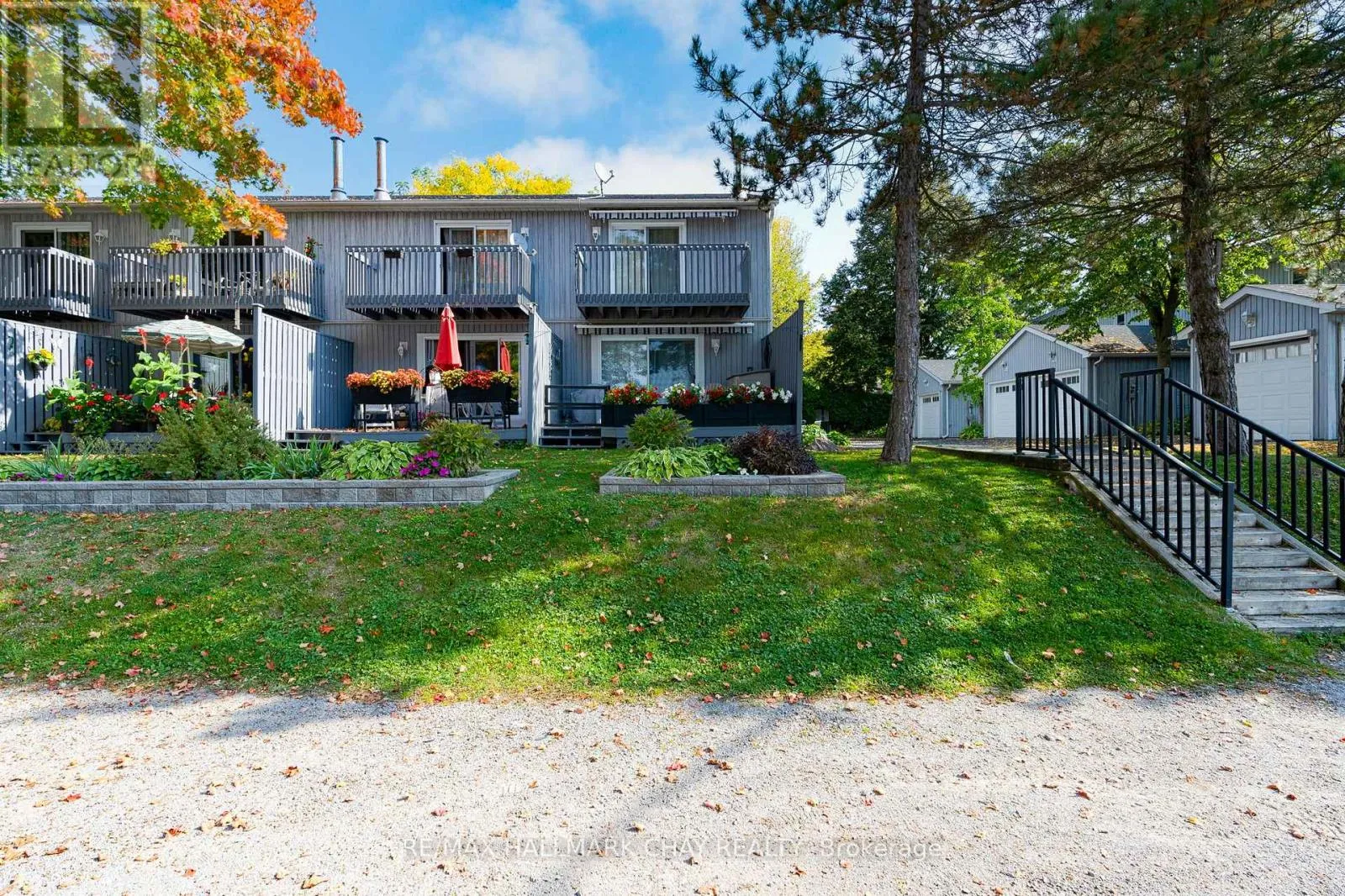West Street S & Olive Crescent Welcome to this beautifully upgraded end-unit townhouse condo with views of Lake Simcoe-a perfect fit for anyone seeking a peaceful, low-maintenance lifestyle. With stunning western views of Lake Simcoe, over $100,000 in thoughtful renovations, and a low-maintenance lifestyle, this move-in-ready home is as serene as it is sophisticated-offering front-row seats to breathtaking sunsets every evening. Step inside to a spacious foyer with custom closet organizers and a well-designed layout throughout. The chef-inspired kitchen, fully renovated in 2017, features granite countertops, ceramic flooring, stainless steel appliances, and a functional breakfast bar with added storage.The open-concept living and dining area includes newer vinyl flooring, a cozy wood-burning fireplace, and sliding doors to your private deck. Enjoy quiet mornings or unwind under the electric awning while taking in sunset views, surrounded by raised flower beds and a secure gated enclosure.Residents enjoy access to a private dock-perfect for launching a paddleboard or kayak and embracing the waterfront lifestyle. Upstairs, both bedrooms offer new laminate flooring, and both bathrooms have been renovated. The primary suite features an electric fireplace, in-suite laundry, a renovated 2pc ensuite, large closet space, and a private balcony with lake views. The fully finished lower level adds even more versatility, with a spacious rec room finished in hardwood, a third full 3-piece bathroom, and extensive built-in cabinetry for smart storage. The attached garage includes a generous mezzanine loft, ideal for seasonal storage or hobbies.Set within an exclusive 9-unit waterfront complex, this home is directly across from Kitchener Park-25 acres of green space, tennis courts, a dog park, and scenic walking trails. You're also just minutes from marinas, shopping, downtown Orillia, and Casino Rama. (id:27476)