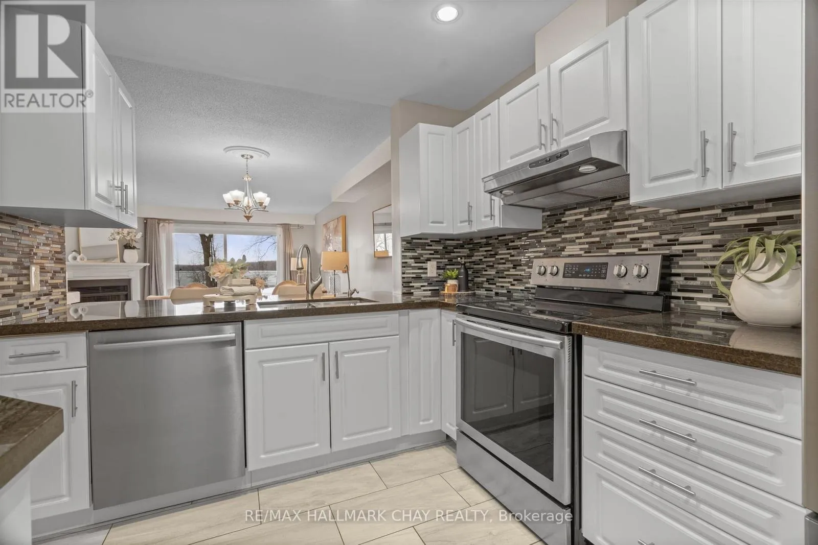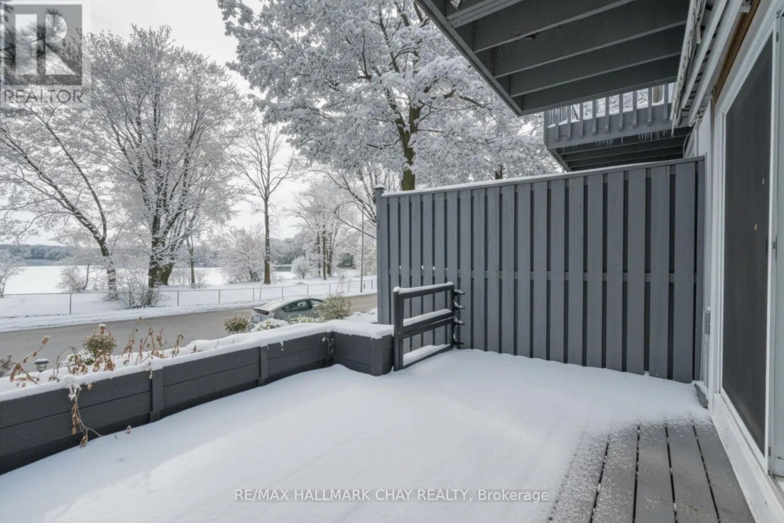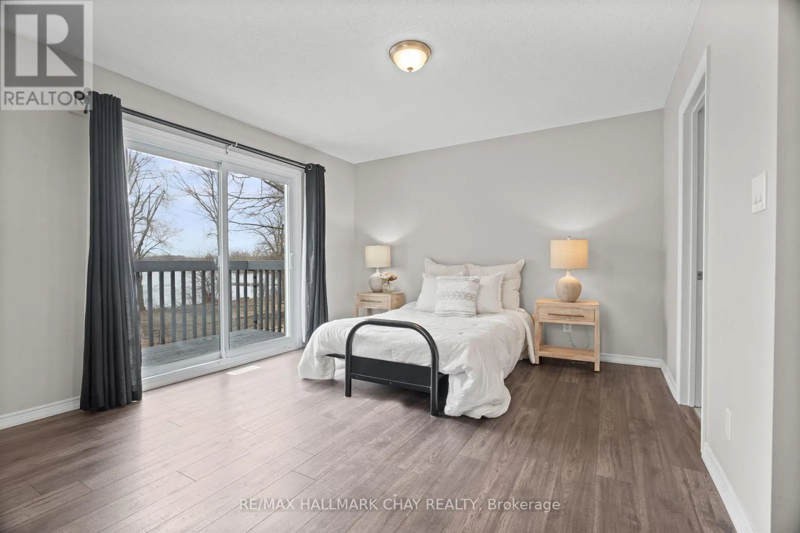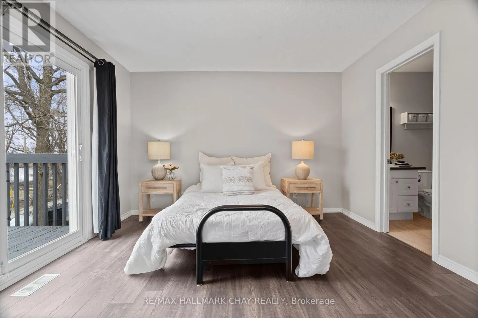 West Street S & Olive Crescent Welcome to this beautifully upgraded end-unit townhouse condo with views of Lake Simcoe-a perfect fit for anyone seeking a peaceful, low-maintenance lifestyle. With stunning western views of Lake Simcoe, over $100,000 in thoughtful renovations, and a low-maintenance lifestyle, this move-in-ready home is as serene as it is sophisticated-offering front-row seats to breathtaking sunsets every evening. Step inside to a spacious foyer with custom closet organizers and a well-designed layout throughout. The chef-inspired kitchen, fully renovated in 2017, features granite countertops, ceramic flooring, stainless steel appliances, and a functional breakfast bar with added storage.The open-concept living and dining area includes newer vinyl flooring, a cozy wood-burning fireplace, and sliding doors to your private deck. Enjoy quiet mornings or unwind under the electric awning while taking in sunset views, surrounded by raised flower beds and a secure gated enclosure.Residents enjoy access to a private dock-perfect for launching a paddleboard or kayak and embracing the waterfront lifestyle. Upstairs, both bedrooms offer new laminate flooring, and both bathrooms have been renovated. The primary suite features an electric fireplace, in-suite laundry, a renovated 2pc ensuite, large closet space, and a private balcony with lake views. The fully finished lower level adds even more versatility, with a spacious rec room finished in hardwood, a third full 3-piece bathroom, and extensive built-in cabinetry for smart storage. The attached garage includes a generous mezzanine loft, ideal for seasonal storage or hobbies.Set within an exclusive 9-unit waterfront complex, this home is directly across from Kitchener Park-25 acres of green space, tennis courts, a dog park, and scenic walking trails. You're also just minutes from marinas, shopping, downtown Orillia, and Casino Rama. (id:27476)