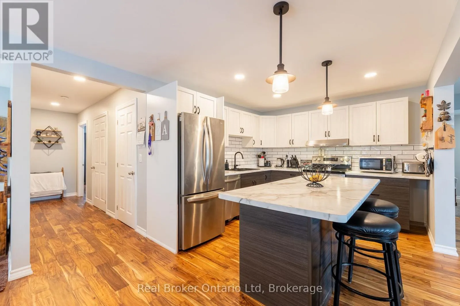 Laclie - Hughes - Sundial Dr. Welcome to North Ward living at its finest-where space, style, and lifestyle come together effortlessly. Set on an incredible 66' x 327' lot, this beautifully designed ranch bungalow offers over 1,500 sq ft of bright, open-concept living that instantly feels like home. From the moment you walk in, you're greeted by a seamless flow between the kitchen, complete with a central island, and the inviting living room that opens onto the front deck-perfect for morning coffees or evening unwinds.The primary suite is your private retreat, featuring a spa-inspired 4-piece ensuite and direct walkout to the backyard-your own peaceful escape just steps away. The main level is completed with three additional spacious bedrooms and a stylish 3-piece bath, offering room for family, guests, or a home office setup.Downstairs, the expansive basement delivers incredible versatility with a large rec room, bonus den, 2-piece bathroom, and plenty of storage-ideal for growing families, entertaining, or creating your dream space.Step outside and you'll truly appreciate the depth of this property. The oversized lot offers endless potential, ample parking, and a newer 24' x 24' detached garage-partially insulated and equipped with 100 amp service-perfect for hobbyists, car enthusiasts, or extra workspace.This is more than just a home-it's a lifestyle opportunity in one of Orillia's most sought-after neighbourhoods.Don't miss your chance to make it yours. (id:27476)