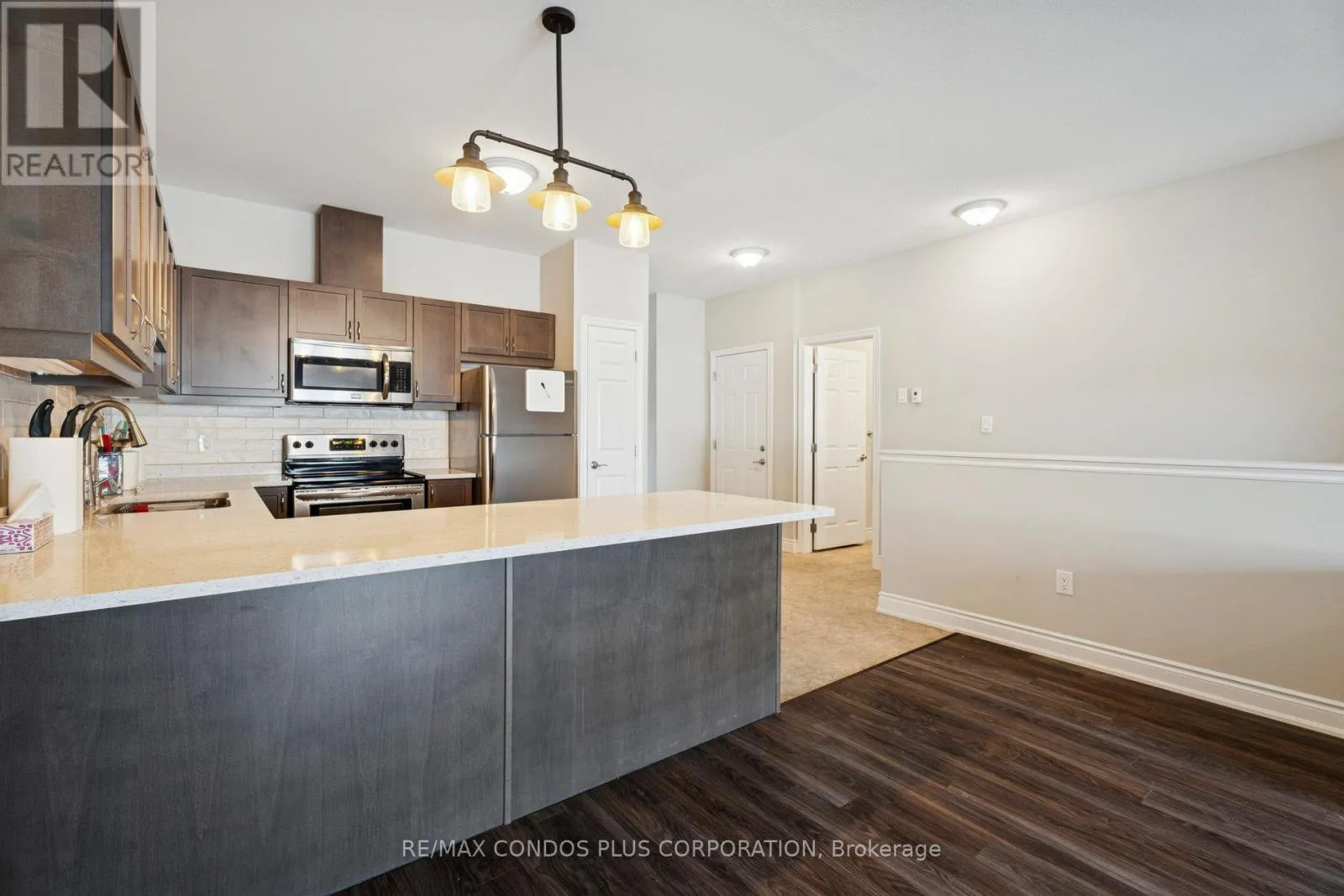 Cross Streets: Laclie St/Danny Dr. ** Directions: Laclie St/Danny Dr. Very charming 1253 square feet 2 bedroom & 2 full bathrooms bungalow townhome in North Lake Village built in 2016. Low common element fee invites 1st time buyers, downsizers and retirees to enjoy the maintenance free and one level living lifestyle they have been waiting for. Turn key home with many upgrades including quartz countertops, newer front door, central vacuum system and accent tiles in bathrooms and kitchen. Spacious open concept main floor with high ceilings, full unfinished basement with rough in for a bathroom and room for additional living space when finished. Beautiful and fully fenced backyard with a composite deck and gate access from the neighboring property with easement in place for access. Lovely easy care front gardens to maximize curb appeal of your new home. Located in a quiet and peaceful friendly village adjacent to walking and biking trails, shopping, transit, parks, golf course and the waterfront. Don't miss the opportunity to view this amazing property. (id:27476)