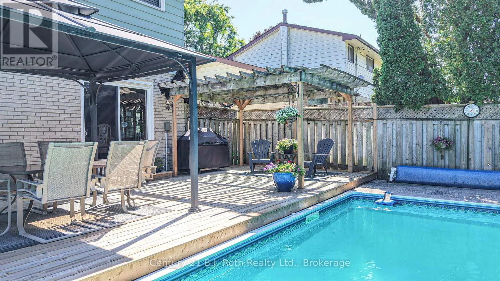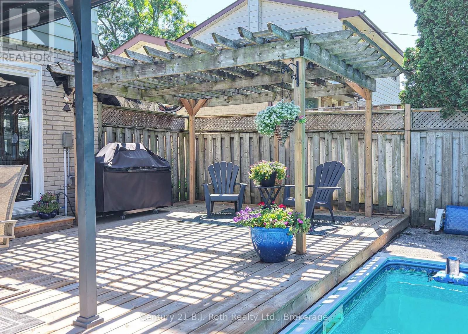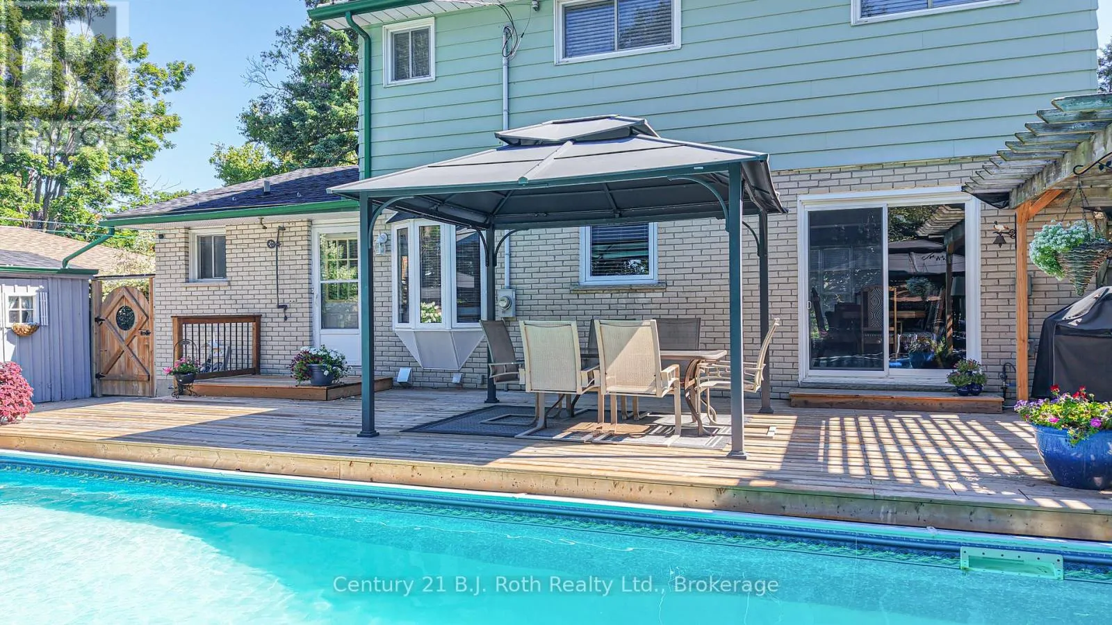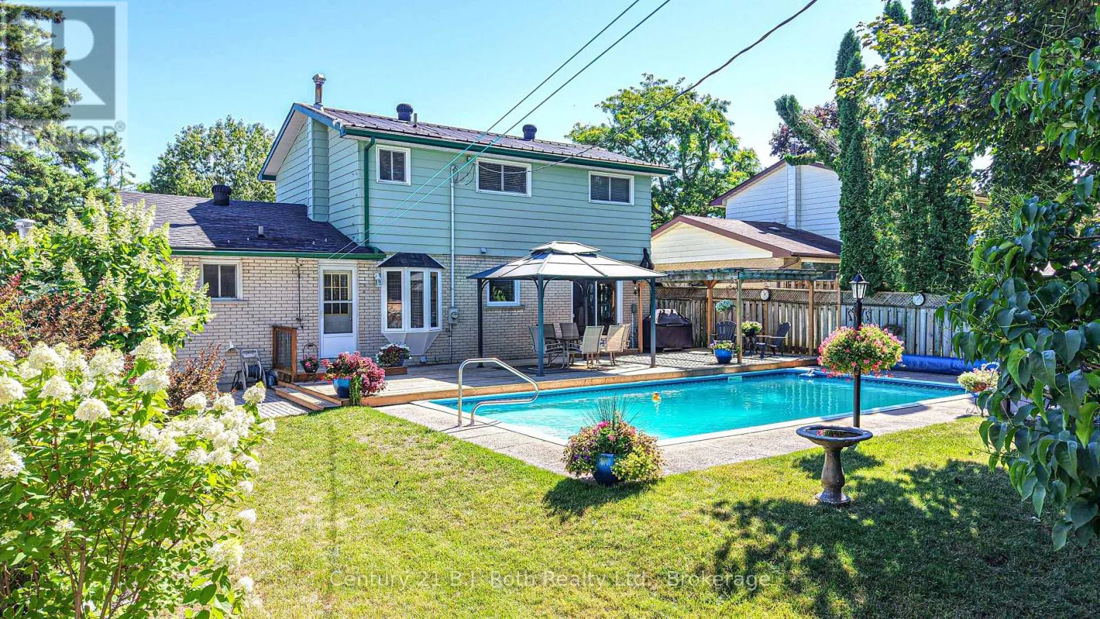 Cross Streets: PARK/COLLEGIATE. ** Directions: COLLEGIATE DRIVE TO PARK ST TO 215. Now is your chance to raise your family in one of the most sought-after North Ward neighbourhoods! This well-maintained 4-bedroom, 1.5-bath, 2-storey home offers comfort, convenience, and fantastic outdoor living-perfect for today's busy family.A welcoming covered entry leads into the bright main floor featuring gleaming hardwood floors throughout. The spacious living room with bay window fills the space with natural light, while the adjacent dining area overlooks the picturesque back yard. The efficient galley-style kitchen boasts classic oak cabinetry, a cozy breakfast nook, and direct access to your fully fenced backyard oasis. A convenient 2-piece powder room is located on the main level. The original garage has been converted into a versatile space currently used as a main-floor laundry, but it would easily function as a playroom, home office, recreation room-or be converted back to a garage if desired. Upstairs, you'll find a beautifully updated 4-piece bathroom and four bedrooms, including one with a charming built-in desk/craft area and a spacious walk-in closet. The mostly finished basement offers a cozy family retreat complete with a gas fireplace and a bar area, ideal for relaxing or entertaining. Step outside to your private, treed, fully fenced backyard, featuring an expansive updated deck overlooking the inground pool, complete with a newer gas heater. Relax in the sunshine under the Pergola or choose to sit under one of the 2 Gazebos. It's the perfect setting for summer gatherings and family fun. Additional updates include windows & shingles. The home is equipped with natural gas heating and central air conditioning for year-round comfort. Located close to parks, schools, shopping, and just a short walk to downtown, this property offers the ideal blend of lifestyle and location. (id:27476)