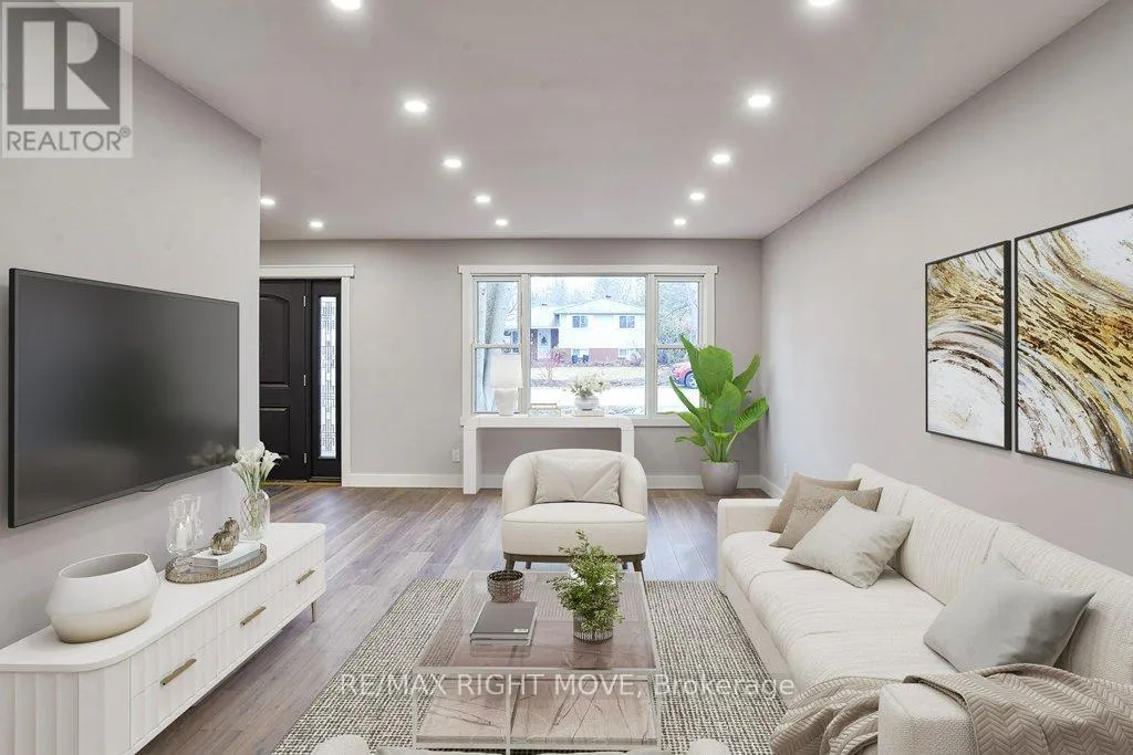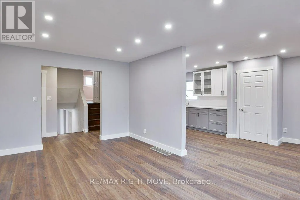 Cross Streets: Galley and Fittons. ** Directions: Take Fittons Road east of Laclie Street and follow towards the lake, left on Sundial to the property on RHS, Sign on. This updated 3-level back-split home is located in an appealing northward neighbourhood and a short distance from Lake Couchiching. The lot measures 50 ft. x 249 ft. and backs onto the Lightfoot Trail, a tree-lined walking/biking trail through the heart of Orillia to Couchiching Beach Park, downtown, the Leacock Museum and Tudhope Park. The home is updated with laminate and vinyl floors, LED pot lights, new trim work and a fresh decor. The spacious front foyer with closet leads to the bright eat-in kitchen that features new shaker-style cabinets, quartz countertops, a black stainless steel double sink and laminate flooring. From the kitchen there is access to the main floor laundry/mud room with a stacking washer/dryer hookup. There is also a door to the new side yard deck and flagstone patio - a convenient spot for an outdoor BBQ. Three bedrooms and a new 4-pc. bathroom are located on the upper level. The finished basement has in-law capabilities and includes two walkouts to a new 12ft. x 26ft. deck. The basement includes a large family room; a 4-pc. bathroom; stacking washer/dryer laundry facilities; a small bar/kitchenette with double sink, quartz countertops and a small fridge. New shingles in 2025; 100 amp hydro service. Vacant and easy to show. Just move right in! (id:27476)
