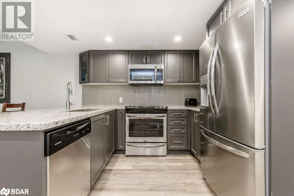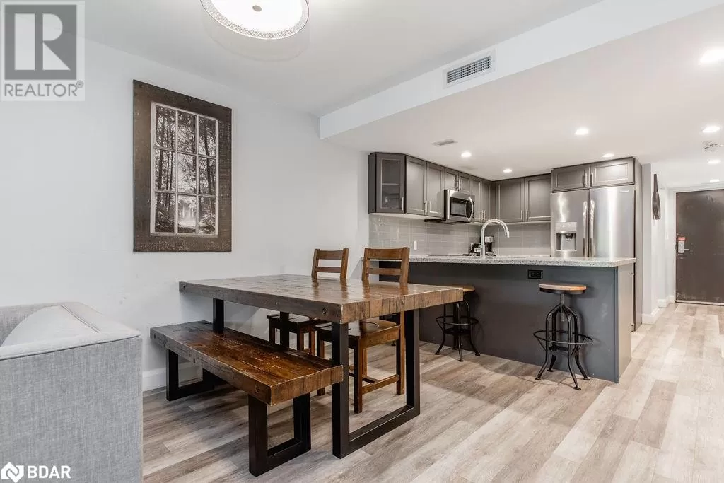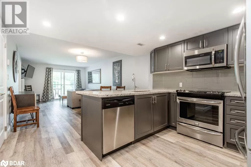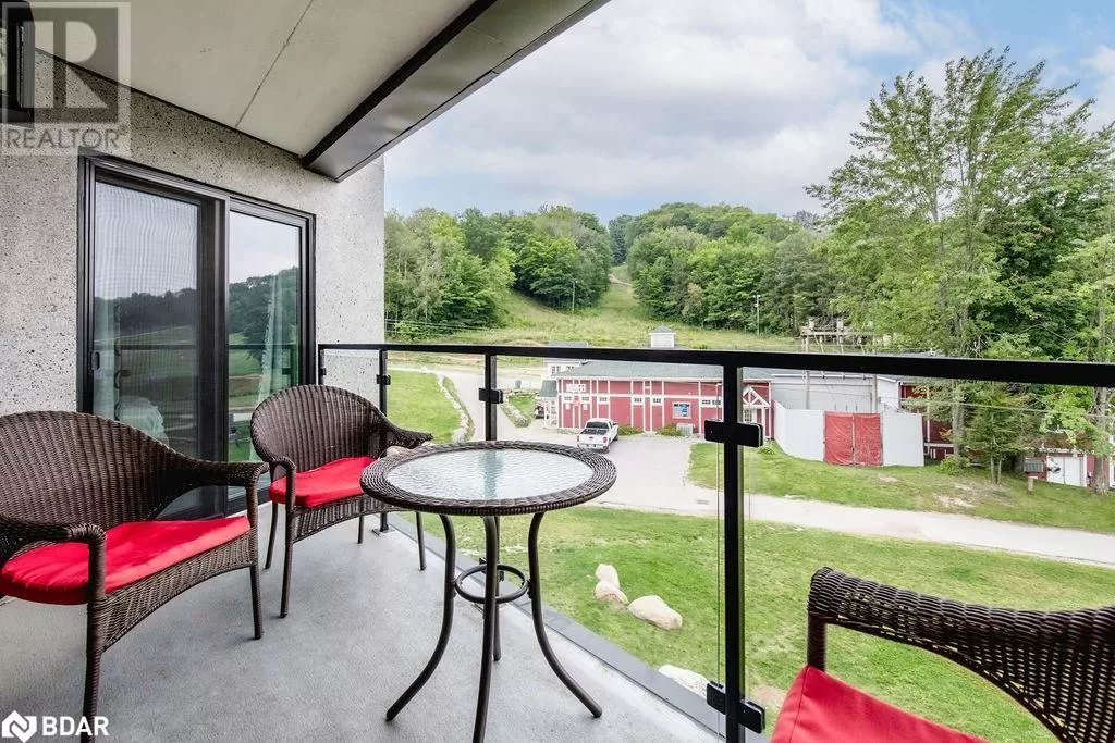 Horseshoe Valley Rd to Horseshoe Resort Welcome to Unit 307 at Slopeside Condos, nestled in the heart of Horseshoe Valley Resort! This haven is your gateway to all-season delight, from thrilling skiing, snowboarding, and snowshoeing in winter, to invigorating golfing, mountain biking, and hiking in the warmer months. The open-concept living space includes a modern kitchen, adorned with stainless steel appliances, a built-in microwave, and quartz countertops, stands ready to fulfill your culinary desires. After an adventure-packed day, cozy up by the fireplace, letting its warmth caress your senses. Wake up to the expansive primary bedroom, which features a walk-out to the balcony. Designed with inclusivity in mind, this unit is wheelchair accessible, showcasing extra-wide doors in the primary suite and an intelligently designed ensuite. Another generously sized bedroom, a spacious den, and a second modern bathroom ensure ample living space. Convenience meets functionality with an in-unit washer/dryer combo. Indulge in the condominium's lavish amenities, encompassing access to the Horseshoe gym, sauna, and both indoor and outdoor pools, Horseshoe Lake and Beach. Ample parking adds to the ease of living. Just minutes away lies the town of Craighurst, offering essentials like a grocery store, gas station, pharmacy, and restaurants. Barrie and Orillia are a short 20-minute drive, while the GTA is accessible within an hour's distance. For an extra touch of indulgence, the famed VETTA spa is a mere 4 minutes away, promising relaxation beyond compare. This is your chance to relish the distinctive luxuries of Horseshoe Resort, where each day presents a new adventure and each evening, a serene embrace of comfort. (id:27476)