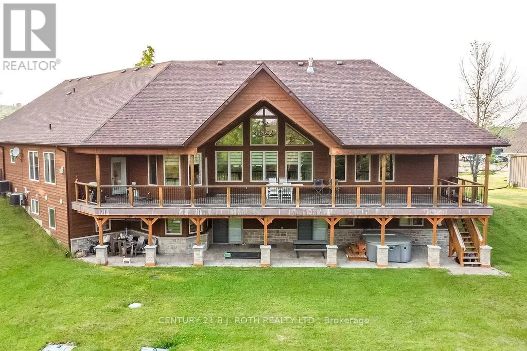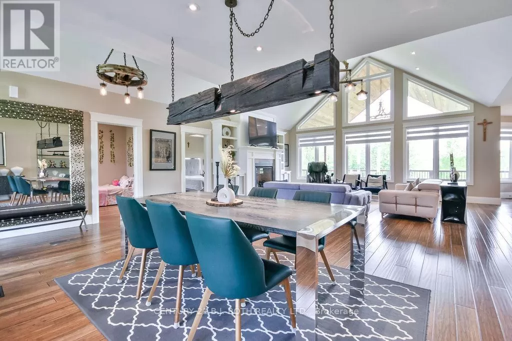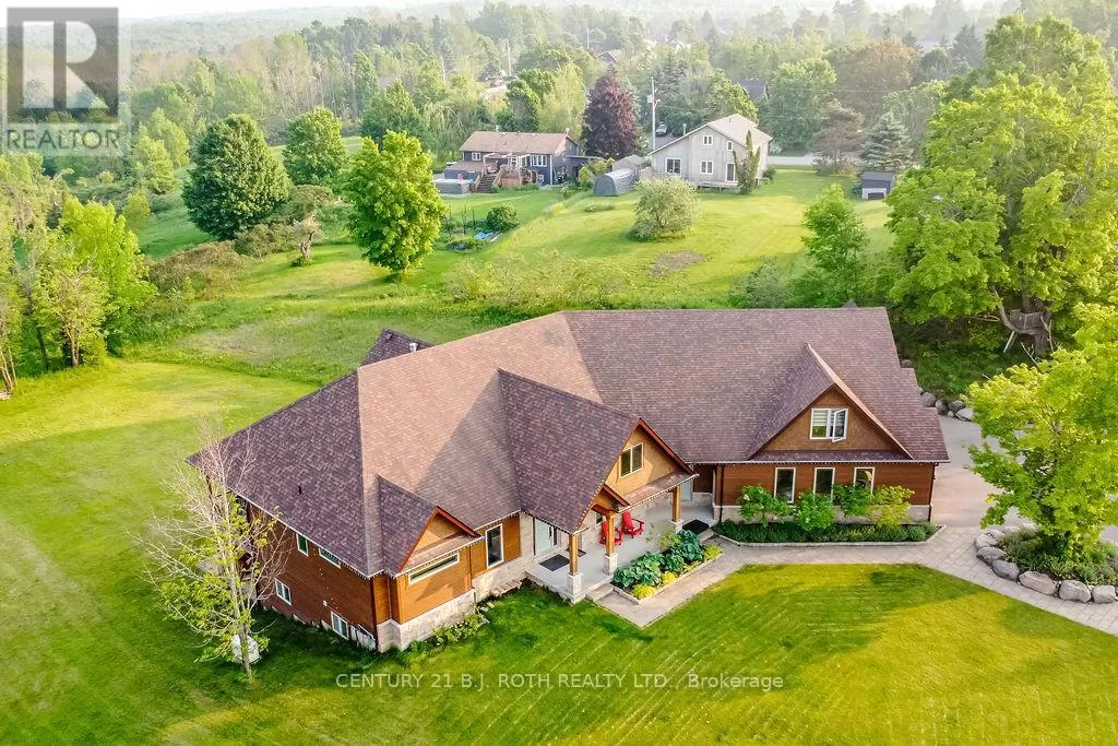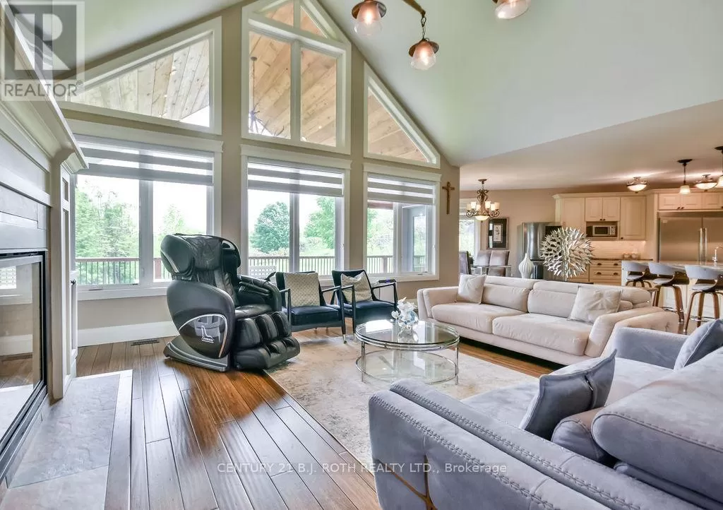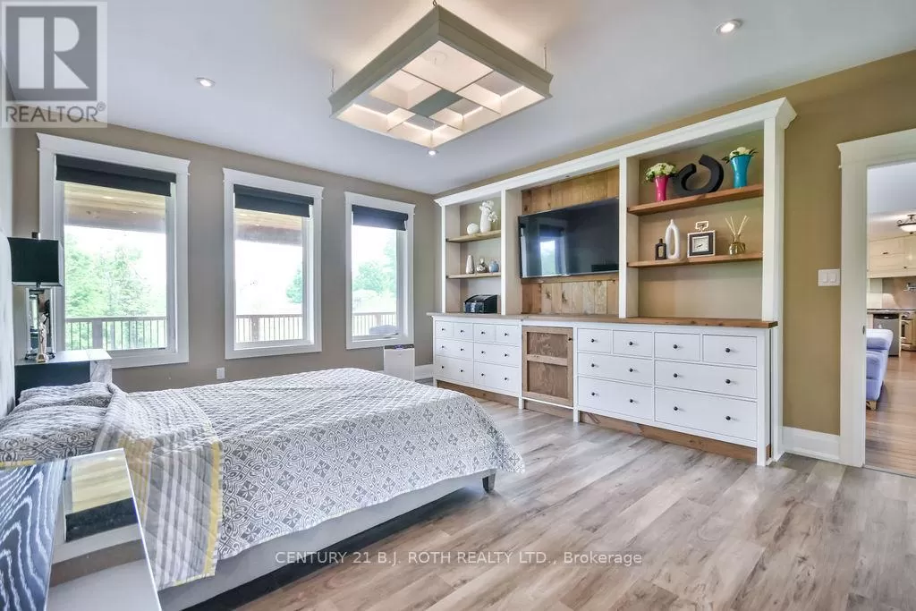 Cross Streets: Moonstone Rd E/Reids Ridge. ** Directions: Hwy 11 N to Line 9 N right on Bass Lake Sideroad, Left on Moonstone RD E, Left on Reids Rdg. This extraordinary estate, set on 8.6 acres, offers a thoughtfully designed layout that blends luxury, privacy, and functionality. Originally built as the builder's own home, it features a multi-generational living space with distinct yet connected areas, ideal for families who want both closeness and independence. The open-concept design flows seamlessly across the main floor, loft, and walk-out basement, creating an inviting atmosphere for both everyday living and grand entertaining. The expansive kitchen, connected effortlessly to the living and dining areas, is perfect for hosting large gatherings. The primary suite is a masterpiece, boasting built-in cabinets, a spacious walk-in closet, and a spa-inspired bathroom with dual vanities and a unique shower with two separate entrances. With five bedrooms plus a fitness room that can serve as a sixth bedroom home offers abundant space. Movie nights will never be the same thanks to your private theatre, making trips to a movie theatre a thing of the past! Step outside to the stunning covered deck, where you'll enjoy breathtaking views offering unmatched serenity. With over 6,500 square feet of finished interior space, this home is truly a rare find best appreciated in person to fully experience its exceptional layout and design. Measurements as per Geo Warehouse 350.94 ft x 849.28 ft x 305.11 ft x 9.82 ft x 9.82 ft x 9.82 ft x 9.82 ft x 9.82 ft x 9.82 ft x 9.82 ft x 145.59 ft x 695.97 ft x 929.12 ft (id:27476)