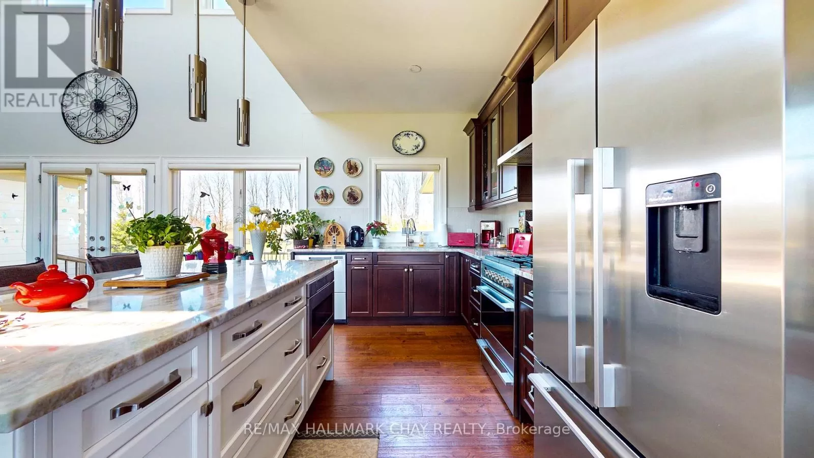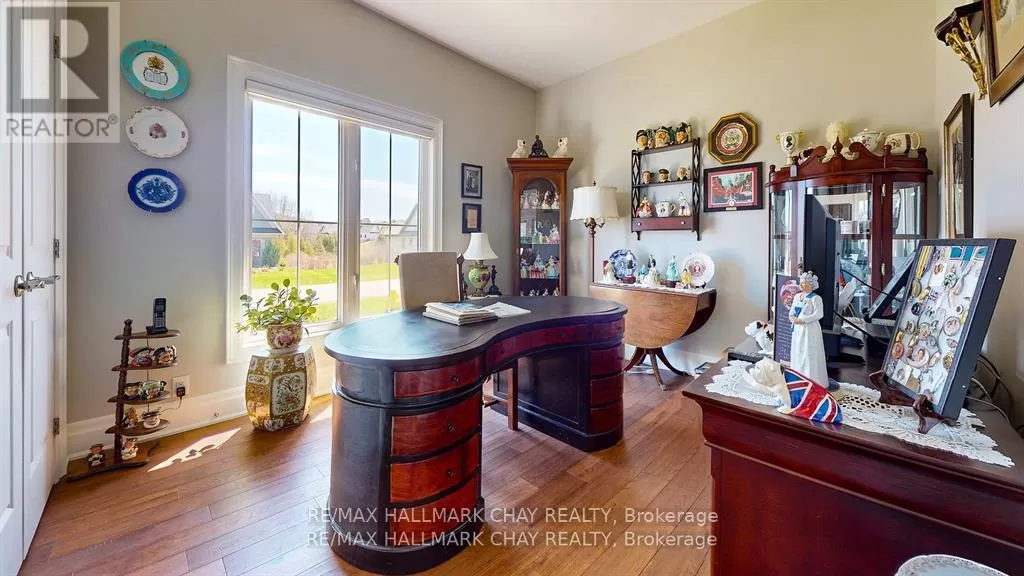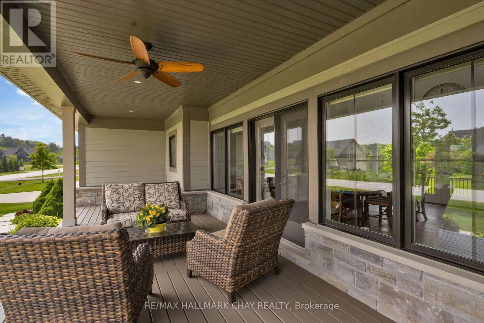 Cross Streets: Line 9 North and Horseshoe Valley Road. ** Directions: Horseshoe Valley Rd East, right on Line 9 N, right on Georgian Grande Dr. to #14. No sign on property. Welcome to 14 Georgian Grande Dr in Oro-Medontes prestigious Braestone Estates. This charming bungaloft is nestled on a highly desirable + acre lot backing on the Braestone Farm. Enjoy easy access to the fields of berries, fruit trees, vegetables, and skating pond. This Morgan model boasts a modern open-concept design with 3 bedrms, 3 bathrms, and over 2,400 sq ft of fin living space. Dramatic soaring ceilings in the main living areas are accentuated with walls of windows both front and back. The kitchen features stone countertops, high end Fisher-Paykel appliances, and an additional servery to expand your storage space. The dining area, unique by design, has French doors leading to the front covered porch and also out to the back patio. The living room is made cozy by a Napoleon gas f/p. The primary suite is situated on the back of the home with tranquil views of the farm, has a W/I closet and 4 pc ens with glass shower. The second bedrm on the main floor is being used as an office. Upstairs, a 900 sq ft loft area is set out with a cozy sitting room, a bedroom that can accommodate 2 queen size beds and has an ensuite bath and W/I closet. Great for guests or family. The unfinished basement with rough-in bath has endless possibilities for extended living space. EXTRAS: Awesome sense of community full of great people, Bell Fibe high speed, Double car garage, 11 KW generator, monitored alarm system, gas BBQ hookup, and lawn sprinkler system. Located between Barrie and Orillia, enjoy peaceful country estate living with a wide variety of outdoor activities at your doorstep; Golf at the Braestone Club, Ski at Horseshoe and Mount St Louis, Bike at Hardwood Hills, Hike in the Simcoe and Copeland forests, Easy access to snowmobile trails, Boat in the surrounding lakes, Get pampered at the new Vetta Spa. Feel comfortable being just 10-15 min drive from a wide variety of amenities including restaurants, rec centres, theatres, hospitals, shopping, and Costco. (id:27476)