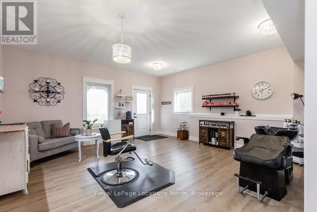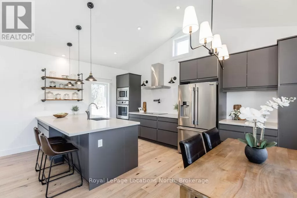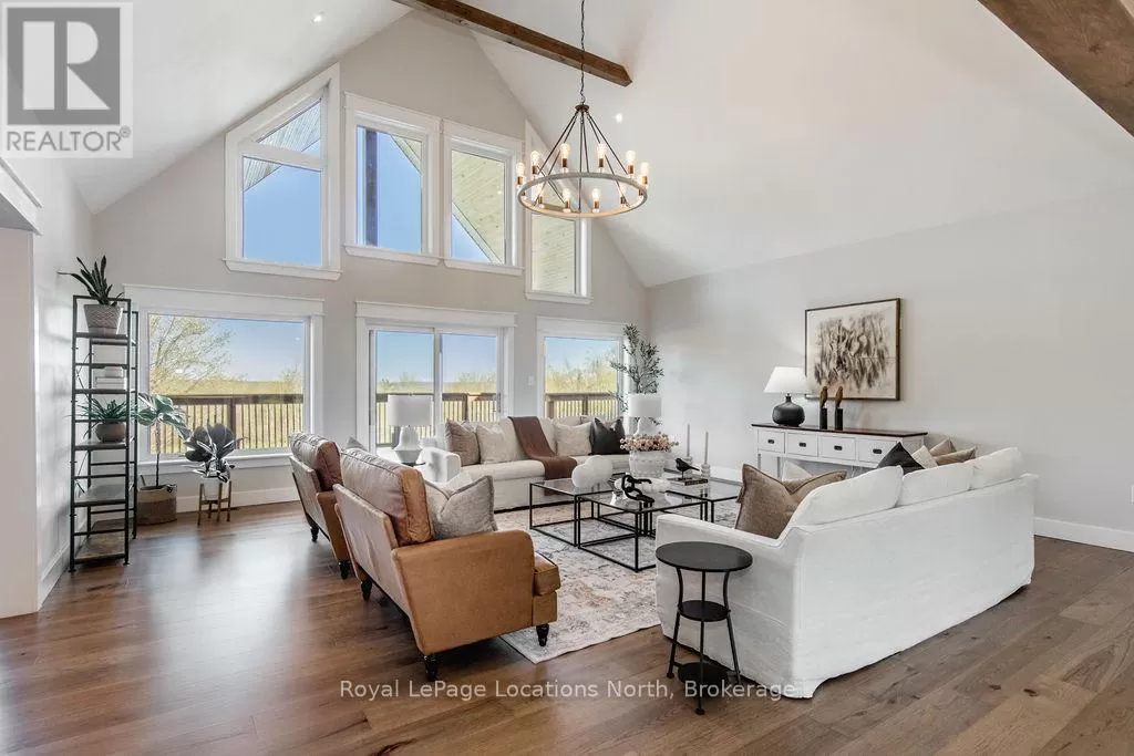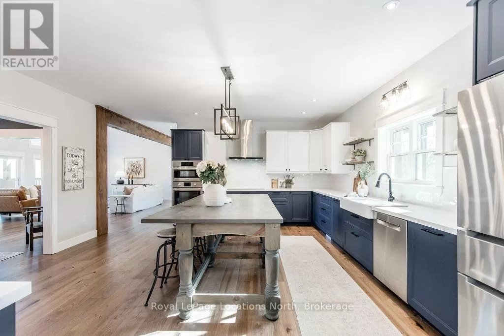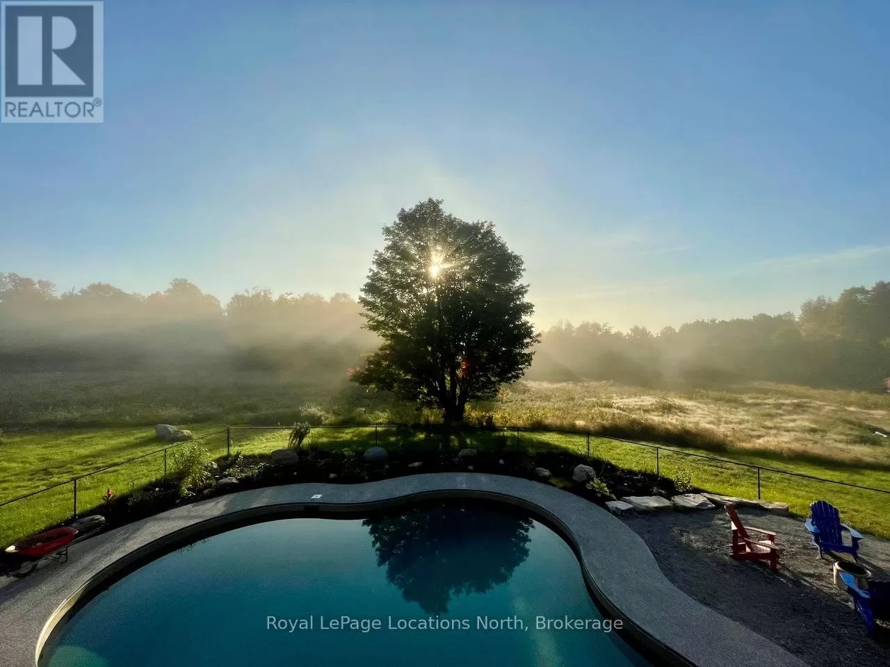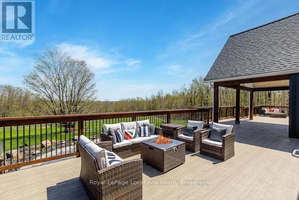 Moonstone Rd E/County Rd 19/Line 8 N FAMILY COMPOUND - Built in 2022, this expansive 9,000 sq ft home on 100 acres is perfect for multi-gen living or rental income. The property features a custom main house, a legal ranch-style apartment w/private laundry + a loft above a heated 4-car garage. As you enter the large foyer, you're greeted with panoramic views of the property through floor-to-ceiling windows. The main house features 3+2 bedrooms, 3 full and 2 half baths, 9' ceilings, and engineered hardwood on the main floor. A grand living room impresses with 19' vaulted ceilings and access to a covered deck overlooking the pool. The spacious kitchen and formal dining room are ideal for gatherings, boasting quartz countertops, a double farmhouse sink, premium stainless steel appliances and a large custom island. The primary suite offers a private retreat with deck access, dual walk-in closets, and a luxurious 5-piece ensuite featuring a soaker tub, walk-in shower, dual-sink quartz vanity, and private water closet. The expansive walk-out basement includes a recreation room, two additional bedrooms, and a salon with a powder room, perfect for a home business or studio complemented by durable vinyl plank flooring. The separate legal accessory apartment provides a modern living space with vaulted ceilings, open-concept design, quartz kitchen countertops, a private covered deck, and dedicated laundry, ideal for family or as an income opportunity. The loft features a bedroom, 4-piece bath, kitchenette, and private deck, suitable for guests or extended family. The garage boasts 4 bays with 10 and 14 ceilings, perfect for car enthusiasts or workshop space. Outside, the 100 acre property supports many activities, hiking, hobby farming, or a private nature retreat. Enjoy a private outdoor oasis w/ a heated 20' x 40' saltwater pool, multiple decks, and lush green space. For more details, please contact us directly. (id:27476)