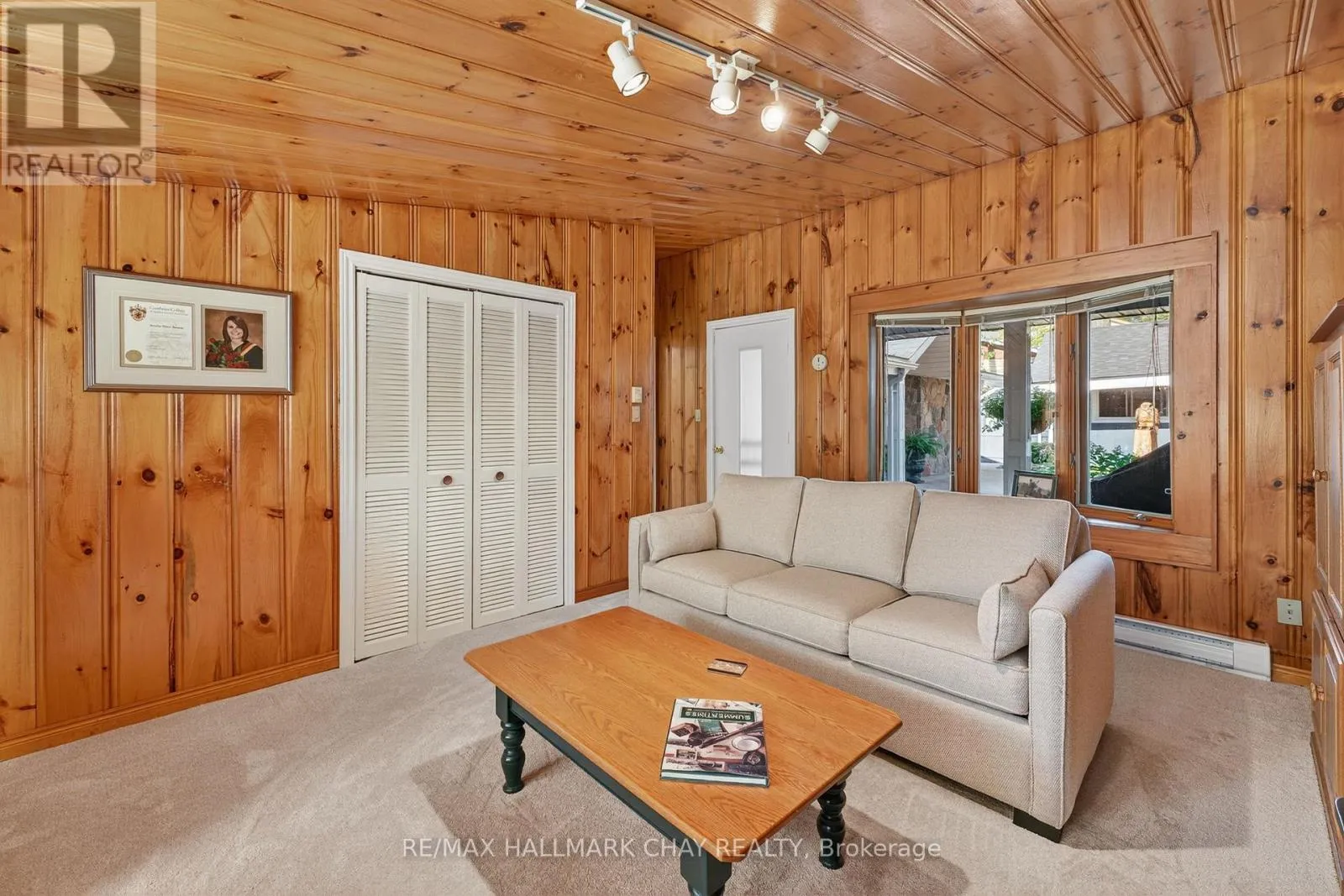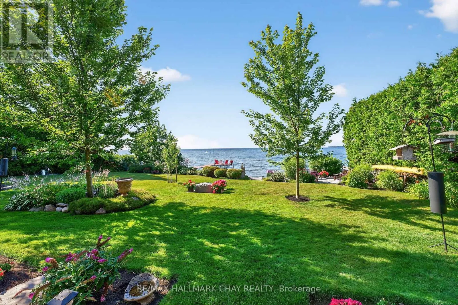 Cross Streets: 7th Line/Lakeshore. ** Directions: hwy 11 to Line 7 to left on Lakeshore. South-facing, 100 ft private, level lot on Lake Simcoe with a stunning park-like setting. The beautifully enhanced waterfront features granite stonework, including elegant stairs and a reinforced shoreline. Enjoy peaceful lake views from the waterside stone patioperfect for relaxing or entertaining. The property also includes front and rear patios, surrounded by lush, professionally landscaped gardens. This charming 3+1-bedroom bungalow including a spacious 17' x 10' guest Bunkie, complete with a 3-piece bathideal for hosting friends or extended family. The open-concept interior includes a well-appointed kitchen with breakfast bar, built-in oven, microwave, and stovetop, all overlooking the large living room with a stone fireplace and breathtaking water views. Generously sized bedrooms, a dedicated office space, and a laundry room with excellent storage make this home as practical as it is beautiful. Conveniently located midway between Barrie and Orillia for easy access to shopping and amenities, and just minutes from Simcoe Loop Trail (walking, biking, running etc), skiing, and golf. (id:27476)